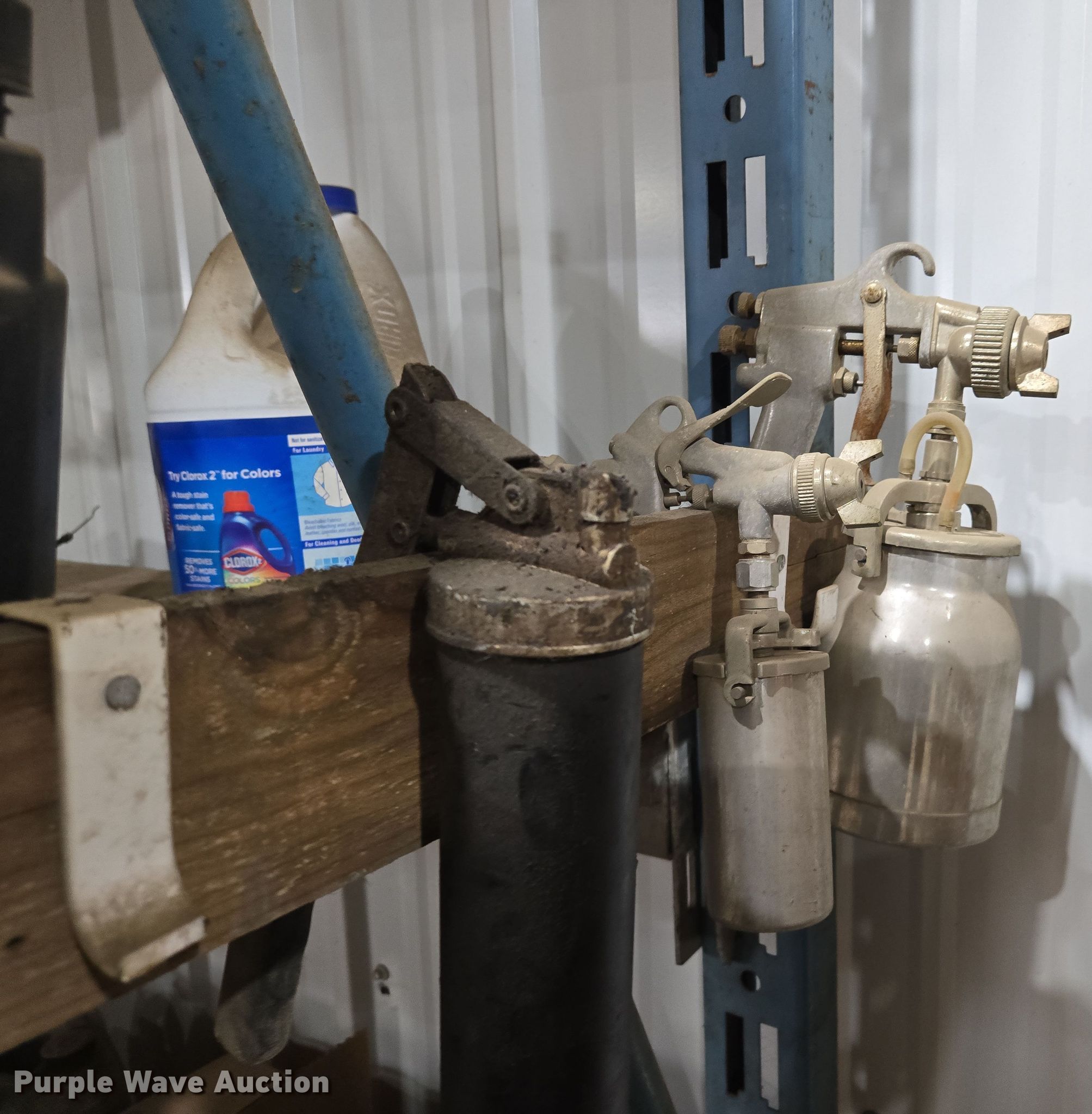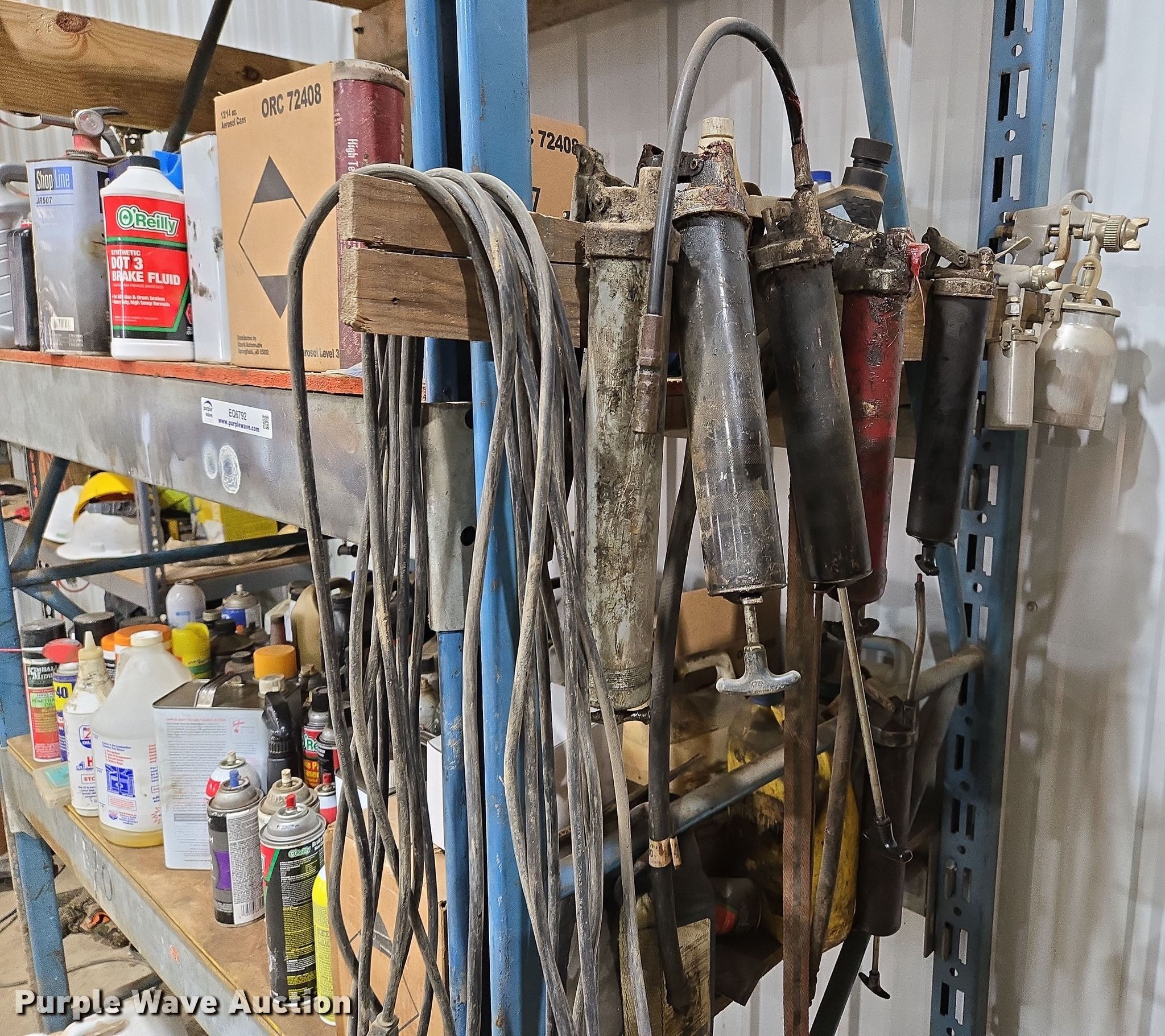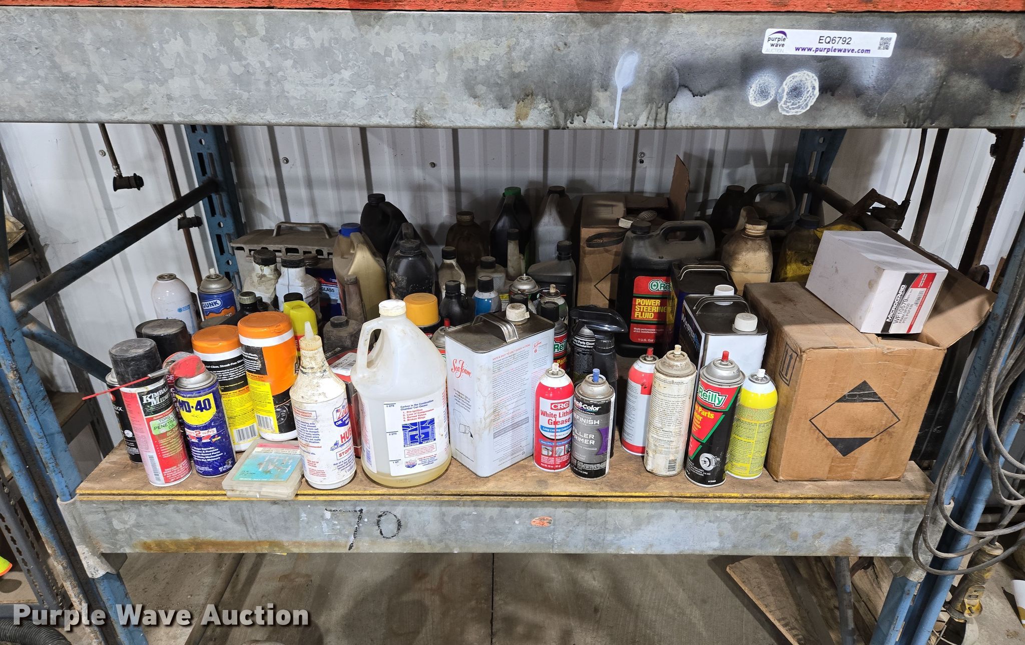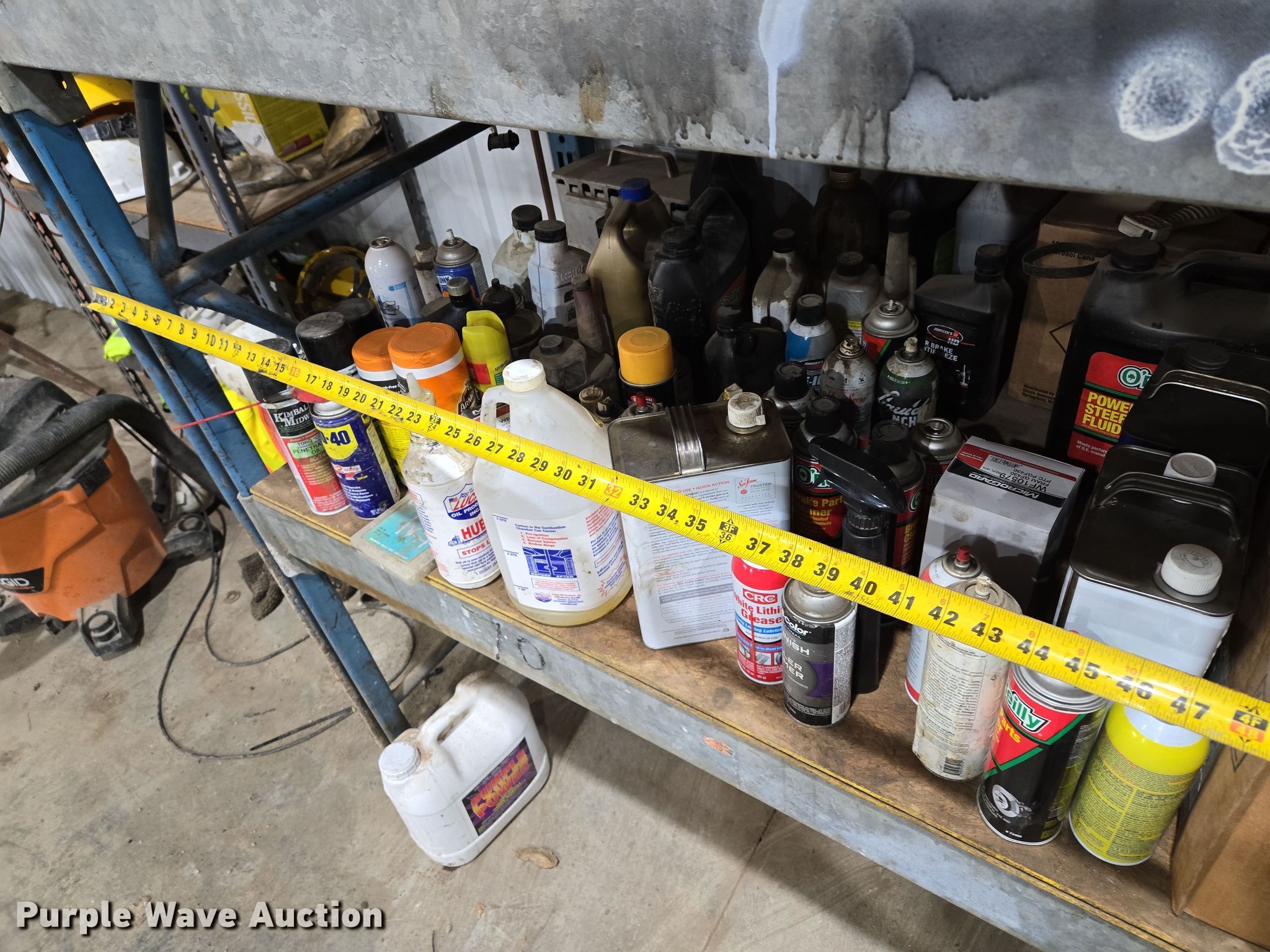 Storage rack. Width: 8', Cleaners included. J&N Utilities, Inc. Retirement Auction - Open Inspection March 21 and 26. 1455 Southeast County Road AA. Blue Springs, MO 64014