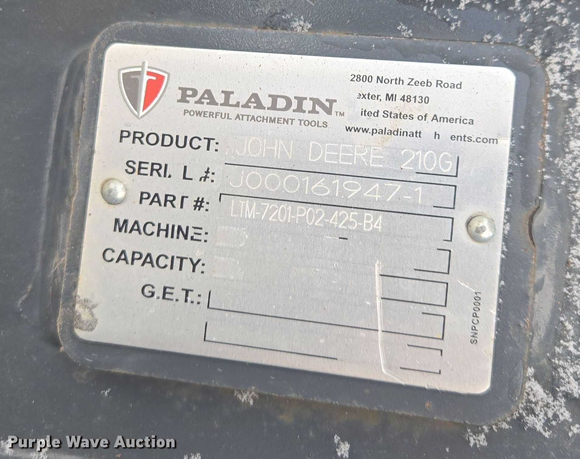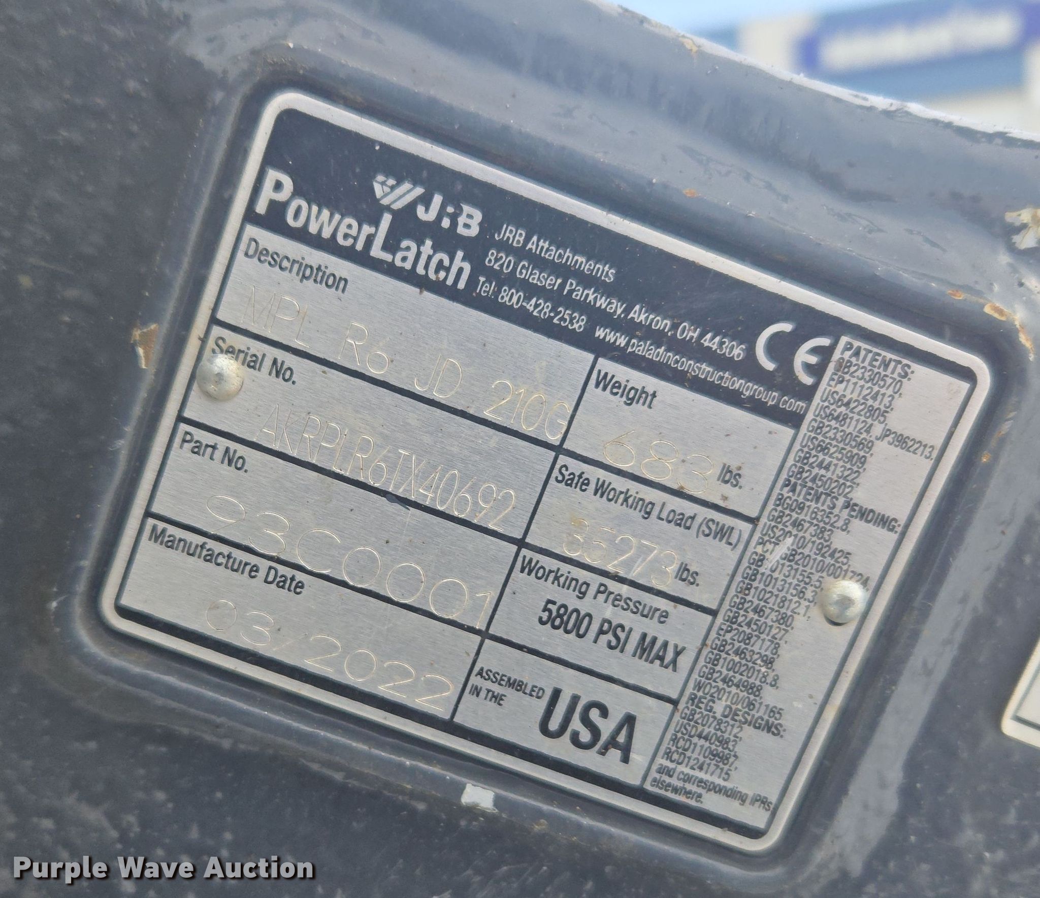 2022 John Deere 200G excavator. Hours: 734 on meter, Serial: 1FF200GXVNF085312. Engine John Deere 4045HT105, Displacement: 4.5L, Cylinders: 4, Fuel type: Diesel. Transmission Hydrostatic, Two speed travel. Operators station Enclosed cab, AC, Heat, Backup camera. Features Auxiliary hydraulics Standard, Counter weights, Boom Standard, Stick Stick length: 9' 4", Quick coupler: Hydraulic JRB MPL R6 JD 210G, Thumb: Hydraulic Paladin, Bucket Paladin, Width: 40", Teeth: 5. Tracks Width: 27", Steel, Grouser pads: Triple. PMC Power Motive Corporation. Denver, CO 80216