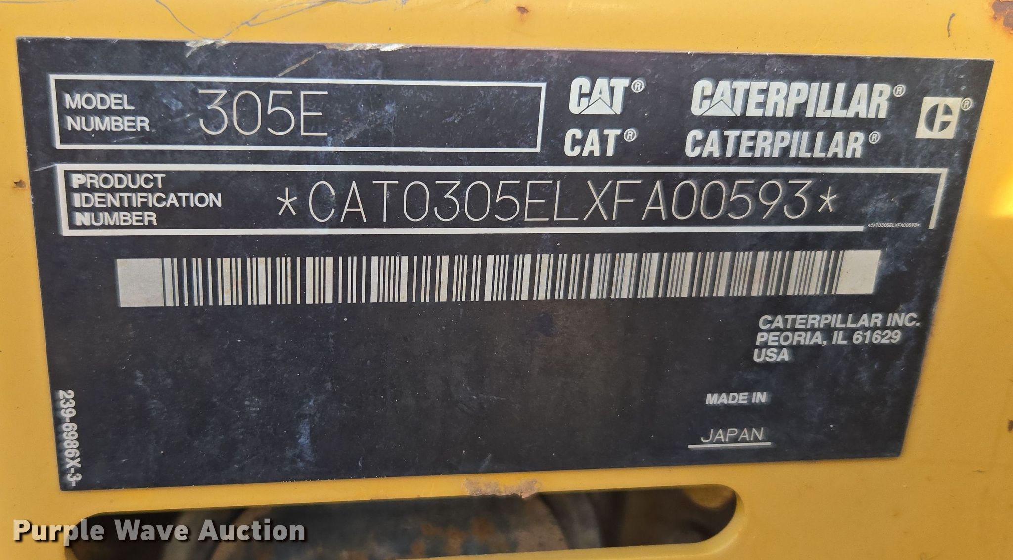 Purple Wave is selling a used Mini Excavator in South Dakota. This item is a 2012 Caterpillar 305E mini excavator with the following: Hours: 6,156 on meter, Serial: CAT0305ELXFA00593