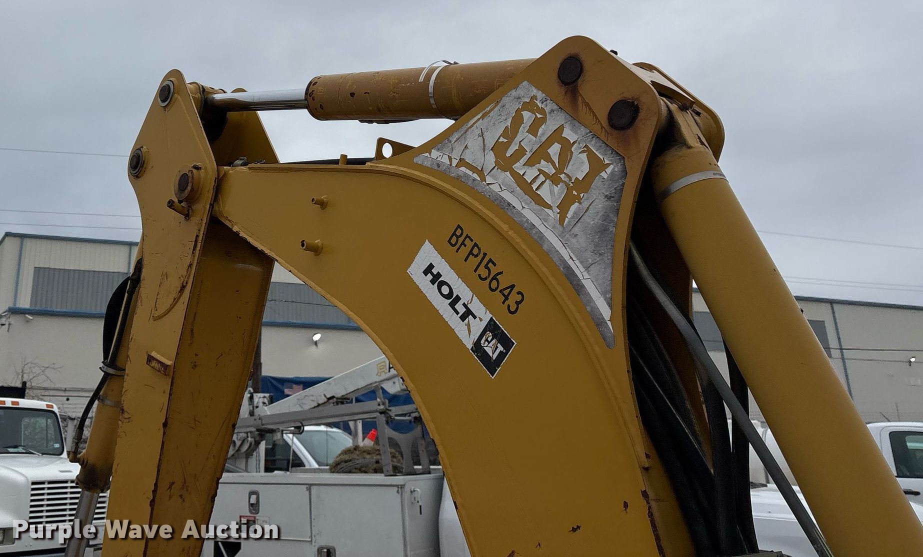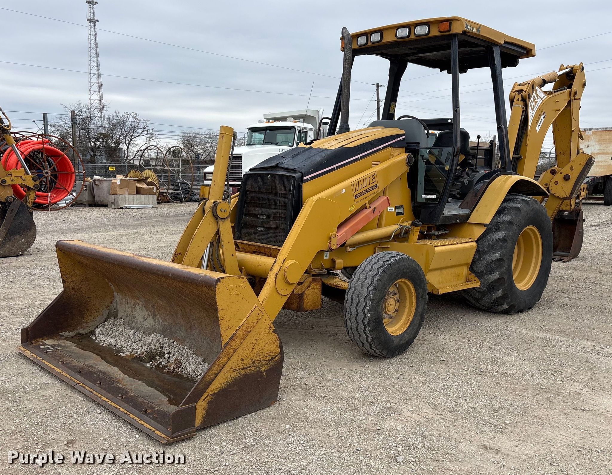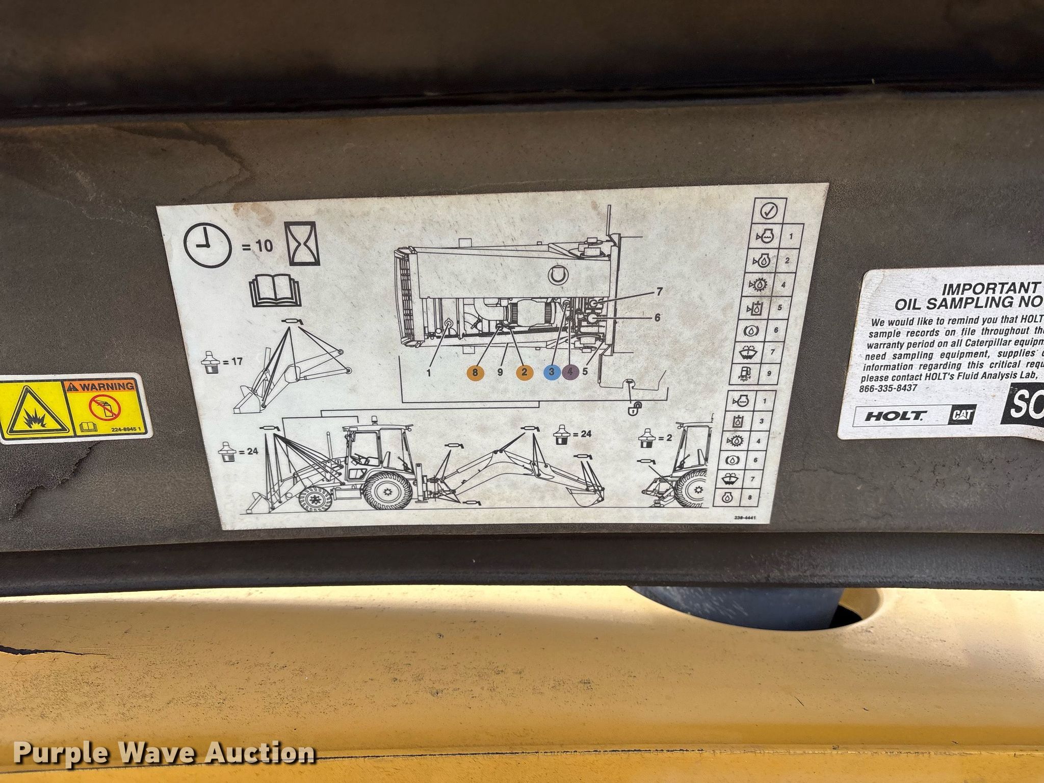2005 Caterpillar 416D backhoe. Hours: 4,075 on meter, Serial: CAT0416DCBFP15643. Engine Caterpillar 3054C, Displacement: 268 C.I.D., Cylinders: 4, Fuel type: Diesel, HP: 74, kW: 55. Transmission Shuttle shift, 4F - 4R. Chassis Differential lock. Operators station Backhoe controls: Wobble stick / two stick. Features Loader Bucket Caterpillar, Width: 88", Cutting edge: Bolt-on, Backhoe Bucket Caterpillar, Width: 18", Teeth: 4.. Tires Front: 11L-16SL, Rear: 19.5L-24. Silas White Construction. Garland, TX 75042