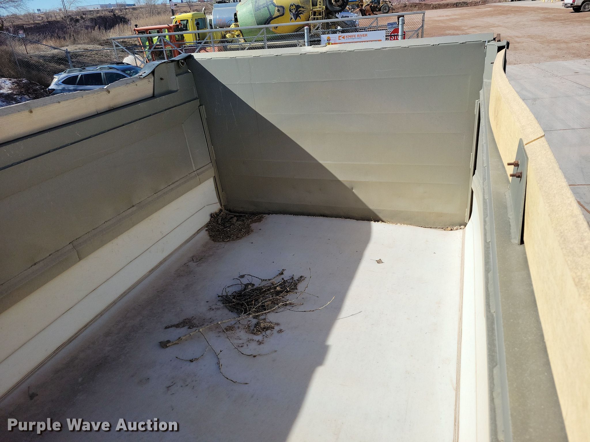 2000 Trail King end dump pup trailer. VIN: 1TKHS4232YB052072. Dimensions Overall: 41' 6" L x 96" W, Body: 14' L x 96" W, Side height: 48", Sideboard height: 6". Features Body type: Aluminum, Ram: Single, End gate: Air operated, Poly liner, Roll tarp. Chassis Suspension: Air, Brakes: Air, Axles: Triple. Tires Steel wheels, Size: 11R22.5. Notes Dump truck not included. South Dakota title. Title distribution may be delayed up to 14 days from verification of funds. Knife River - Sweetman Construction. Sioux Falls, SD 57107