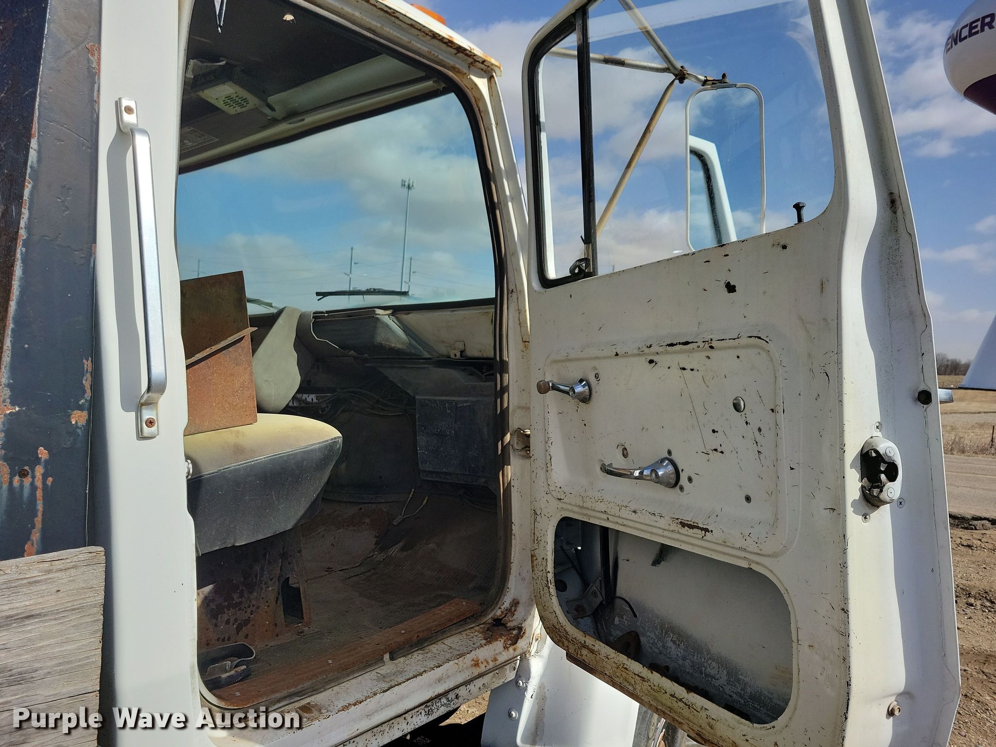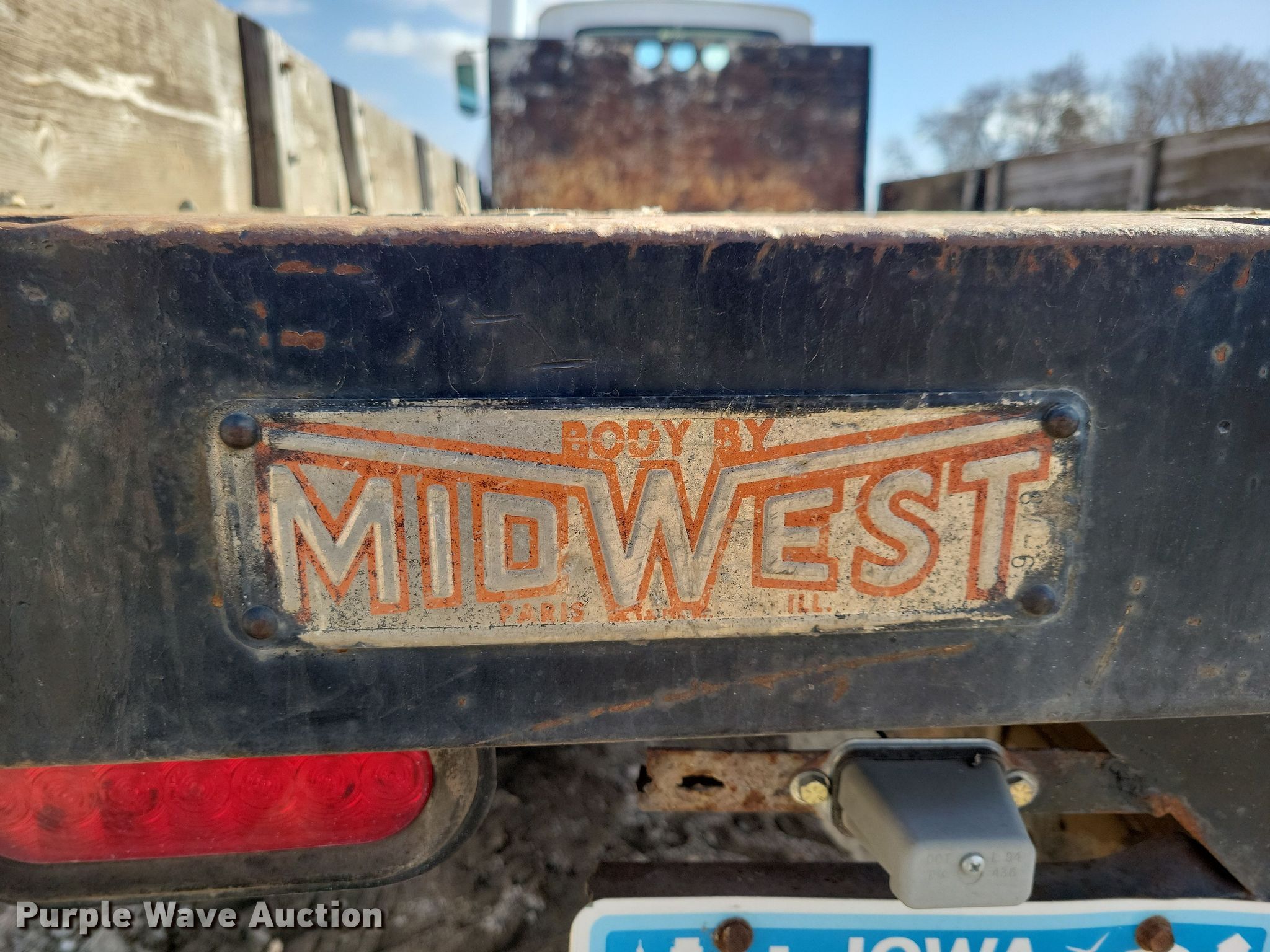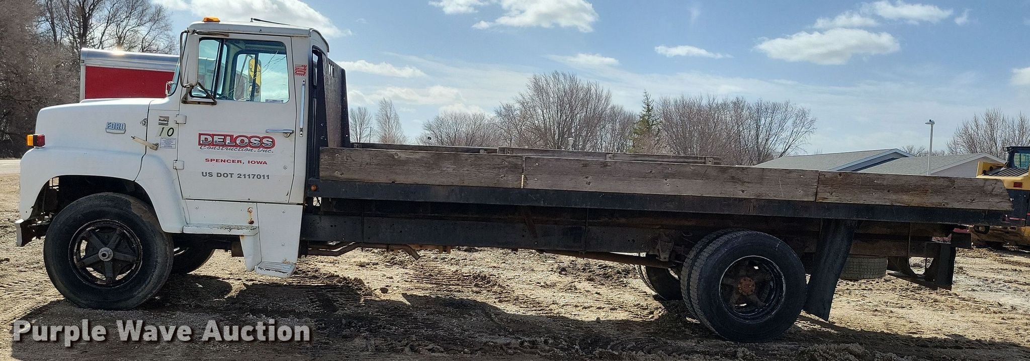 1978 Ford 700 flatbed truck. Miles: 46,968 on odometer, VIN: N71FVCG6108. Engine Displacement: 6.4L, Cylinders: 8, Fuel type: Gas. Transmission Manual, Speed: 5, plus 2. Chassis Axles: Single, Suspension: Spring, Brakes: Hydraulic. Interior Heat. Features Flatbed Midwest, 20' L x 96" W, Removable sides. Tires Size: 10R22.5. Notes Driver side window cracked. Iowa title. Title distribution may be delayed up to 14 days from verification of funds. DeLoss Construction. Spencer, IA 51301