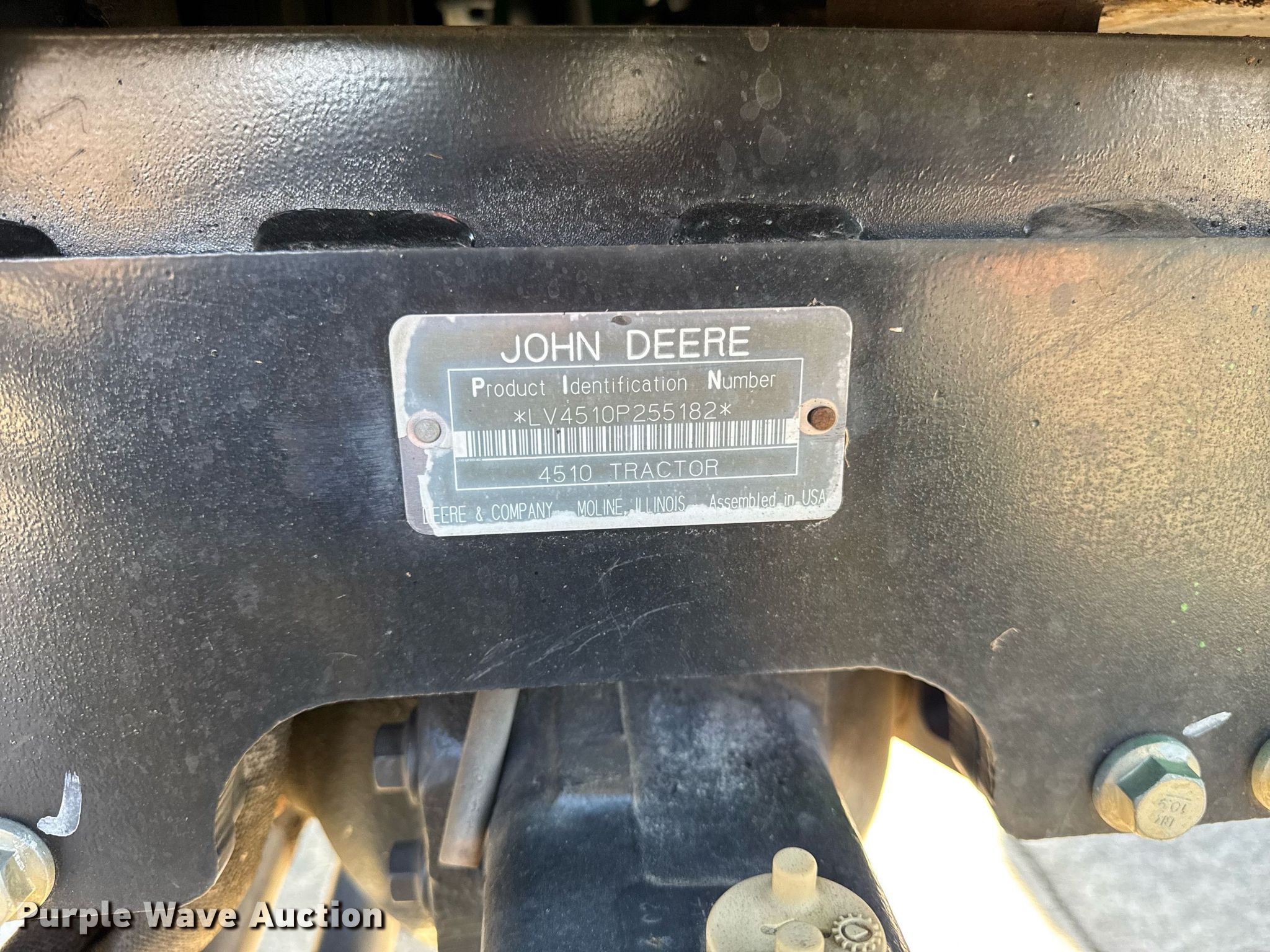 Purple Wave is selling a used Tractor in Missouri. This item is a 2003 John Deere 4510 tractor with the following: Hours: 1,274 on meter, Serial: LV4510P255182