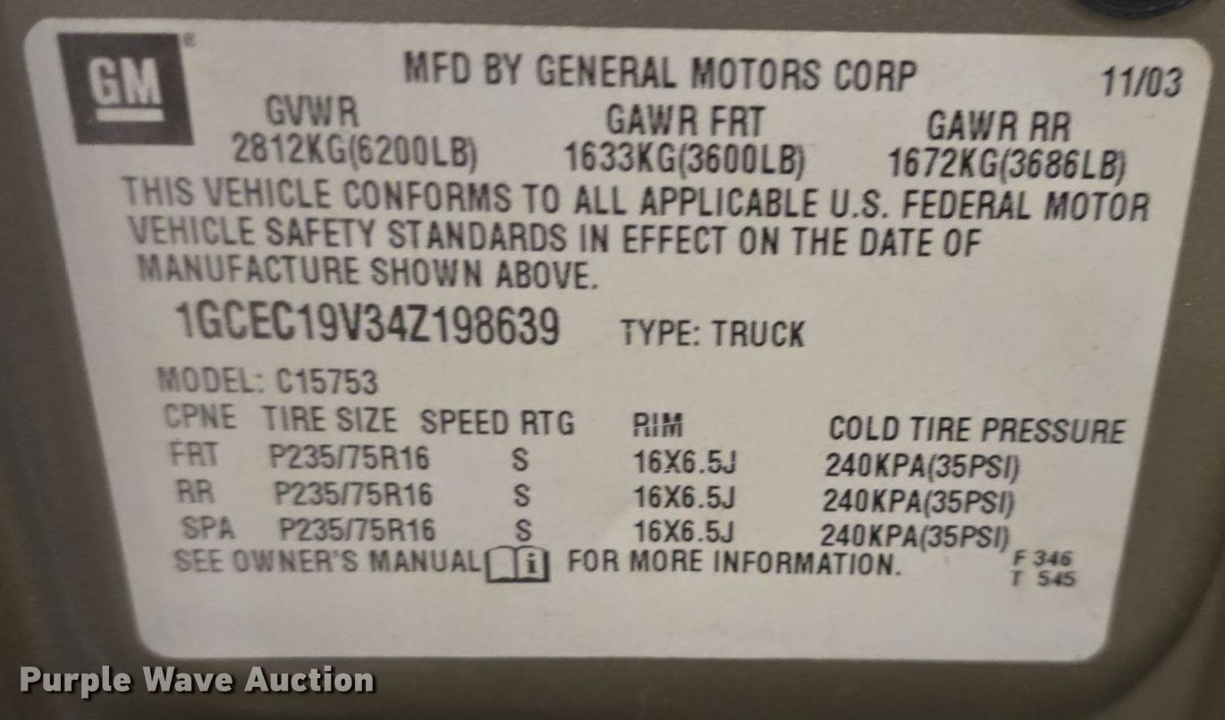 Purple Wave is selling a used 1/2 Ton Pickup or Van in Kansas. This item is a 2004 Chevrolet Silverado 1500 Ext. Cab pickup truck with the following: Miles: 194,789 on odometer, VIN: 1GCEC19V34Z198639, Unit #: 37