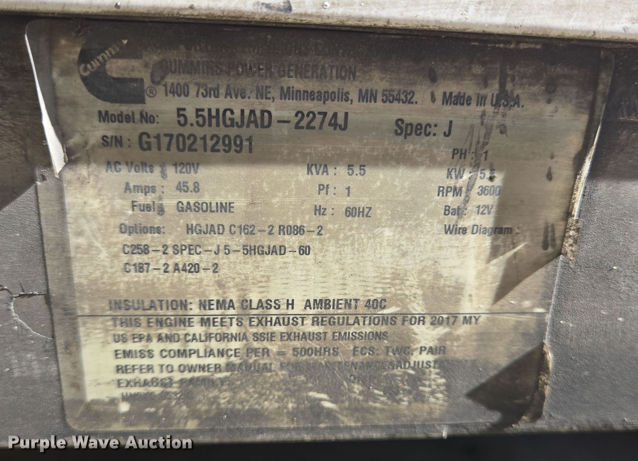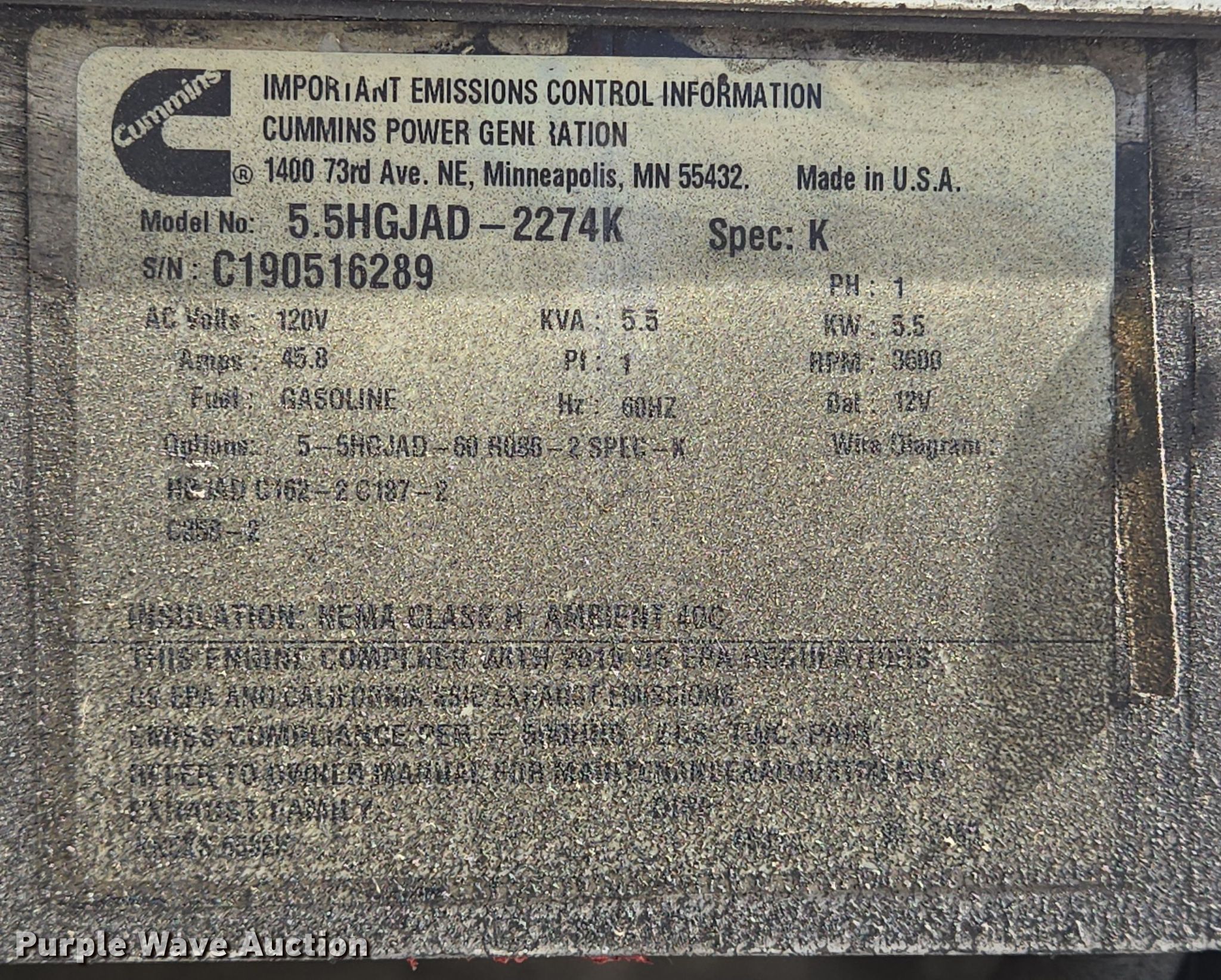 (3) Onan 5.5HGJAD generators. Hours: Unknown. Engine Cummins 5.5HGJAD-2274J, Serial: G170212991. Features Generator kVA: 5.5, kW: 5.5, Phase: Single. Notes Non-operational unit. It is unlawful for any officer or employee of the City of League City, either directly or indirectly, to submit bids or purchase at any auction sale. City of League City, TX. League City, TX 77573