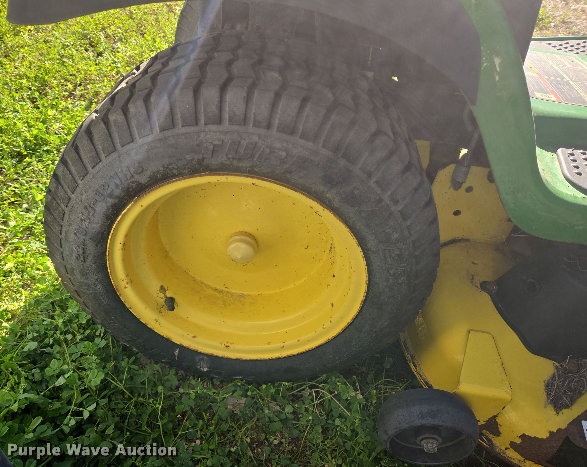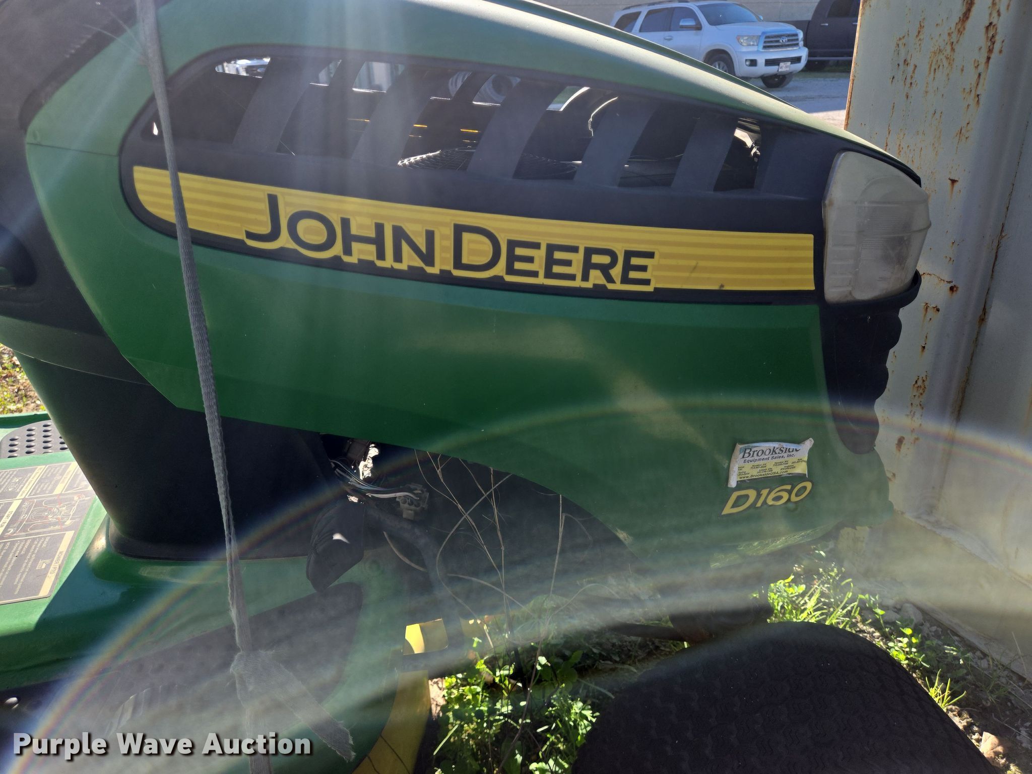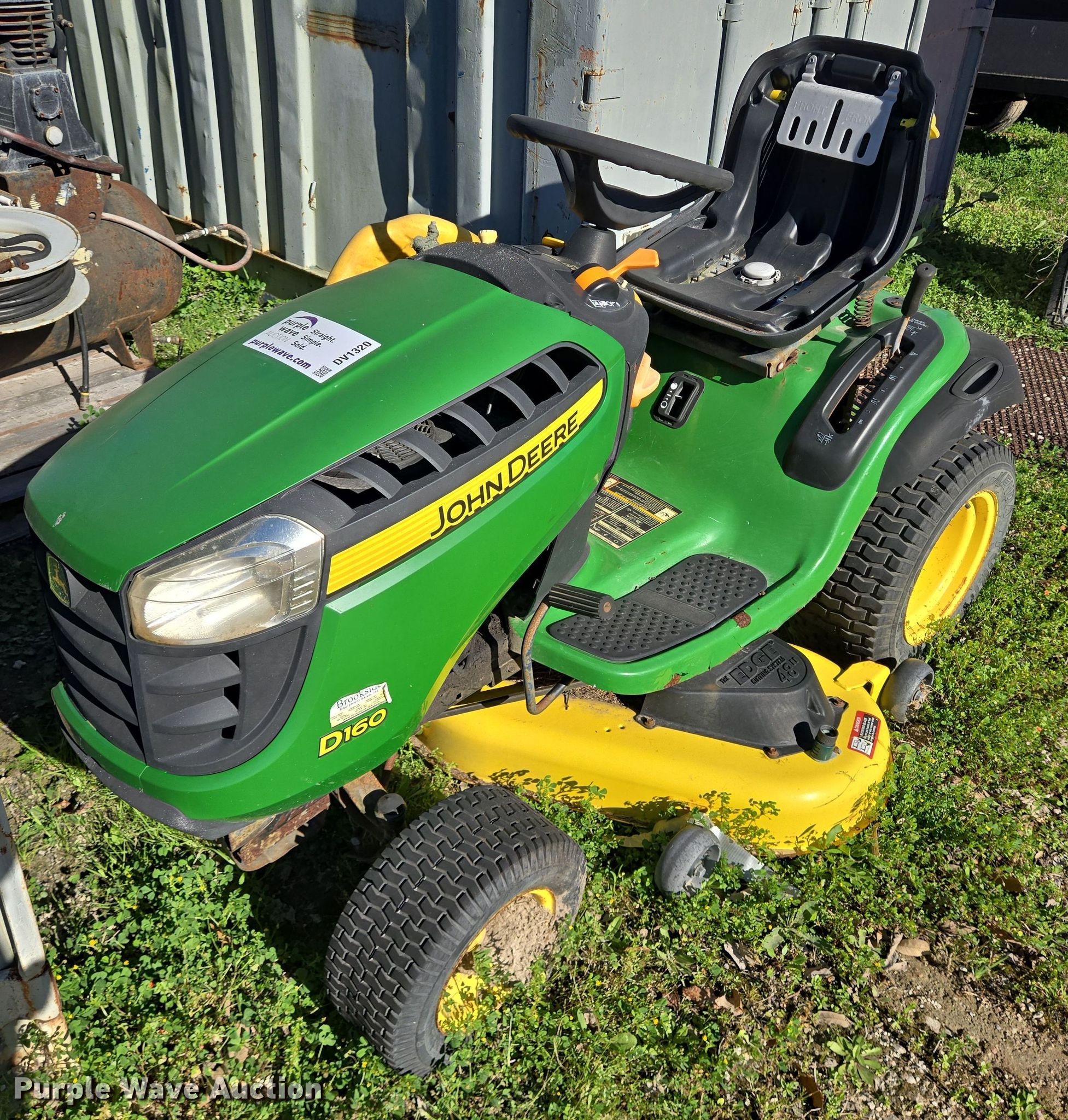 Purple Wave is selling a used Lawn Mower in Texas. This item is a John Deere D160 lawn mower with the following: Hours: 338 on meter, Cutting width: 48"