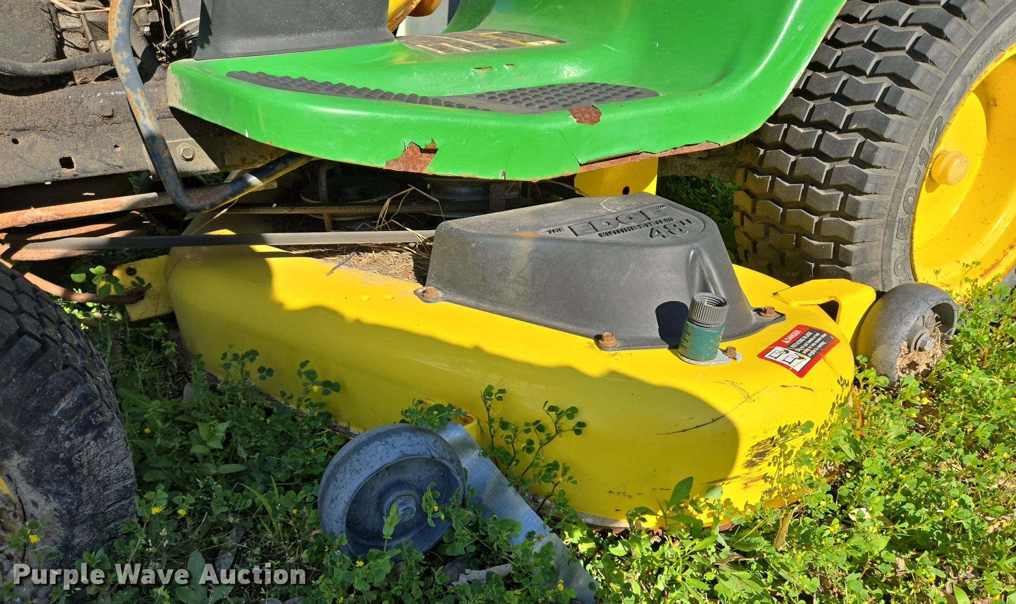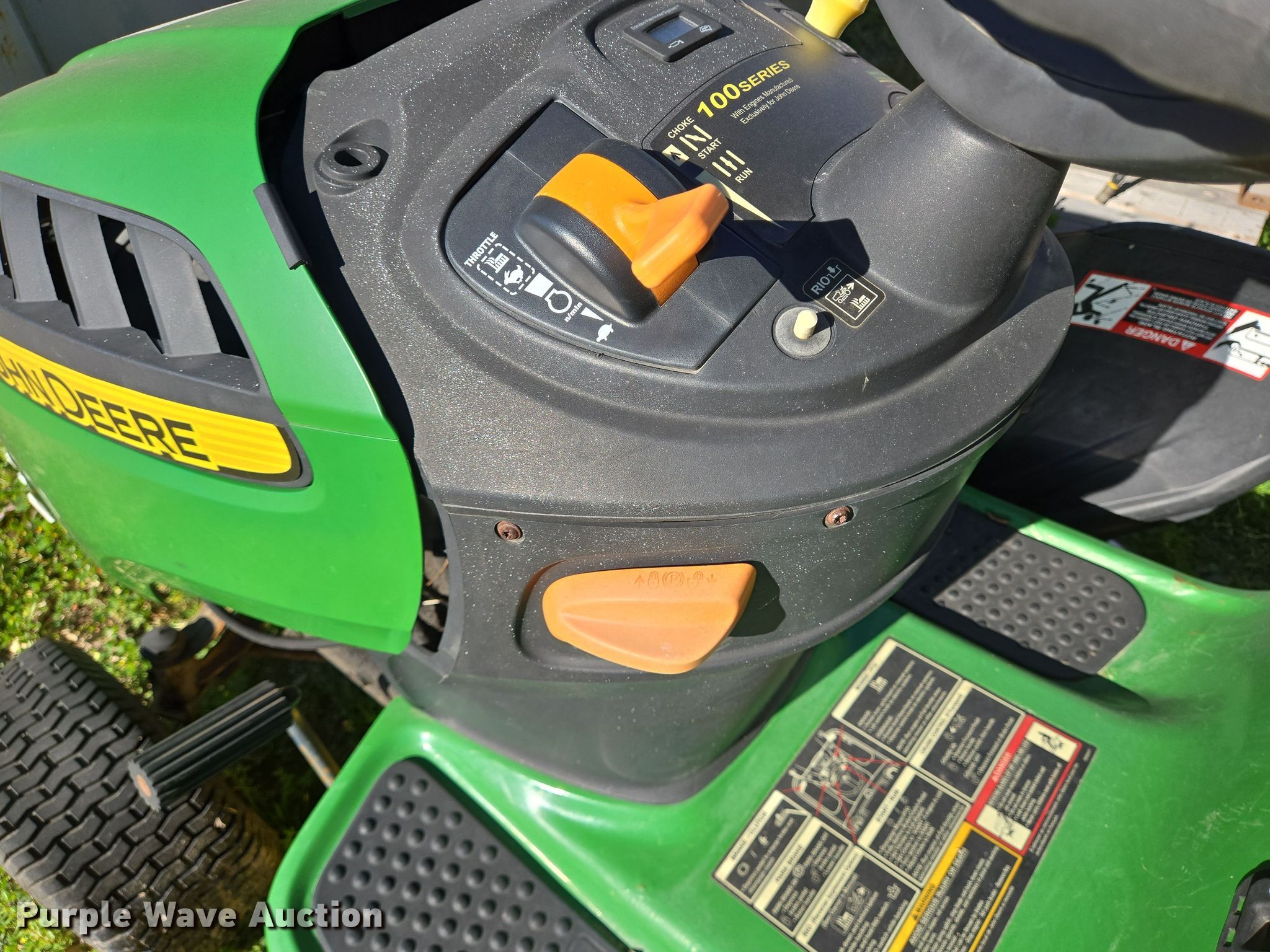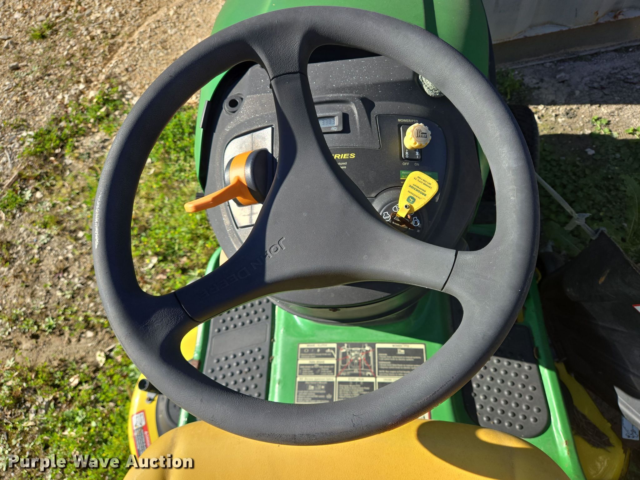 Purple Wave is selling a used Lawn Mower in Texas. This item is a John Deere D160 lawn mower with the following: Hours: 338 on meter, Cutting width: 48"