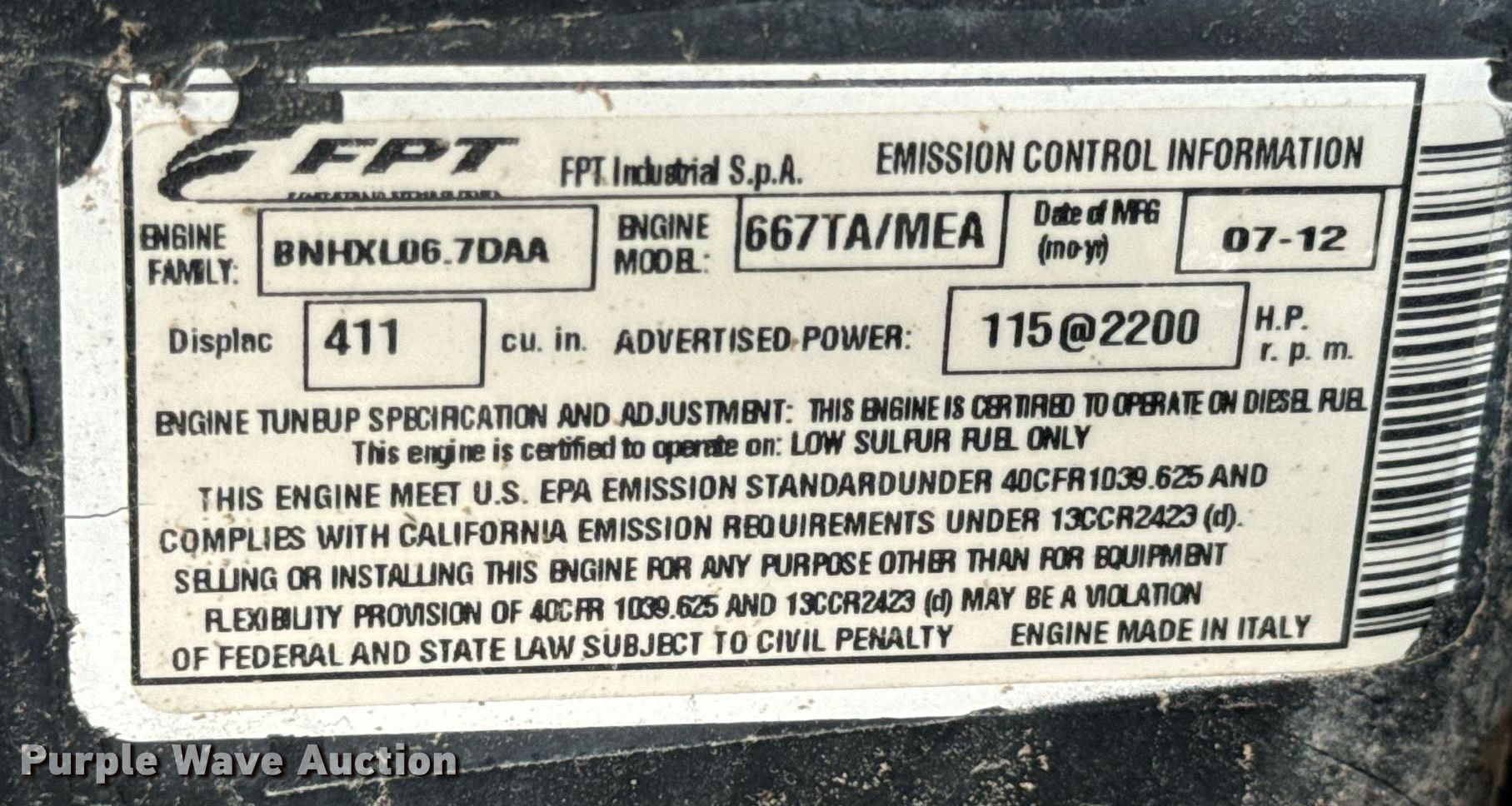 2012 New Holland T6030 MFWD tractor. Hours: 4,401 on meter, Serial: ZCBD16778. Engine FPT 667TA/MEA, Serial: 1020544, Cylinders: 6, Fuel type: Diesel, HP: 115. Transmission Powershift, 16F - 16R, Left-hand reverser, Differential lock. Operators station AC, Heat. Features PTO: 540, Three point, Seven pin outlet, Hydraulic remote sets Rear: 3, Loader ready, Loader Controls: Joystick. Tires Front: 380/85R28, Rear: 460/85R38. Miller County, MO. Eldon, MO 65026