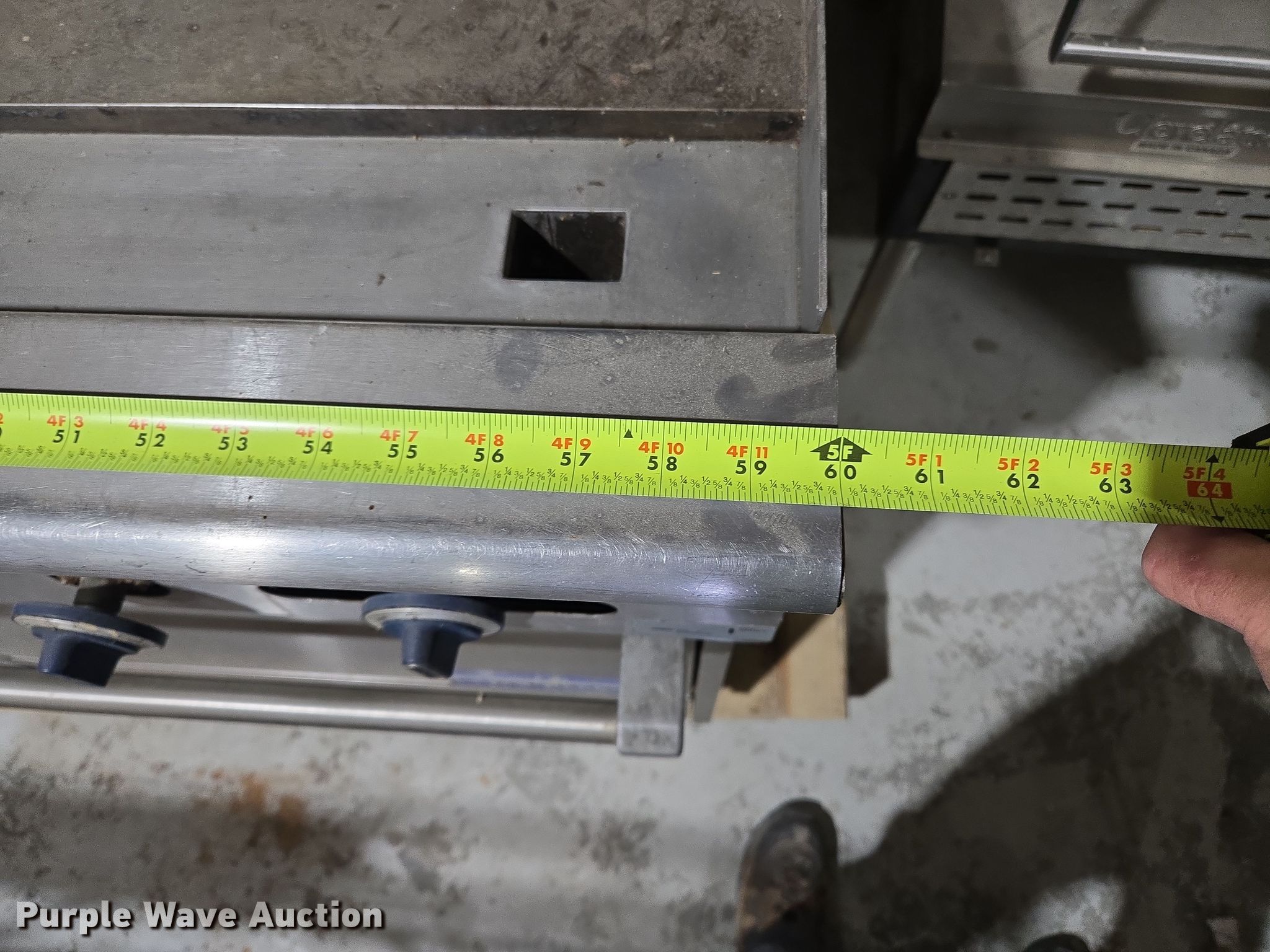 Purple Wave is selling a used Restaurant Equip. in Oklahoma. This item is a Restaurant equipment with the following: U.S. Range gas stove, Taylor ice cream machine, Cleveland SEL-40T skillet, Volts: 240, Phase: Single, (3) fold out tables, Length: 12'