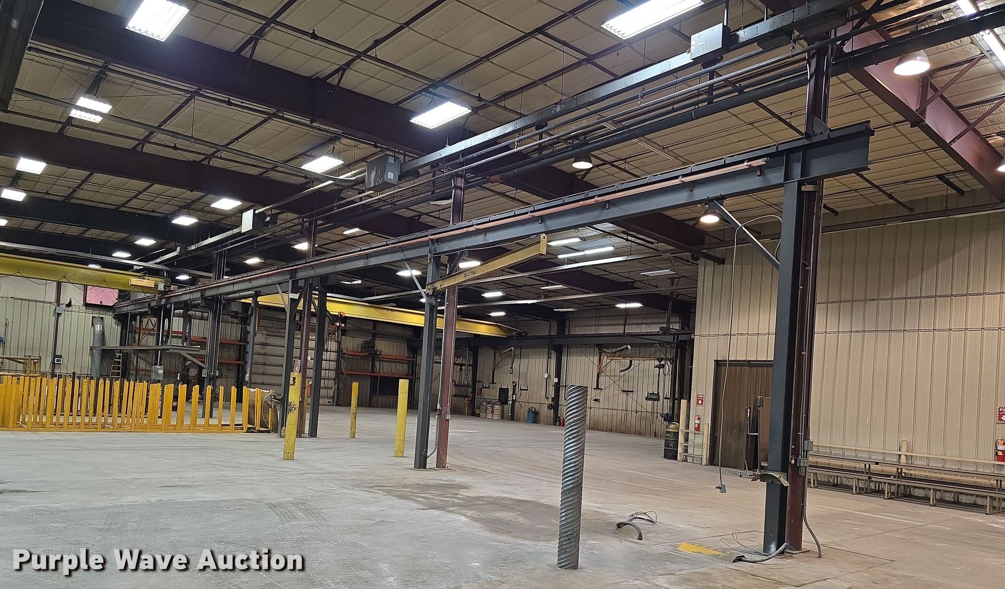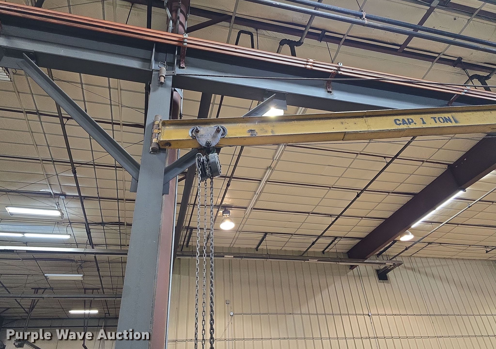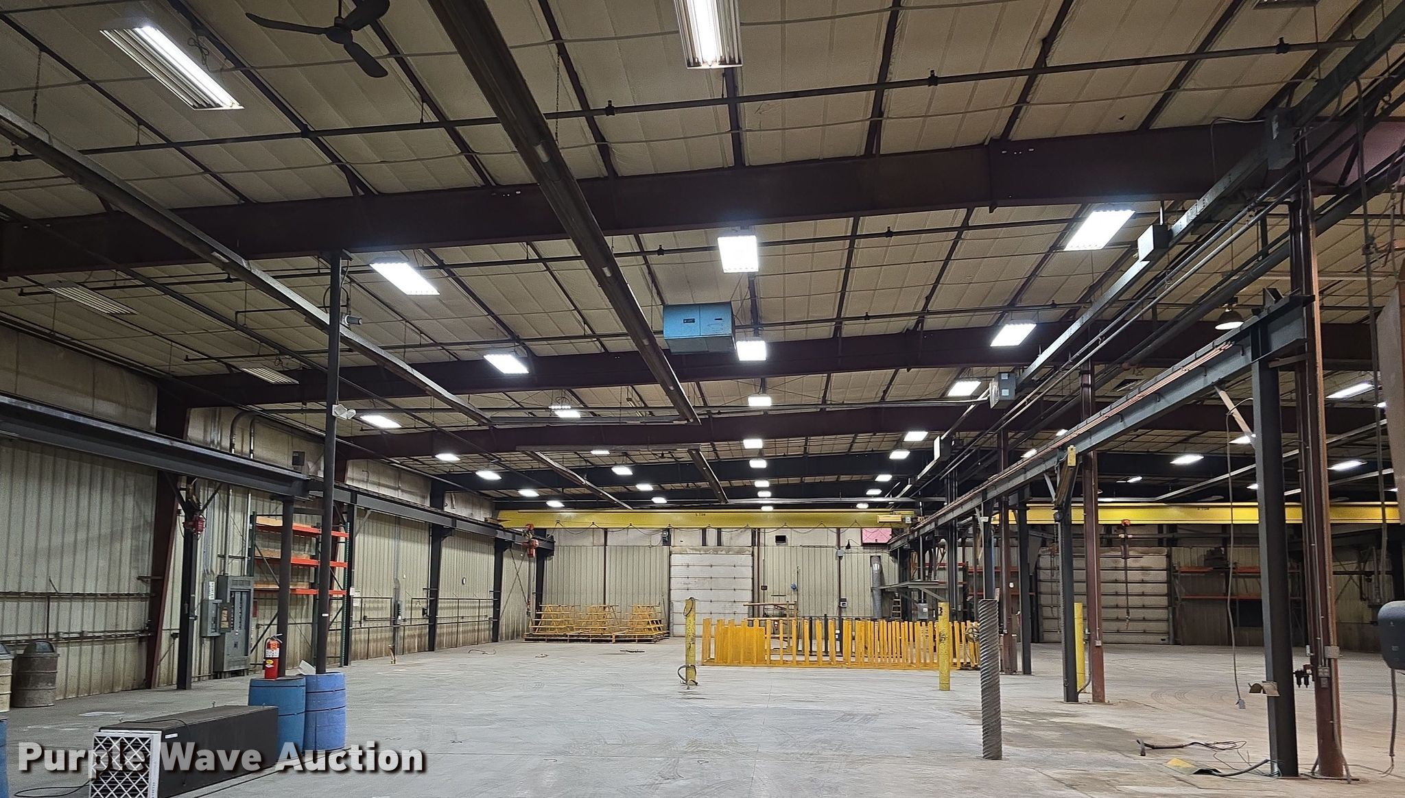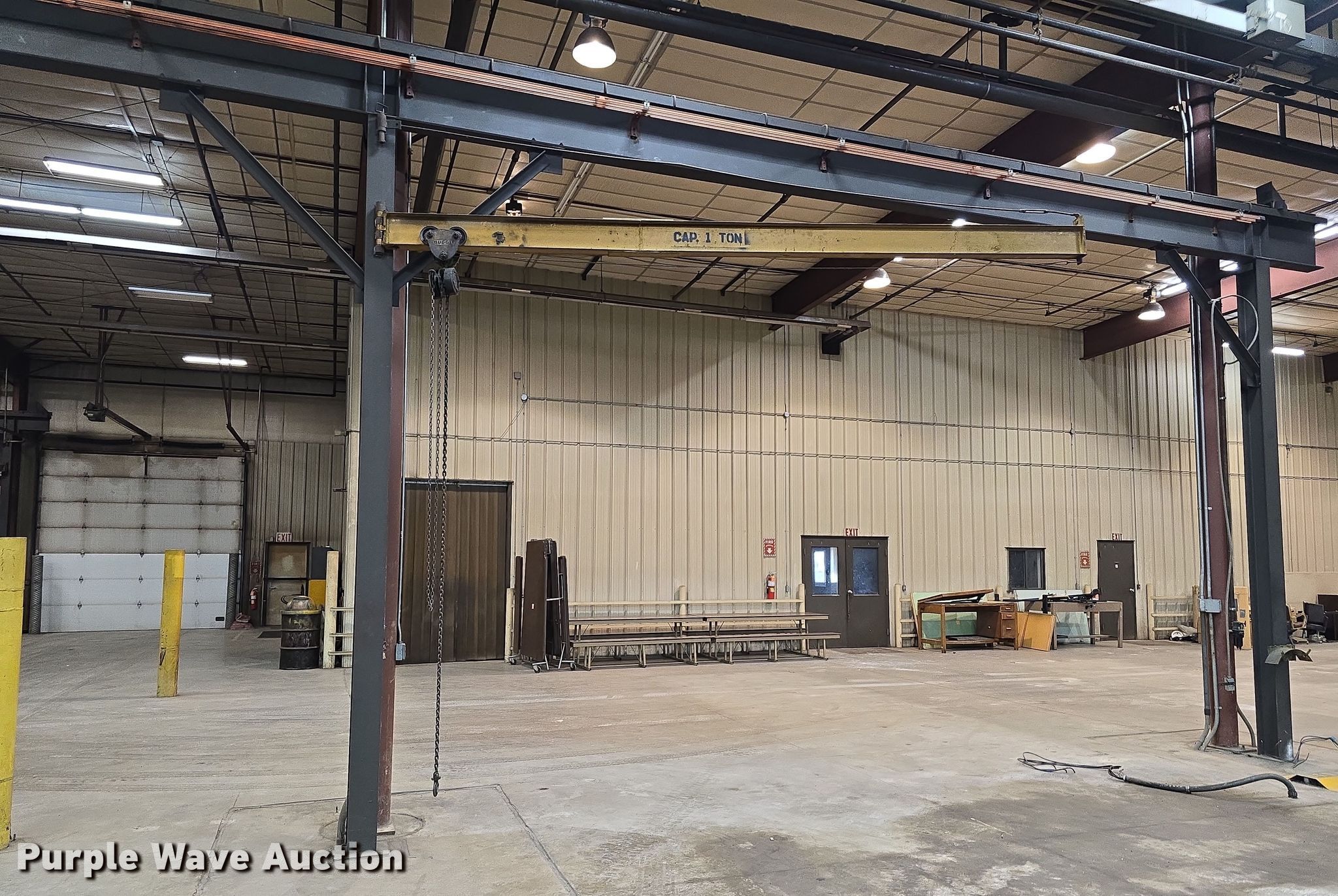 Overhead crane. Capacity: 5 tons. Features 125' L x 58' 2" W, Ground to I-beam height: 16'4", Cat walk 54" W x 49 ' L, Welded to I-beams, (6) 15' L supports, Jet hoist, Capacity: 5 tons. Notes Cat walks welded to I-beams. Disassembly and removal is the sole responsibility of the purchaser. Purchaser must provide Seller proof of a one million dollar liability insurance policy prior to removal. Seller also requires buyer execute an Indemnity and Hold Harmless Agreement to be signed by the buyer prior to removal. Seller shall make available said Hold Harmless Agreement directly to bidders upon request... Southwest Iowa Rural Electric Cooperative. Corning, IA 50841