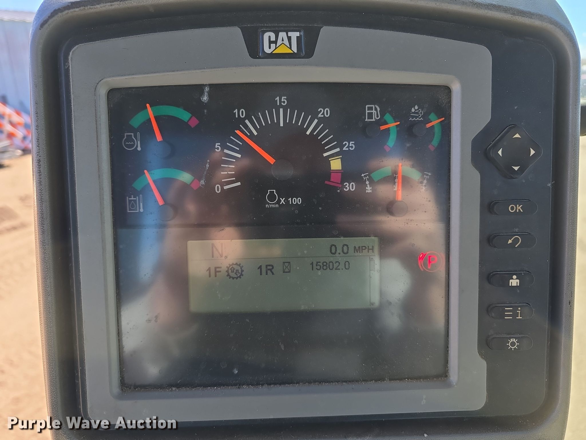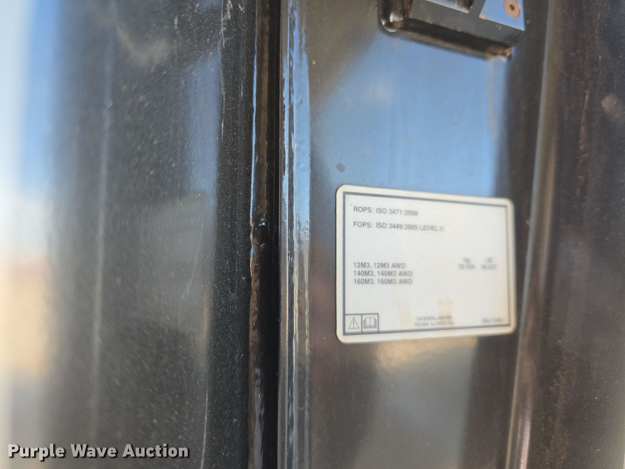 2014 Caterpillar 12M3 motor grader. Hours: 15,802 on meter, Serial: CAT0012MJN9F00138. Engine Caterpillar C9.3, Cylinders: 6, Fuel type: Diesel. Transmission Powershift, 8F - 6R. Chassis Differential lock. Operators station Enclosed cab, AC, Heat, Steering: Joystick. Features Heated mirrors, Moldboard: Tip control, Side shift, Moldboard total width: 14', Front-mounted lift group Make: Caterpillar. Tires Front: 14.00R24, Rear: 17.5R25. Notes (2) Additional 17.5R25 tire and wheels, Glass cracked. Custer County Road Dept.. Broken Bow, NE 68822