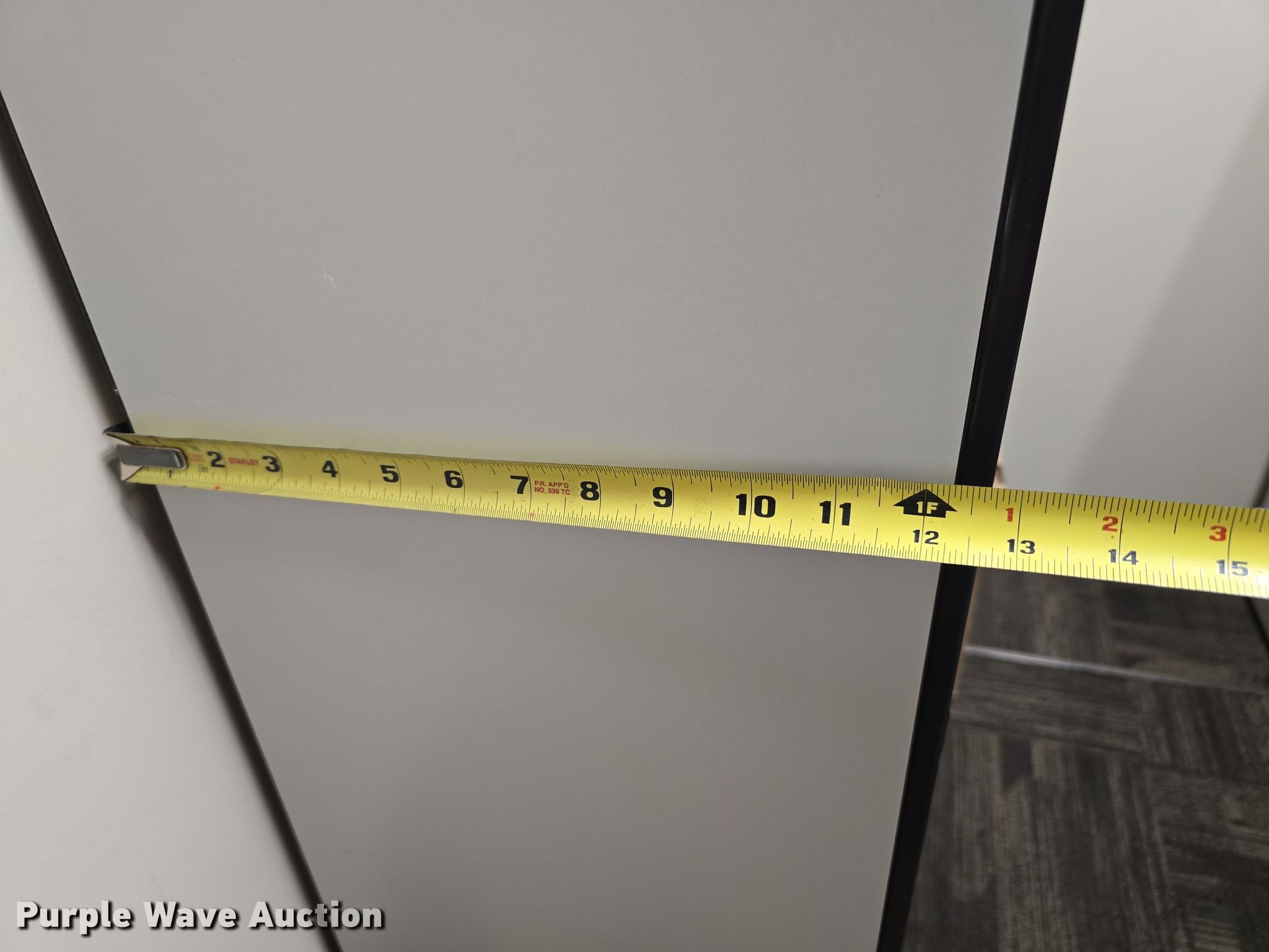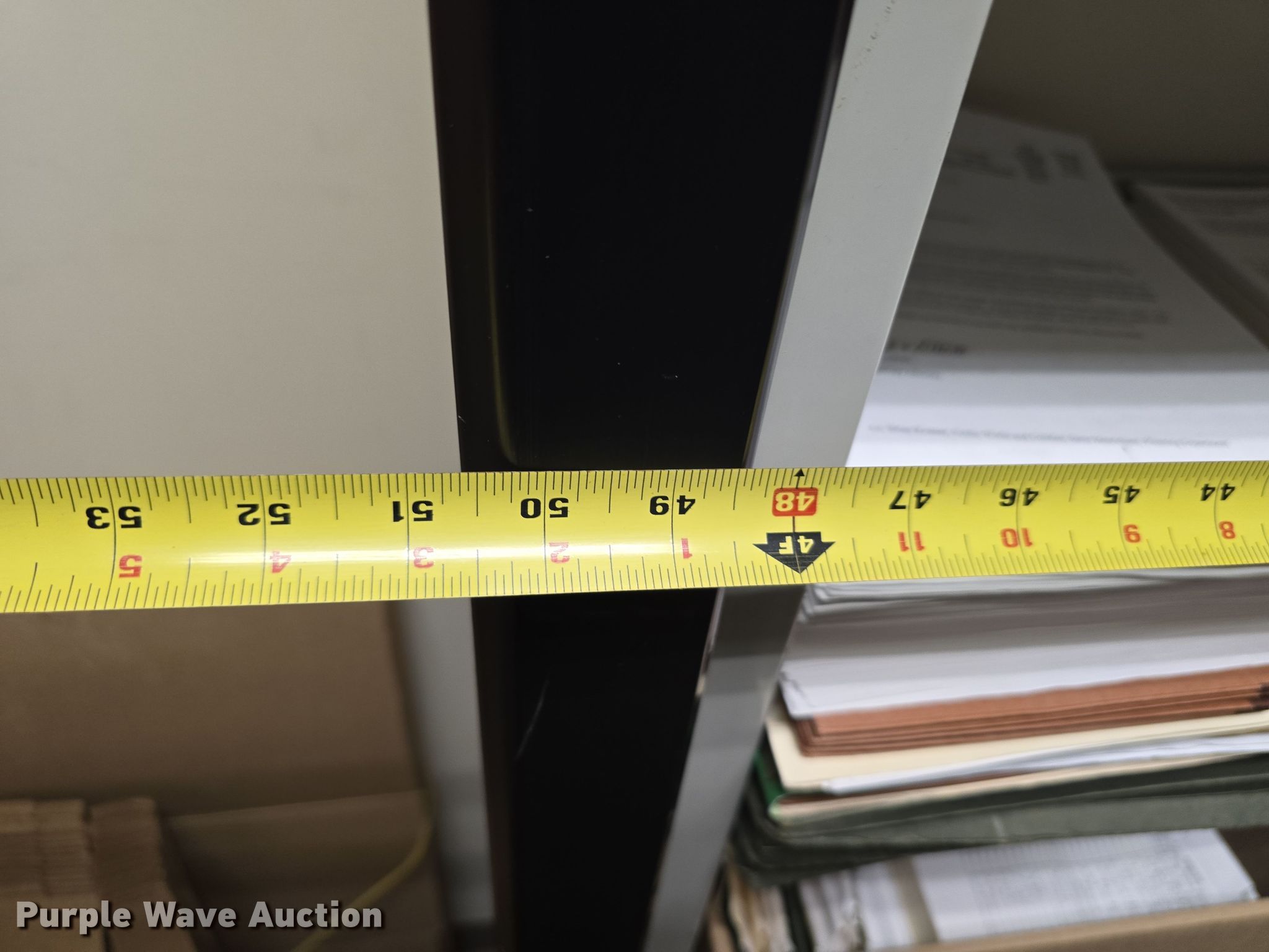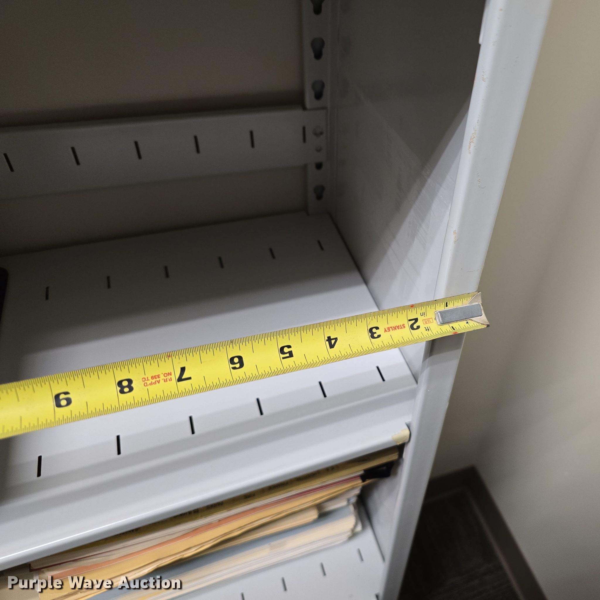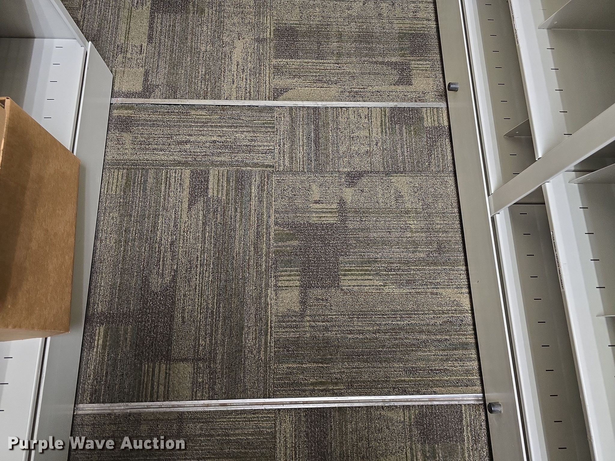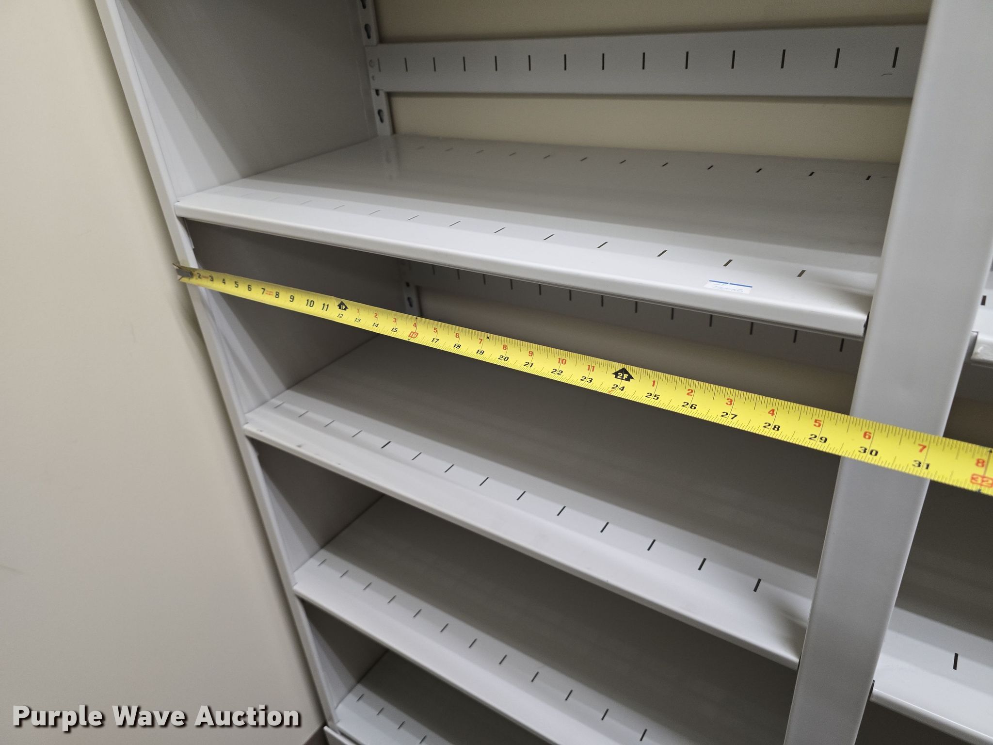 Purple Wave is selling a used Furniture in Nebraska. This item is a Spacesaver storage shelves with the following: (4) 62.5" L x 24" W x 82.5" H, Double-sided storage, 62.5" L x 15" W x 82.5" H, 50.5" L x 12" W x 82 5" H, Track system, Overall: 14' 3" W