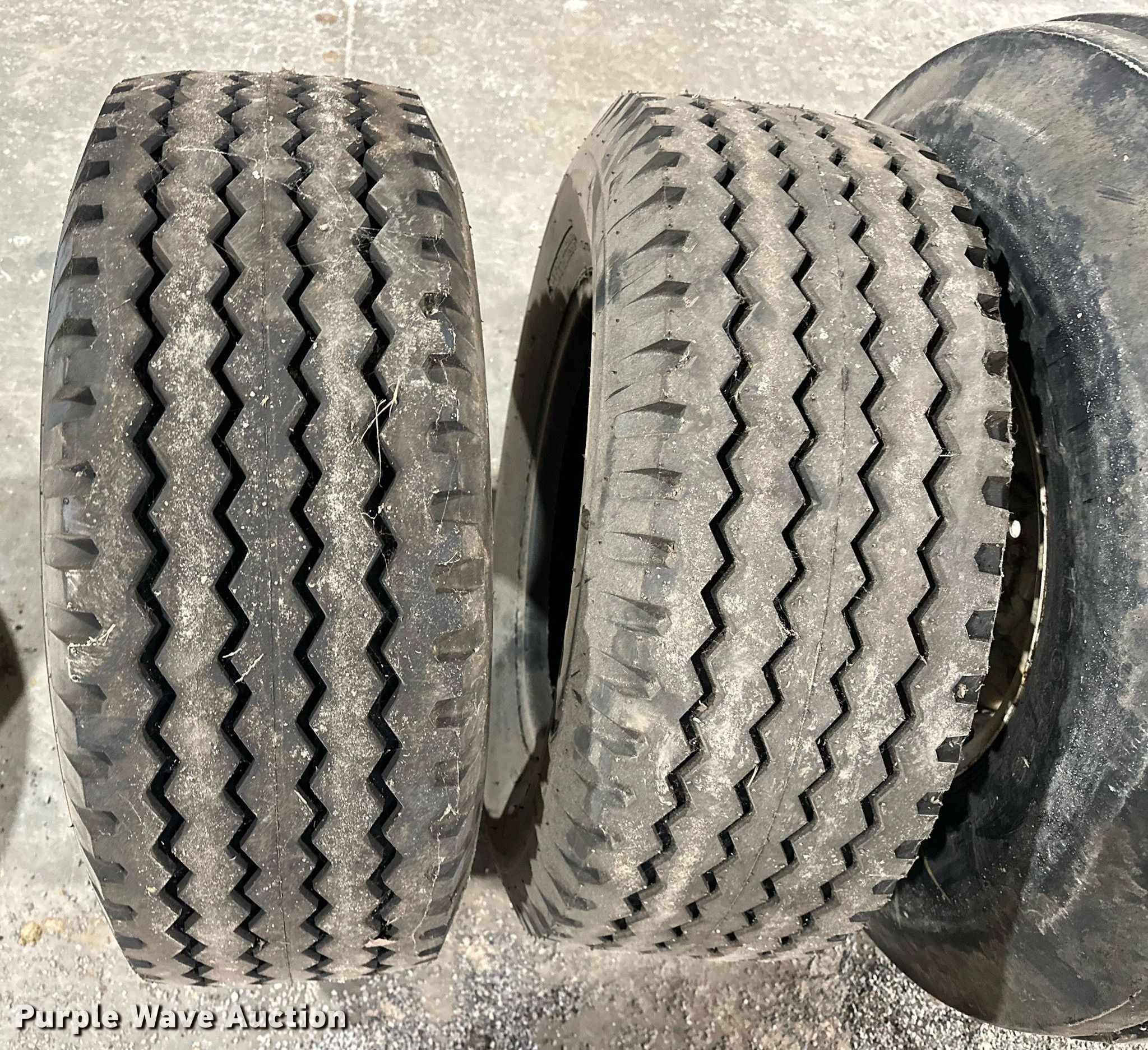 Purple Wave is selling a used Industrial Tires or Tracks in Oklahoma. This item is a (4) tires with the following: (2) Otani tires, Size: 11L-16, Advance Industrial tire, Size: 11L-16, Akuret tire and wheel, Size: 10.00-16