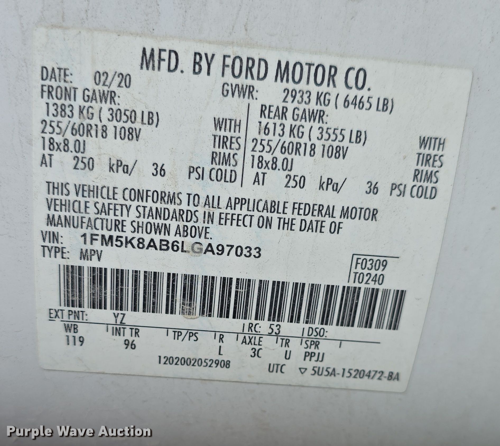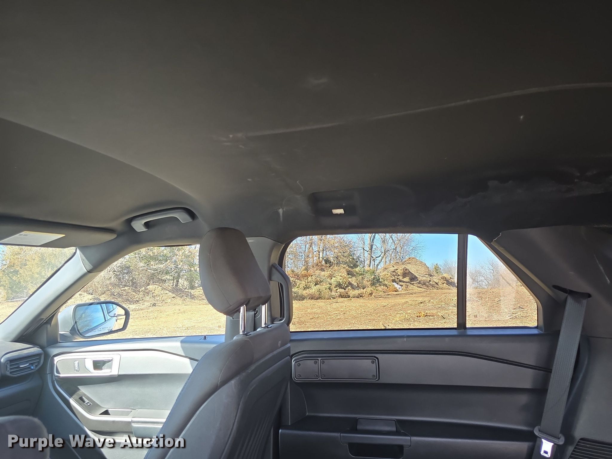 2020 Ford Explorer Police Interceptor SUV. Miles: 143,161 on odometer, Hours: 11,303 on meter, VIN: 1FM5K8AB6LGA97033. Engine Displacement: 3.3L V6 DOHC, Cylinders: 6, Fuel type: Gas. Transmission Automatic, All wheel drive. Interior AC, Heat, Seat: Power driver, Heated mirrors, Power windows, Power locks, Cruise control, Backup camera. Tires Size: 255/60R18. Notes Center console missing, Rear seats removed but included, Parts need replaced: Front bumper, Headlight assembly, Radiator support, Transmission cooler, AC condenser. Kansas title. Title distribution may be delayed up to 14 days from verification of funds. Lenexa, KS 66219