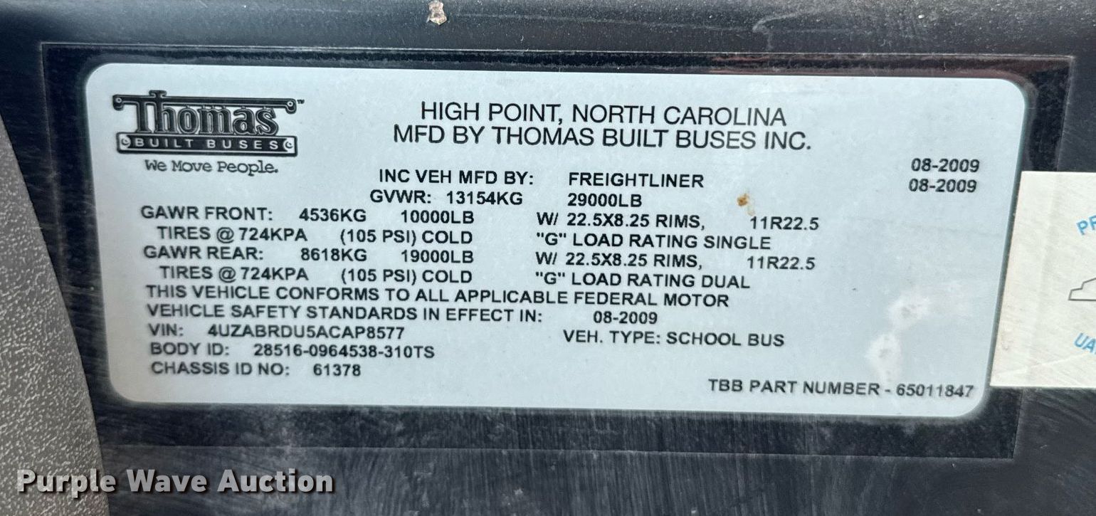 Purple Wave is selling a used Bus in Iowa. This item is a 2010 Thomas Built school bus with the following: Miles: 93,384 on odometer, Hours: 6,493 on meter, VIN: 4UZABRDU5ACAP8577