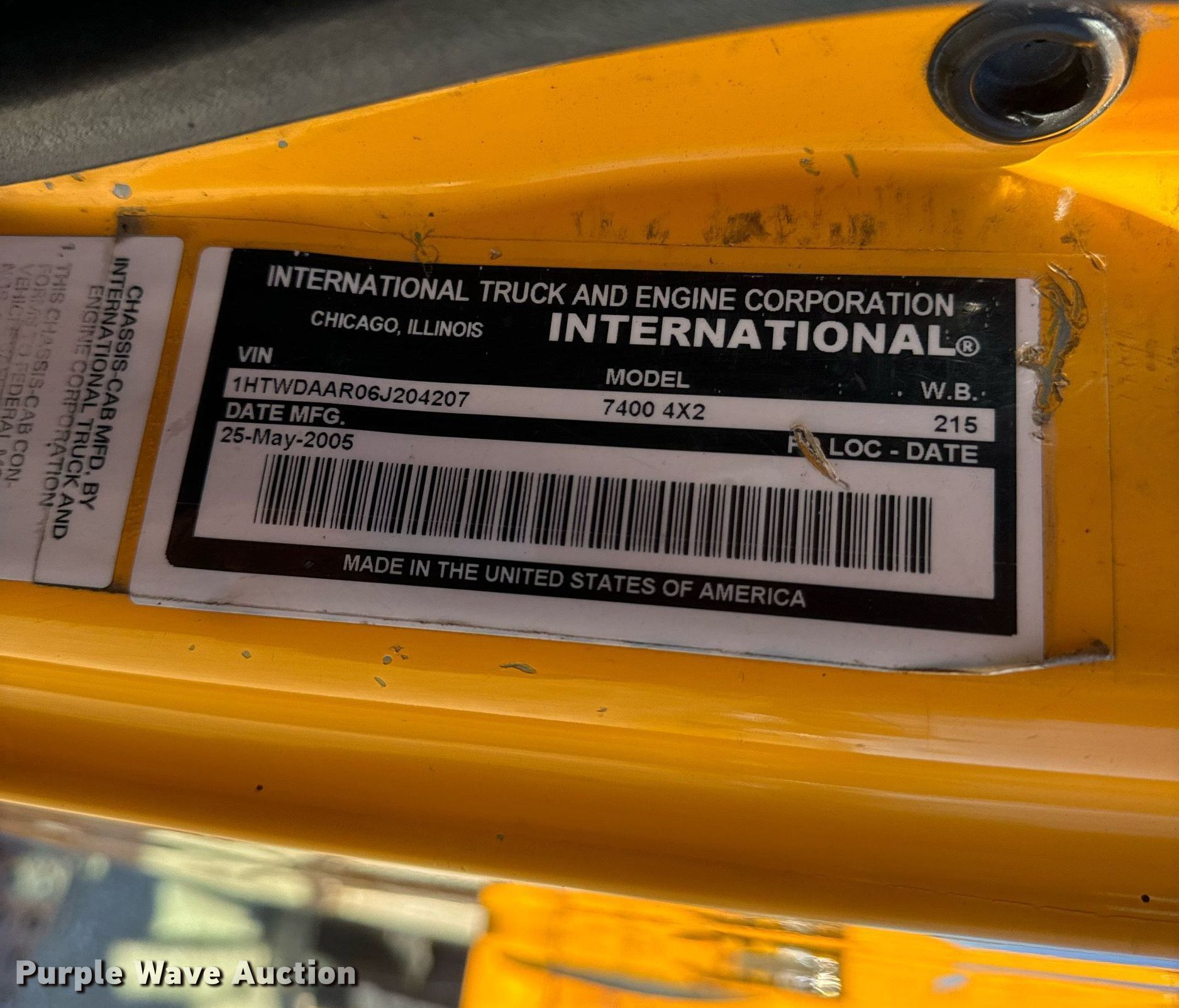 Purple Wave is selling a used Construction Dump Truck in Missouri. This item is a 2006 International 7400 Crew Cab dump truck with the following: Miles: 194,988 on odometer, Hours: 14,039 on meter, VIN: 1HTWDAAR06J204207, Unit #: 7580