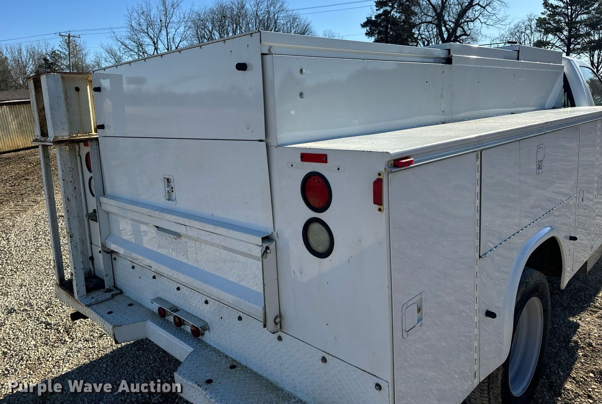 2006 Ford F450 Super Duty XL utility / service truck. Miles: 202,389 on odometer, VIN: 1FDXF46P86EB42435, Unit #: 7796. Engine Displacement: 6.0L, Cylinders: 8, Fuel type: Diesel. Transmission Manual, Speed: 6. Interior AC, Heat, Cruise control. Features Utility bed Knapheide 6132D54J, 11' 1" L x 94" W. Tires Size: 225/70R19.5. Notes Bed issues, holds water. Missouri title. Title distribution may be delayed up to 14 days from verification of funds. New Bloomfield, MO 65063