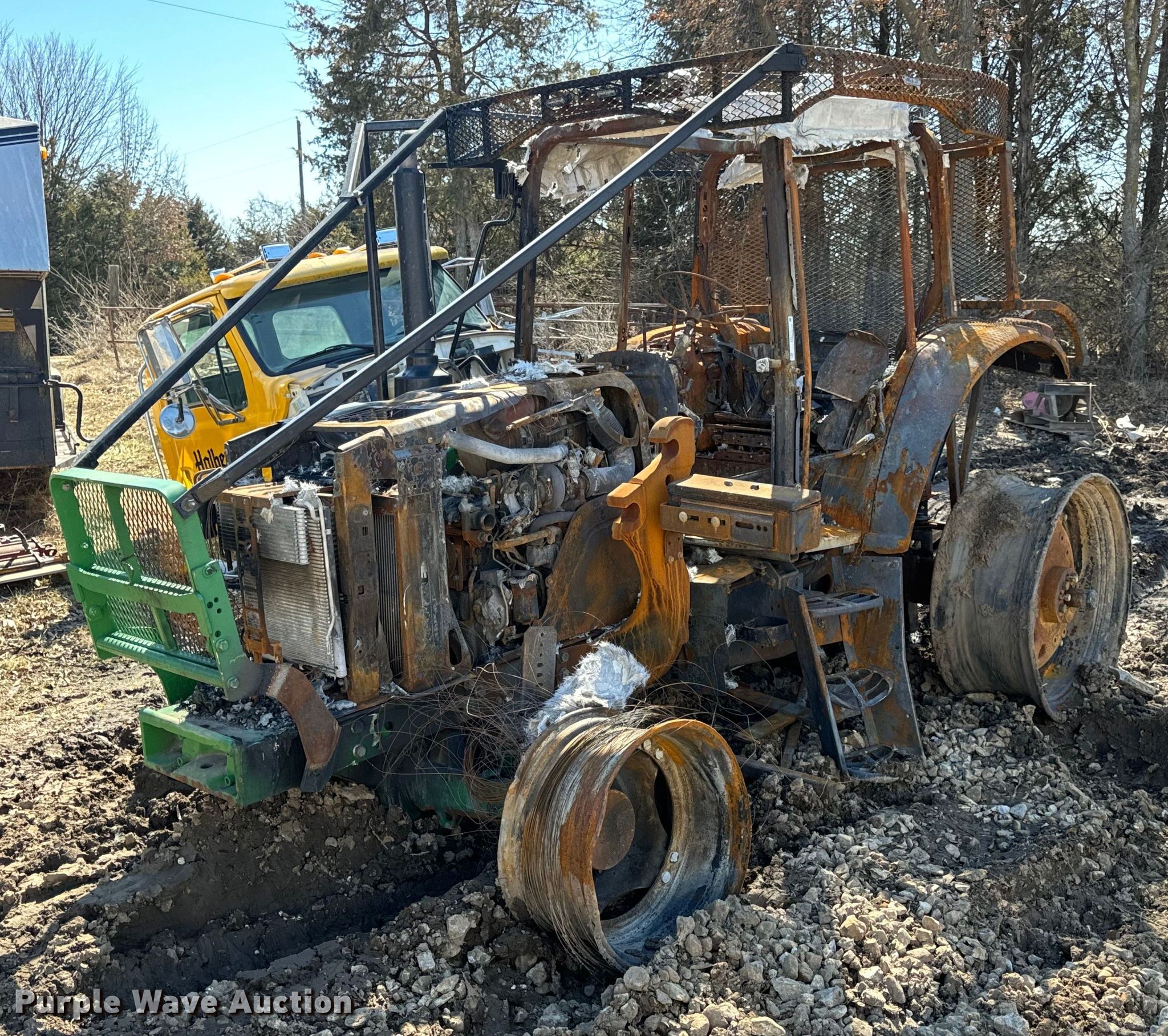 2020 John Deere 6130M tractor. Hours: Unknown, Serial: 1L06130MLLG979189. Engine John Deere, Fuel type: Diesel. Features PTO: 540, Three point, Hydraulic remote sets Rear: 3, Loader ready, Loader Controls: Joystick. Notes Non-operational unit, Fire damage, Missing 3pt lift arms. New Bloomfield, MO 65063