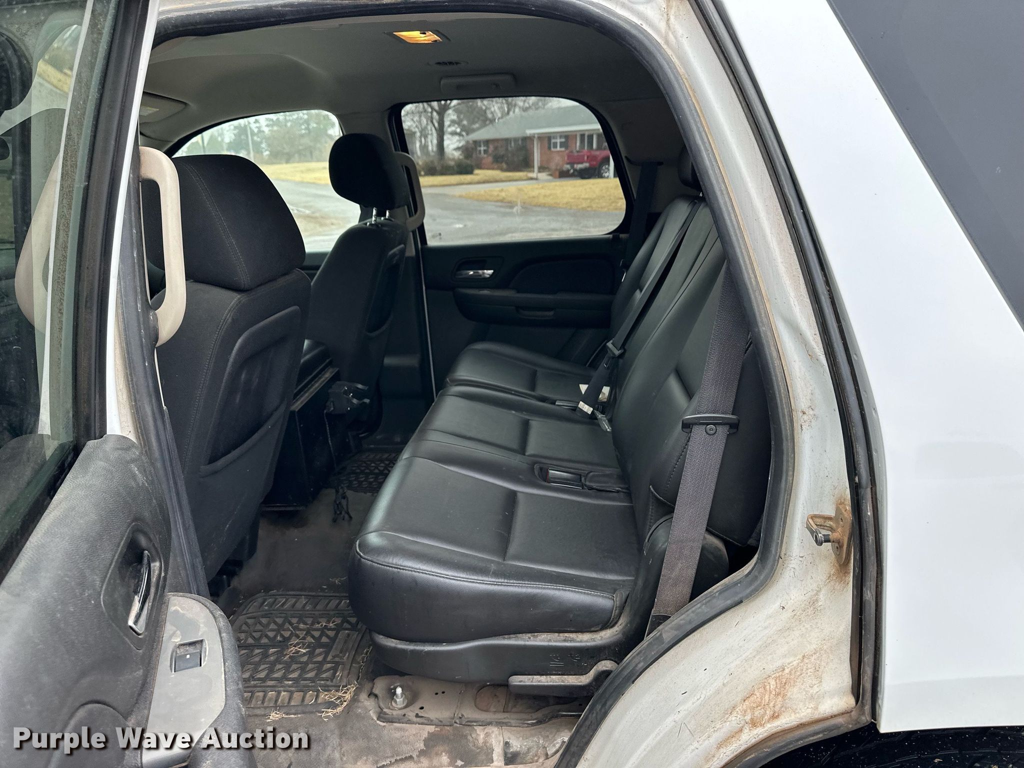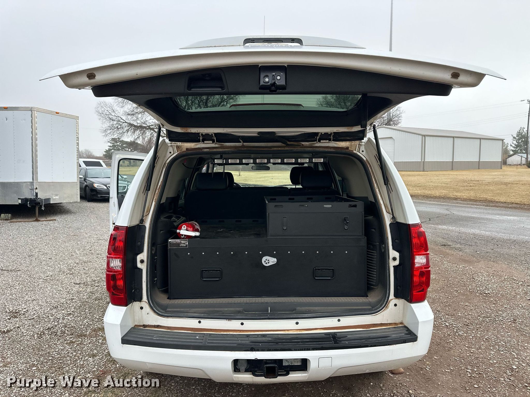 2010 Chevrolet Tahoe SUV. Miles: 141,325 on odometer, VIN: 1GNUKAE02AR132272. Engine Displacement: 5.3L V8 OHV, Cylinders: 8, Fuel type: Gas. Transmission Automatic, Four wheel drive. Interior AC, Heat, Power windows, Power locks, Cruise control. Tires Size: 265/70R17. Notes Dash warning indicator: TPMS, Law enforcement equipment not included. Oklahoma title. Title distribution may be delayed up to 30 days from verification of funds. Dewey County, OK Sheriff's Office. Taloga, OK 73667