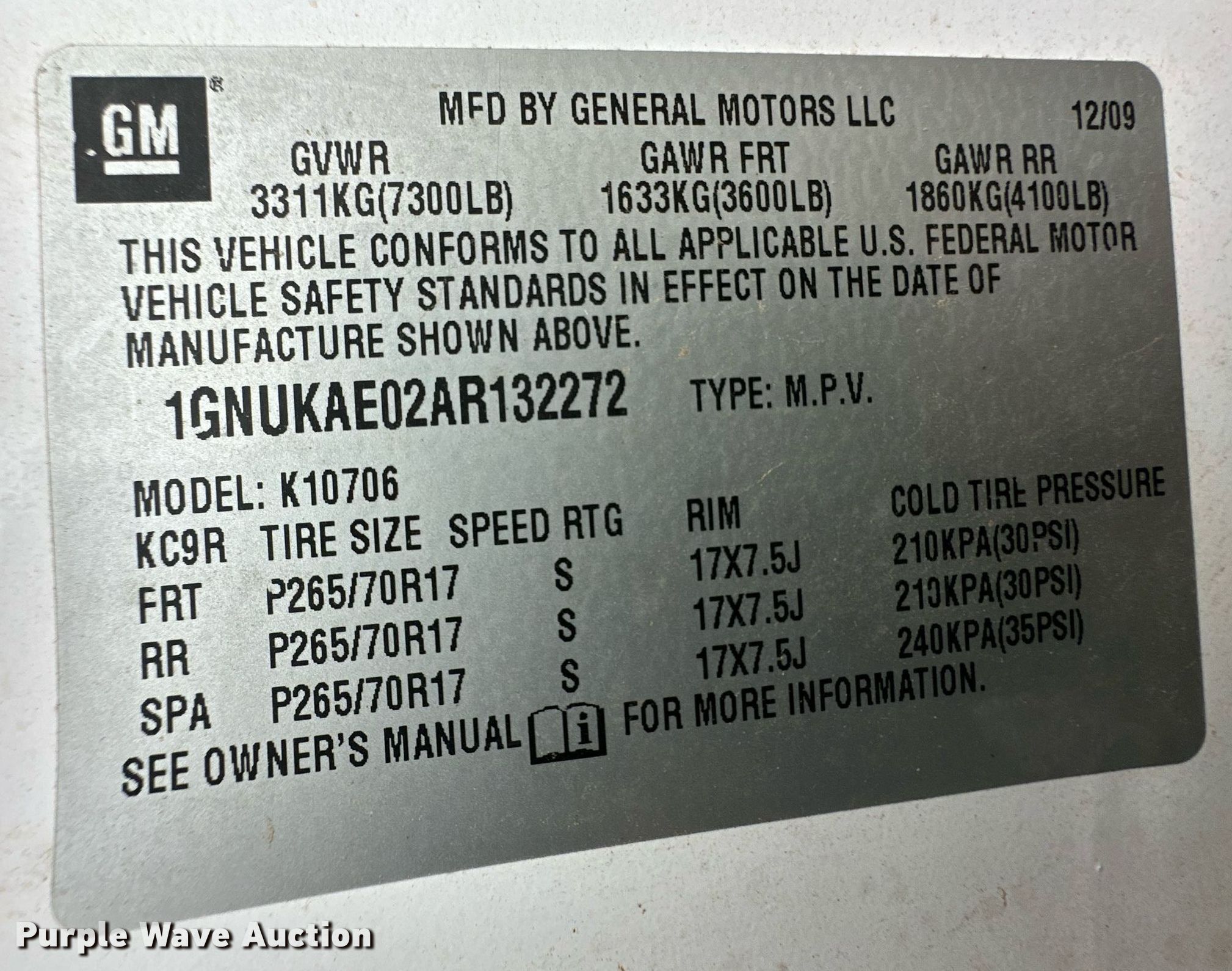 Purple Wave is selling a used Passenger Vehicle in Oklahoma. This item is a 2010 Chevrolet Tahoe SUV with the following: Miles: 141,325 on odometer, VIN: 1GNUKAE02AR132272
