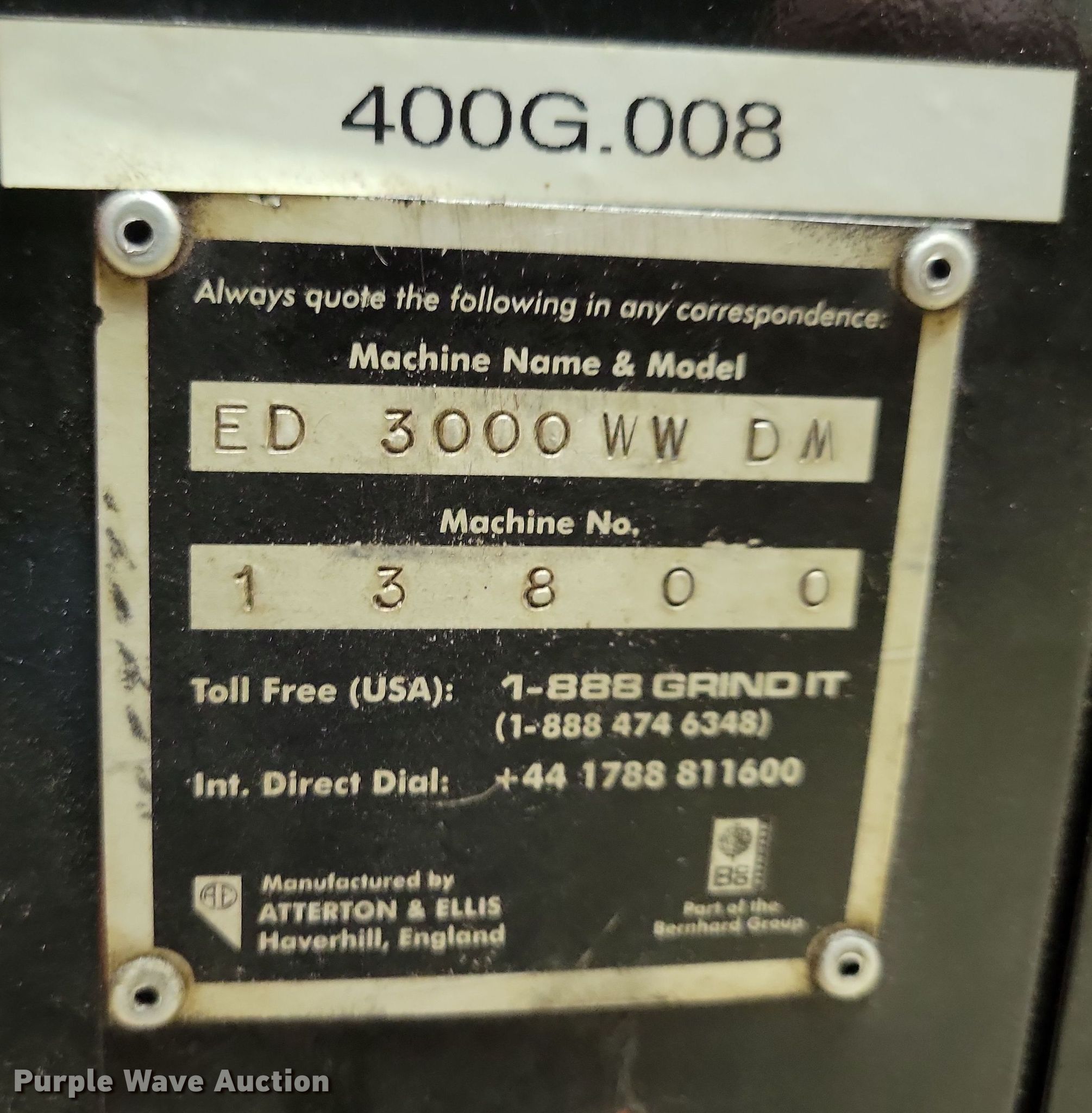 Purple Wave is selling a used Tools in South Dakota. This item is a (2) Atterton & Ellis grinders with the following: Model: A/M, Serial: 5464, Model: ED 3000 WW DM, Serial: 13800, Hours: 932 on meter