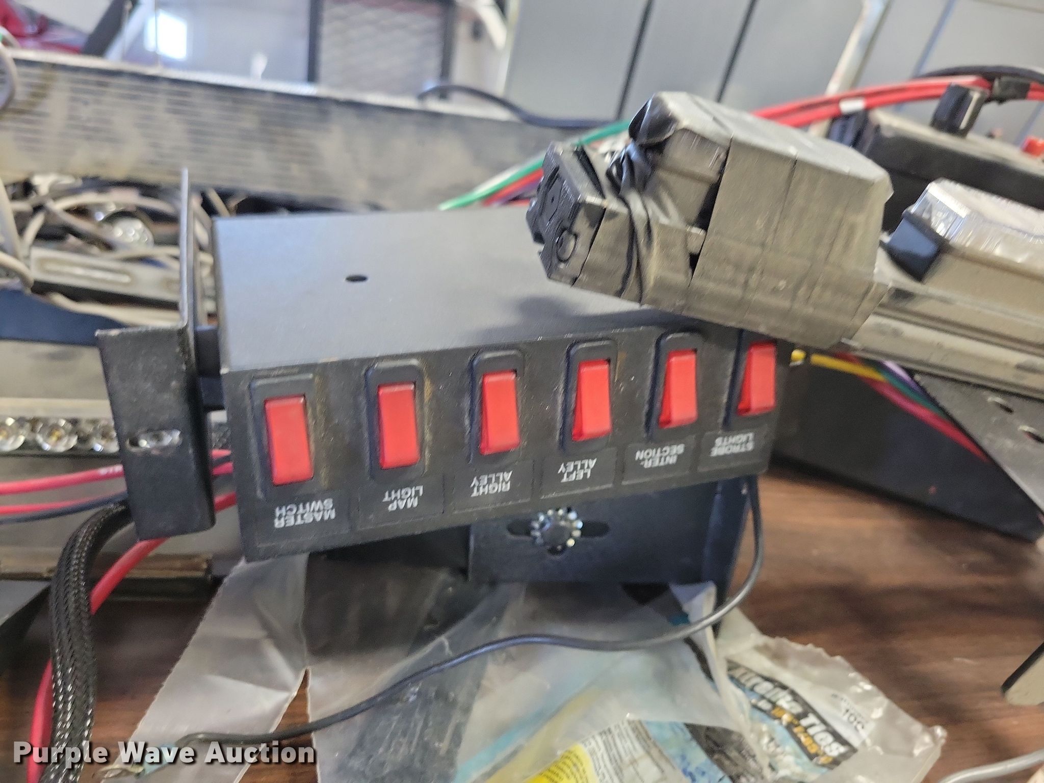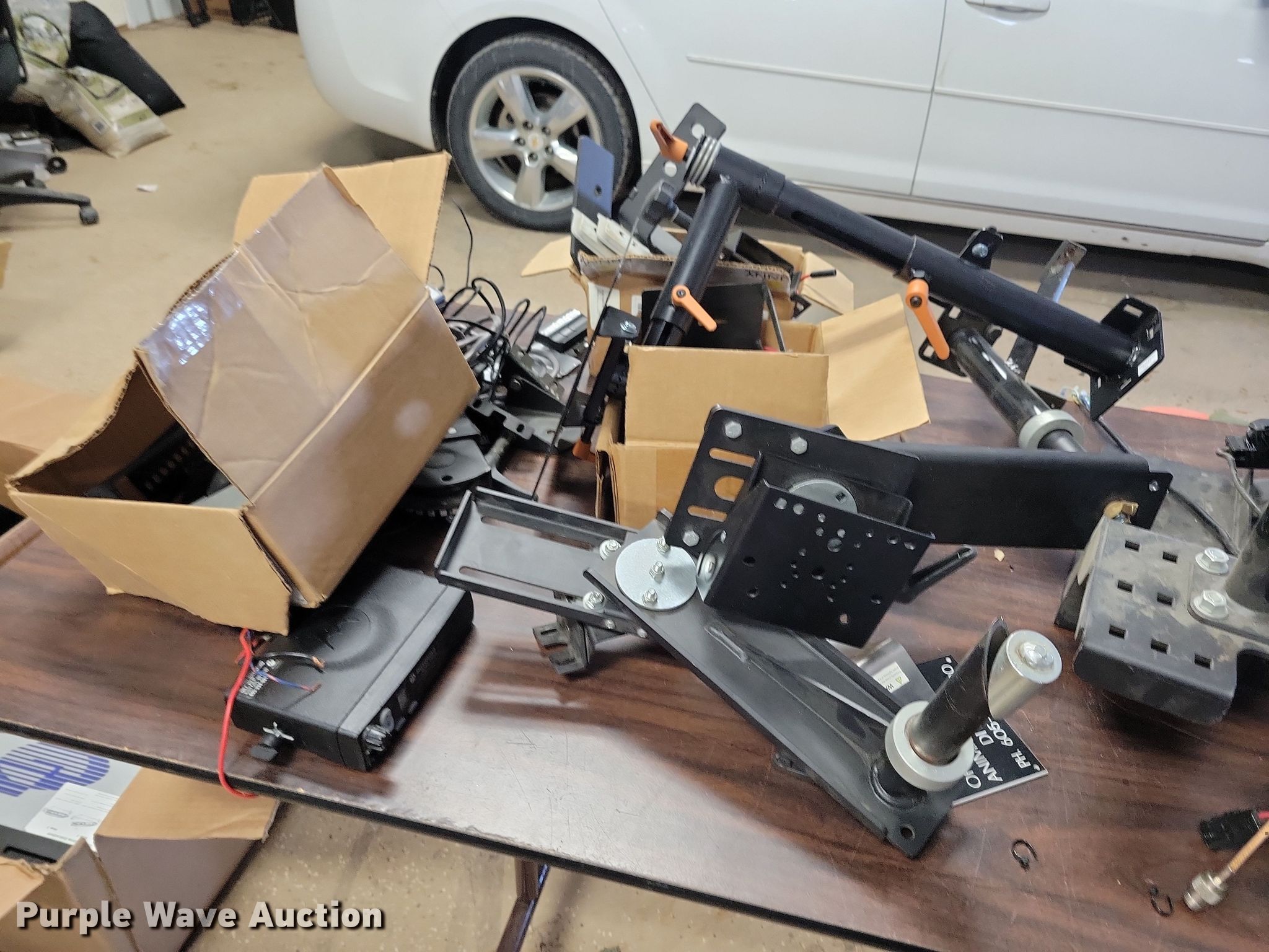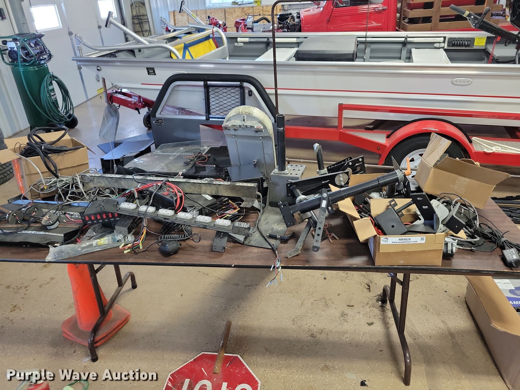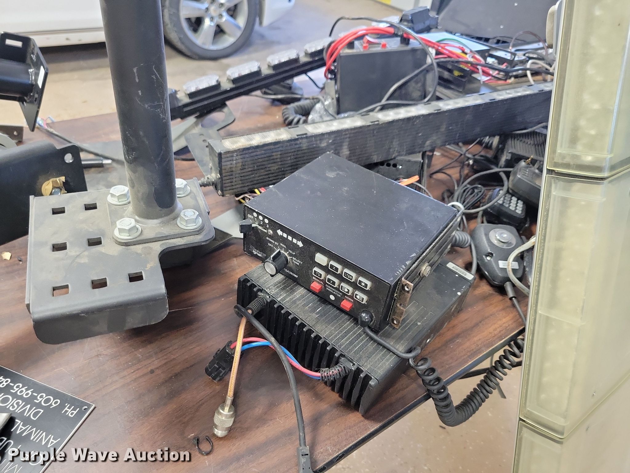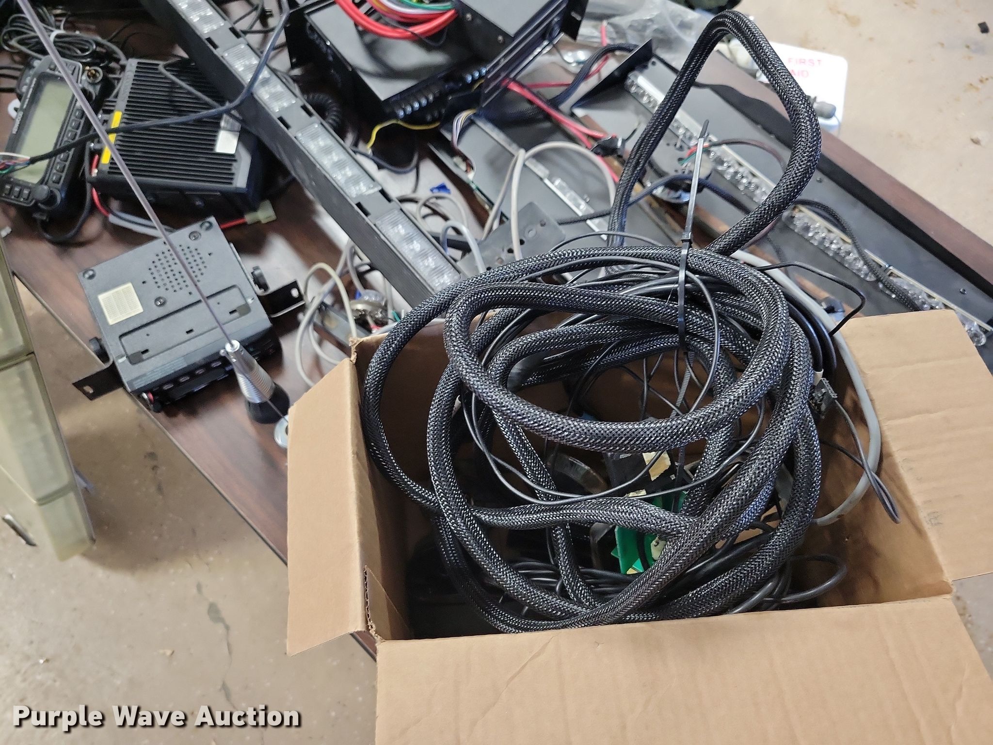 Purple Wave is selling a used Automotive Parts or Acces. in South Dakota. This item is a Police vehicle parts and accessories with the following: Approx. 10 Gamber-Johnson laptop docking stations, Lights, Light bars, Radios, Wiring harnesses, Console accessories mounting equipment, Console accessories mounting posts