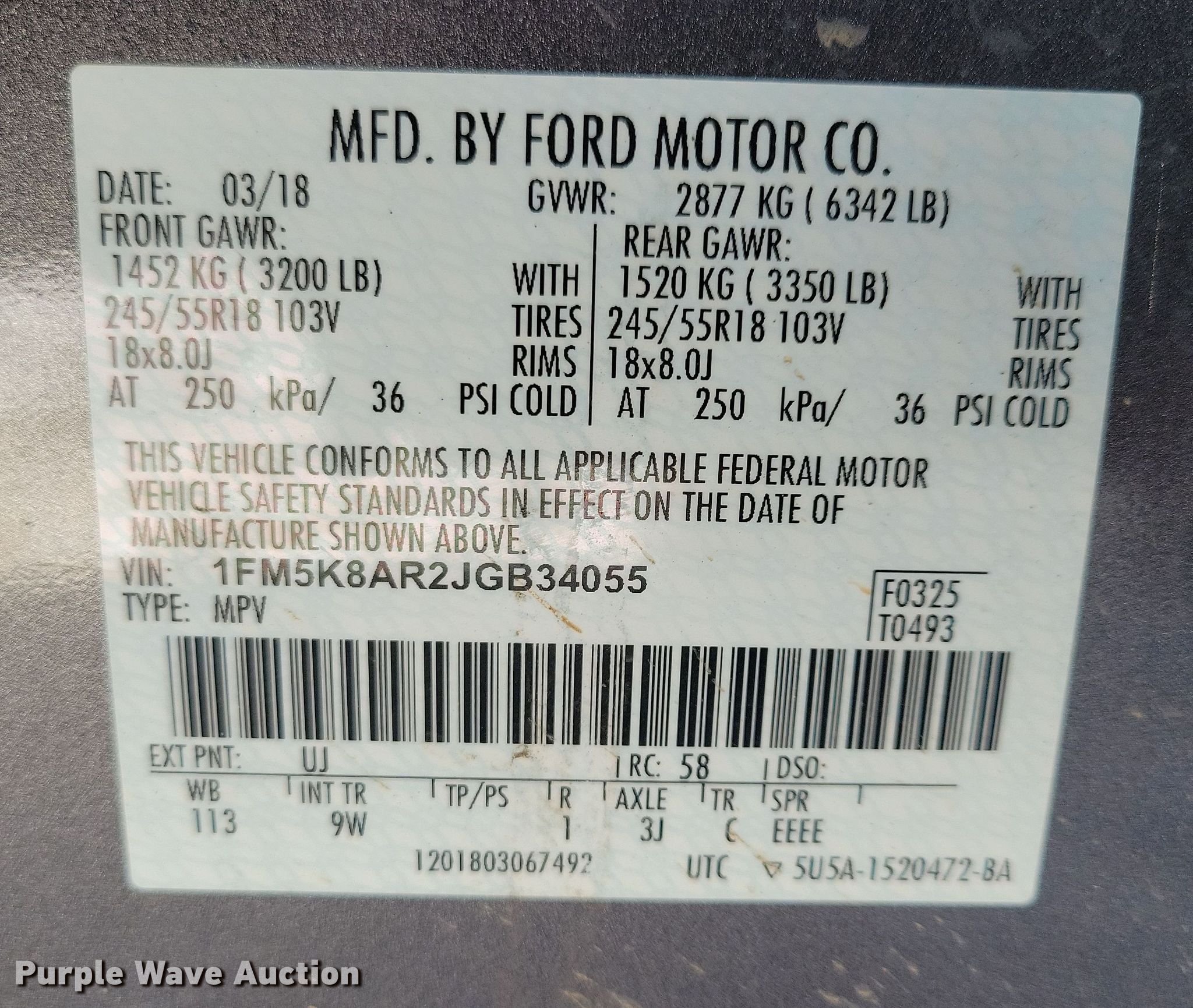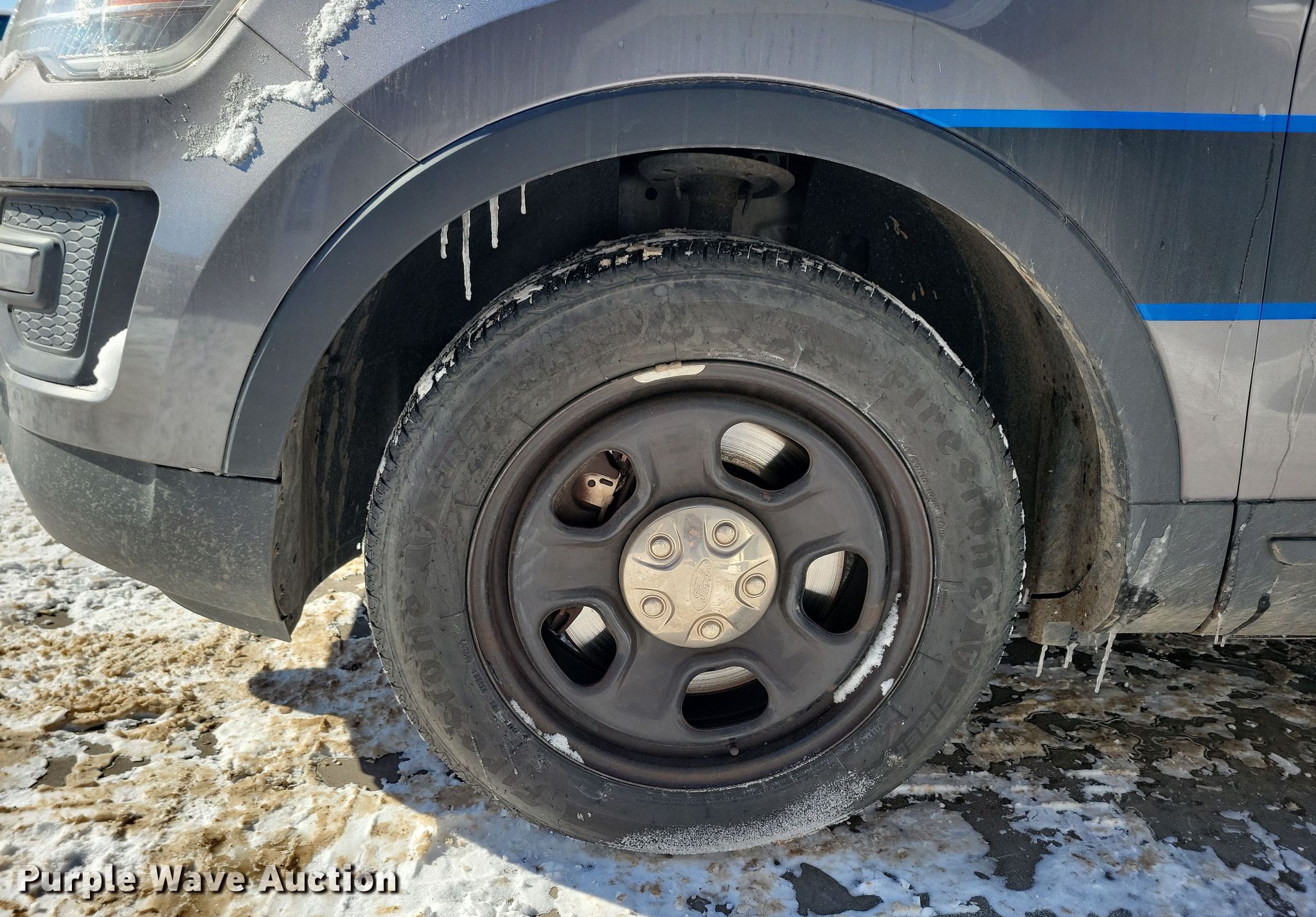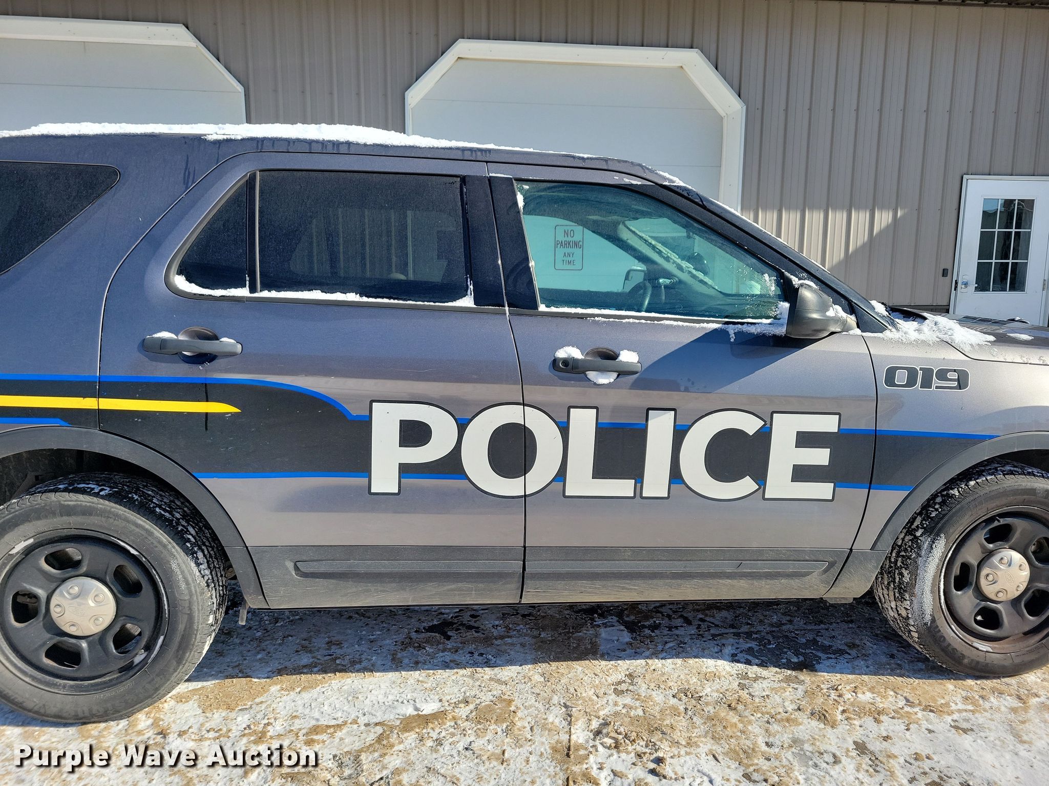 2018 Ford Explorer Police interceptor SUV. Miles: 118,917 on odometer, Hours: 18,255 on meter, VIN: 1FM5K8AR2JGB34055. Engine Displacement: 3.7L V6 DOHC, Cylinders: 6, Fuel type: Gas. Transmission Automatic, Four-wheel drive. Interior AC, Heat, Seat: Power driver, Heated mirrors, Power windows, Power locks, Cruise control, Backup camera. Tires Size: 245/55R18. Notes Center console missing, Decals will be removed prior to auction, Dash warning indicator: TPMS. South Dakota title. Title distribution may be delayed up to 14 days from verification of funds. City of Mitchell, SD. Mitchell, SD 57301