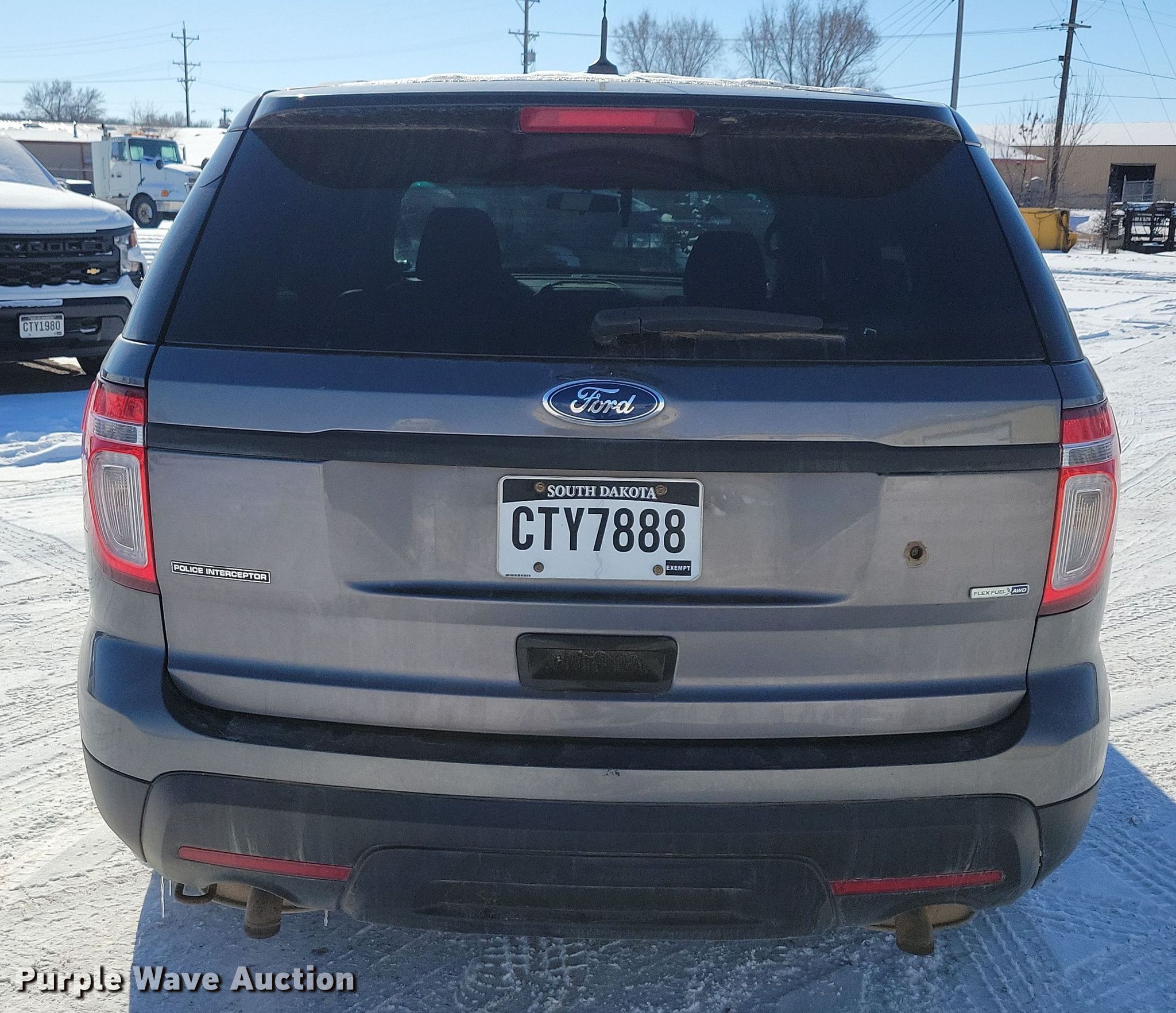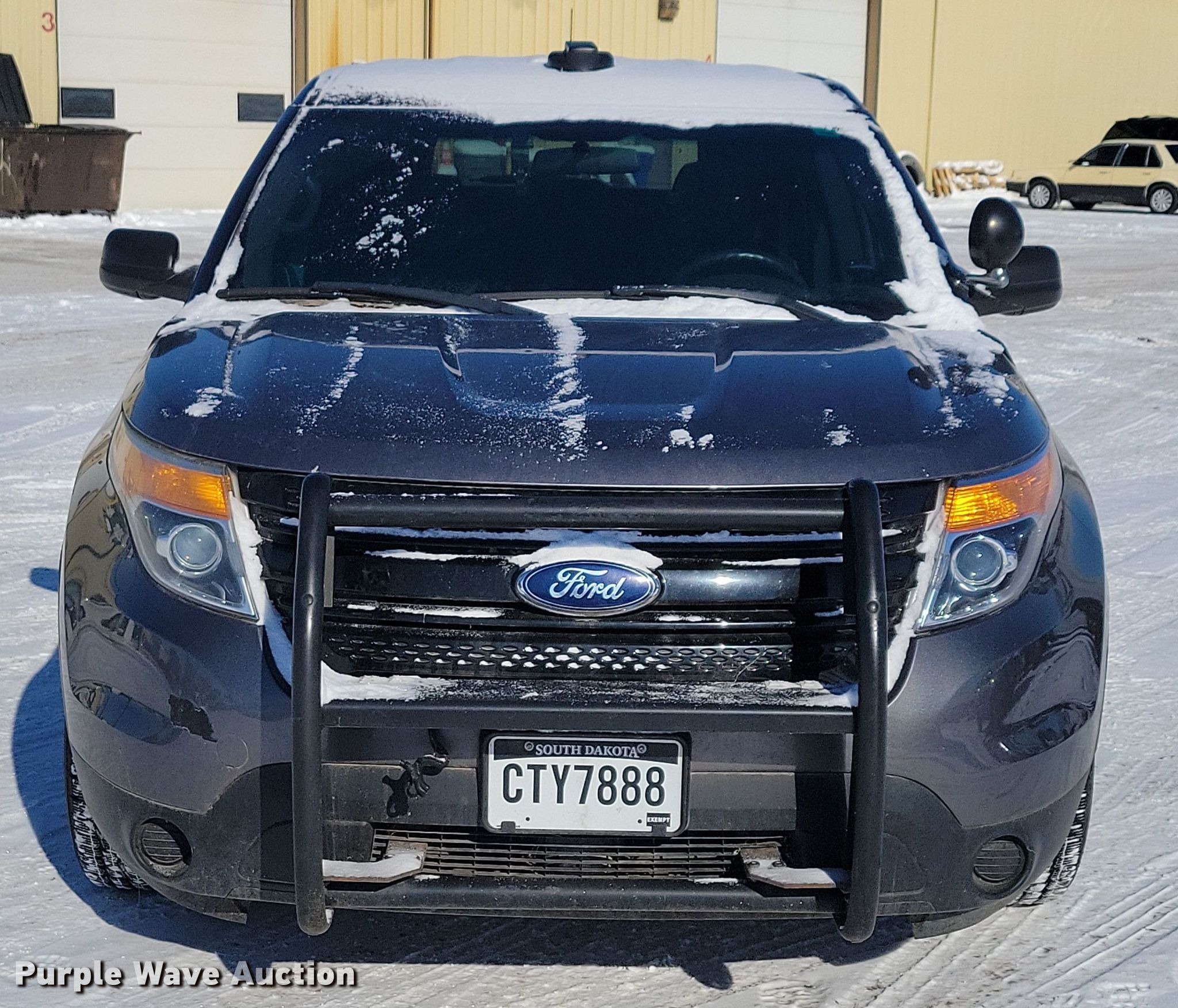 2014 Ford Explorer Police Interceptor SUV. Miles: 113,927 on odometer, Hours: 19,523 on meter, VIN: 1FM5K8AR8EGC02106. Engine Displacement: 3.7L V6 DOHC, Cylinders: 6, Fuel type: Gas. Transmission Automatic, Four wheel drive. Interior AC, Heat, Seat: Power driver, Heated mirrors, Power windows, Power locks, Cruise control. Tires Size: 245/55R18. Notes Possible door seal issues, Center console missing, Battery not included. South Dakota title. Title distribution may be delayed up to 14 days from verification of funds. City of Mitchell, SD. Mitchell, SD 57301