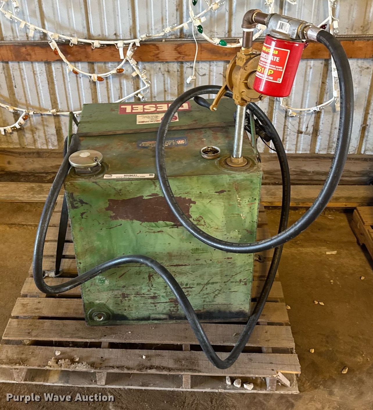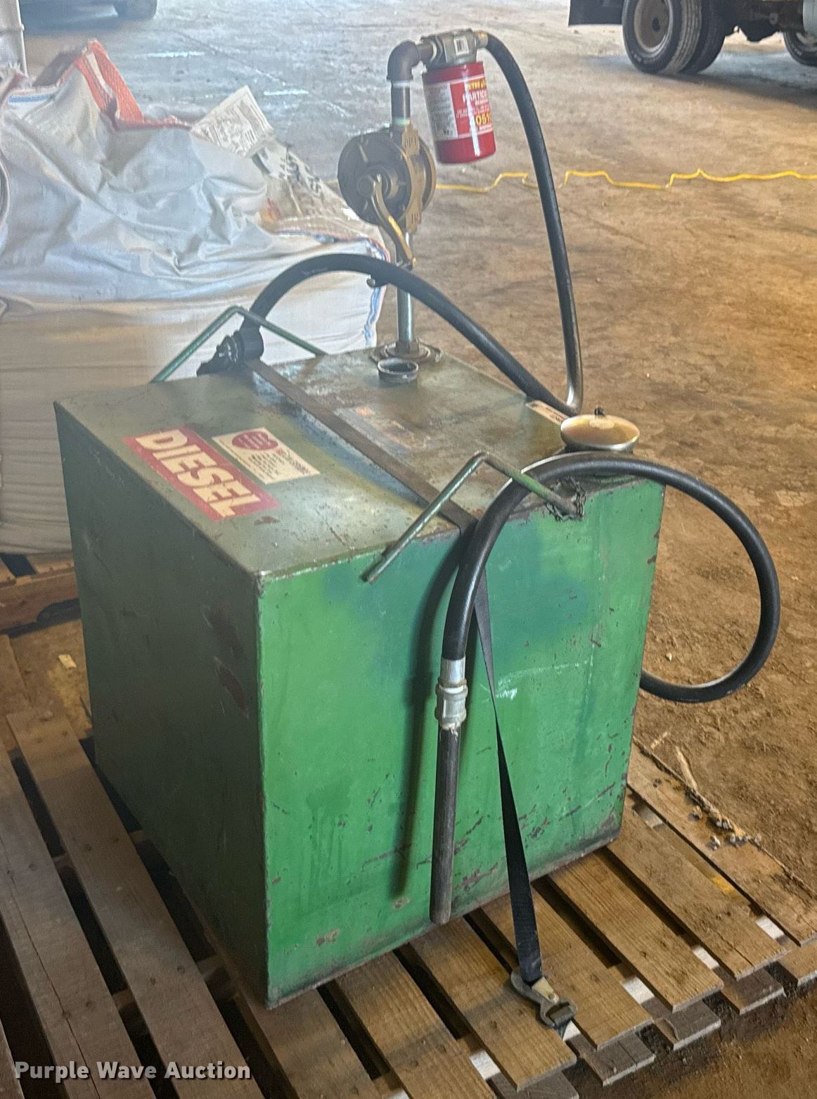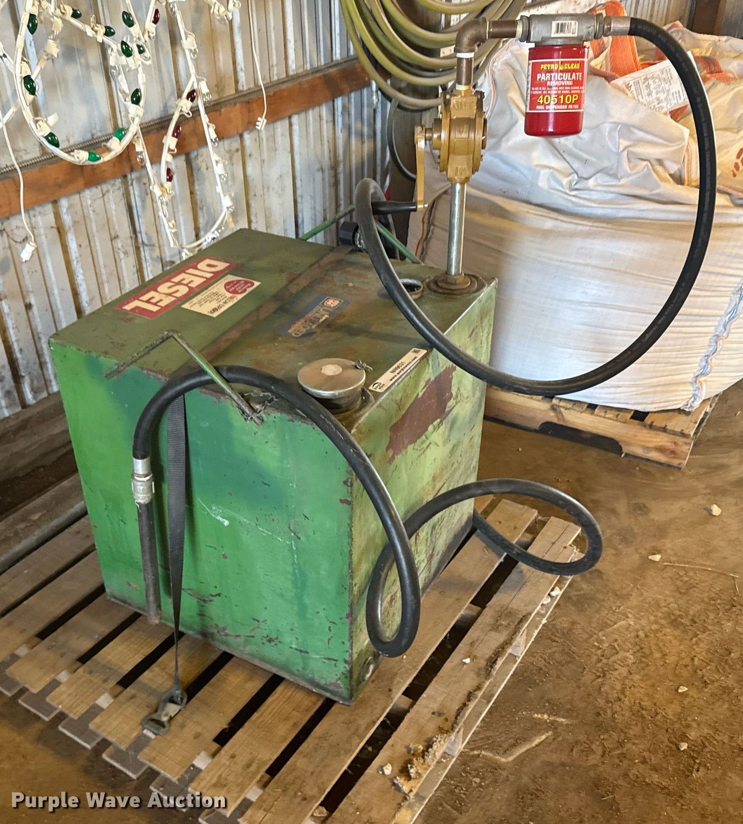 Purple Wave is selling a used Fuel and Lube in Kansas. This item is a Transfer tank with the following: Capacity: 50 gallons, Pump, Hose