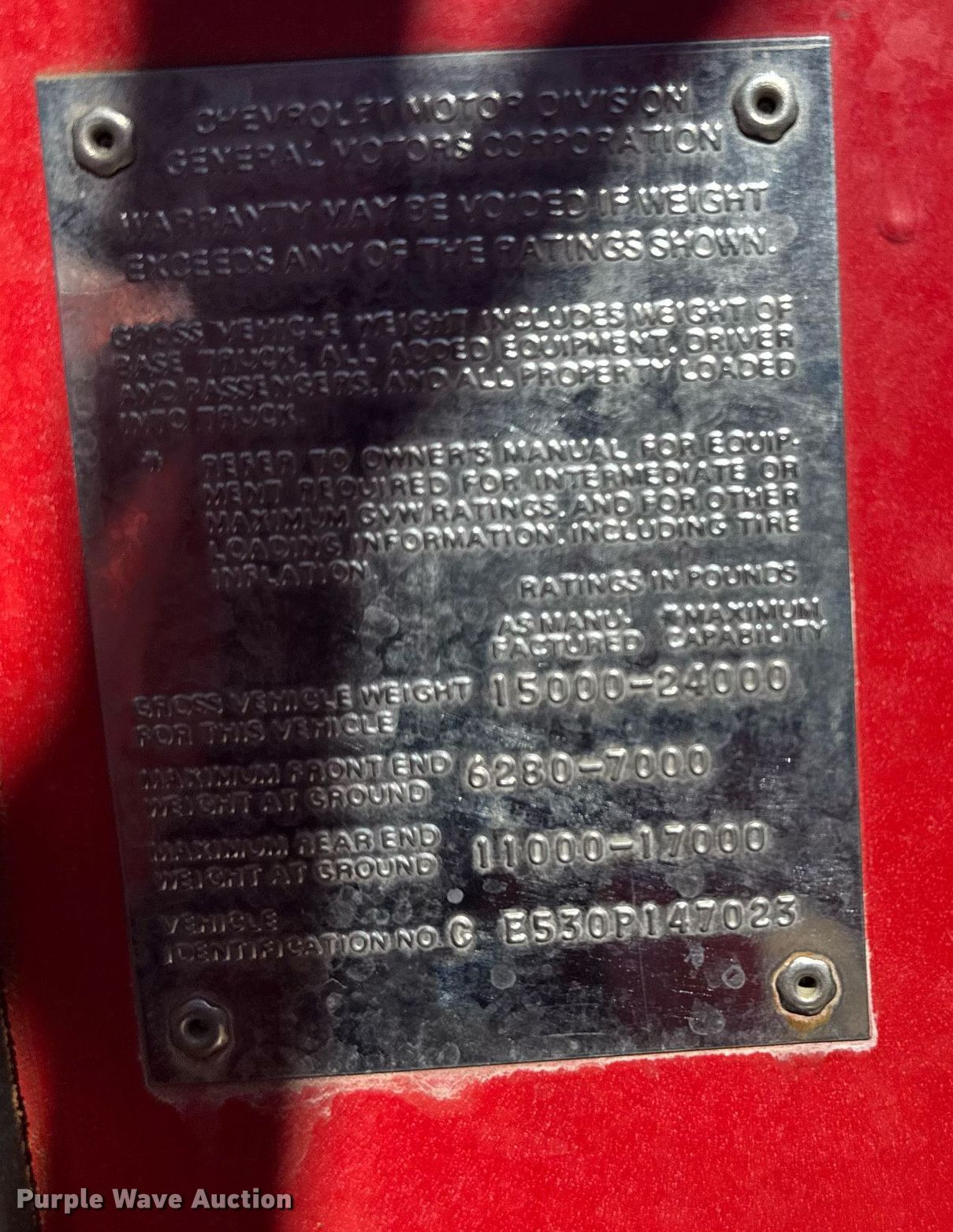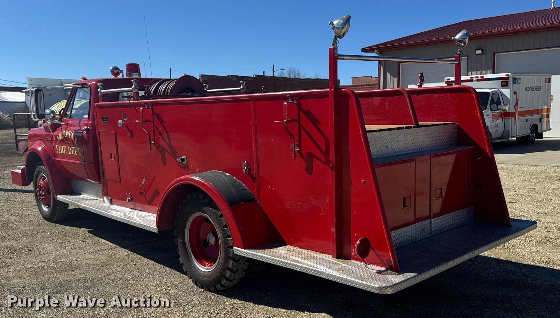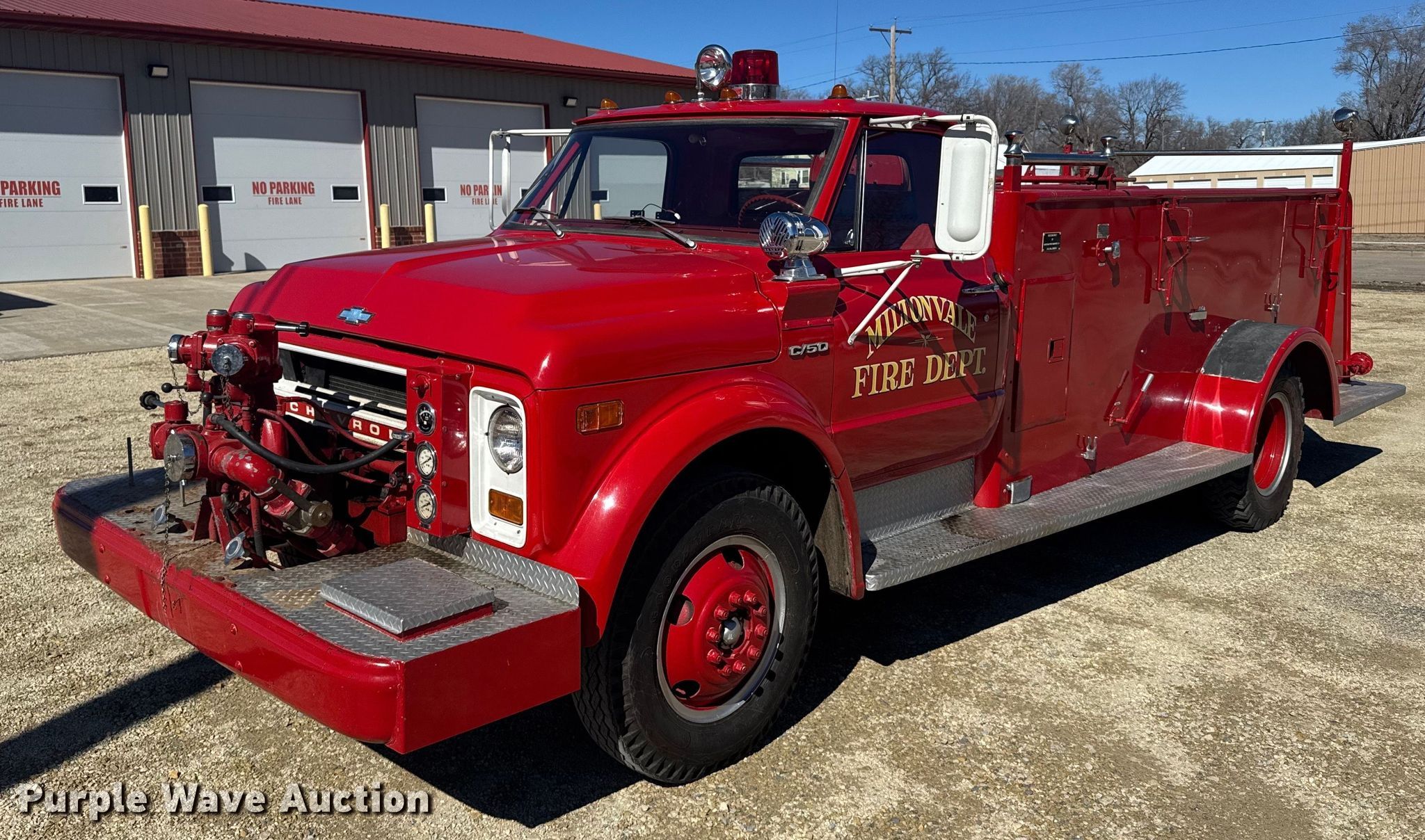 Purple Wave is selling a used Fire Truck or Emergency Vehicle in Kansas. This item is a 1970 Chevrolet C50 pumper fire truck with the following: Miles: 1,201 on odometer, VIN: CE530P147023