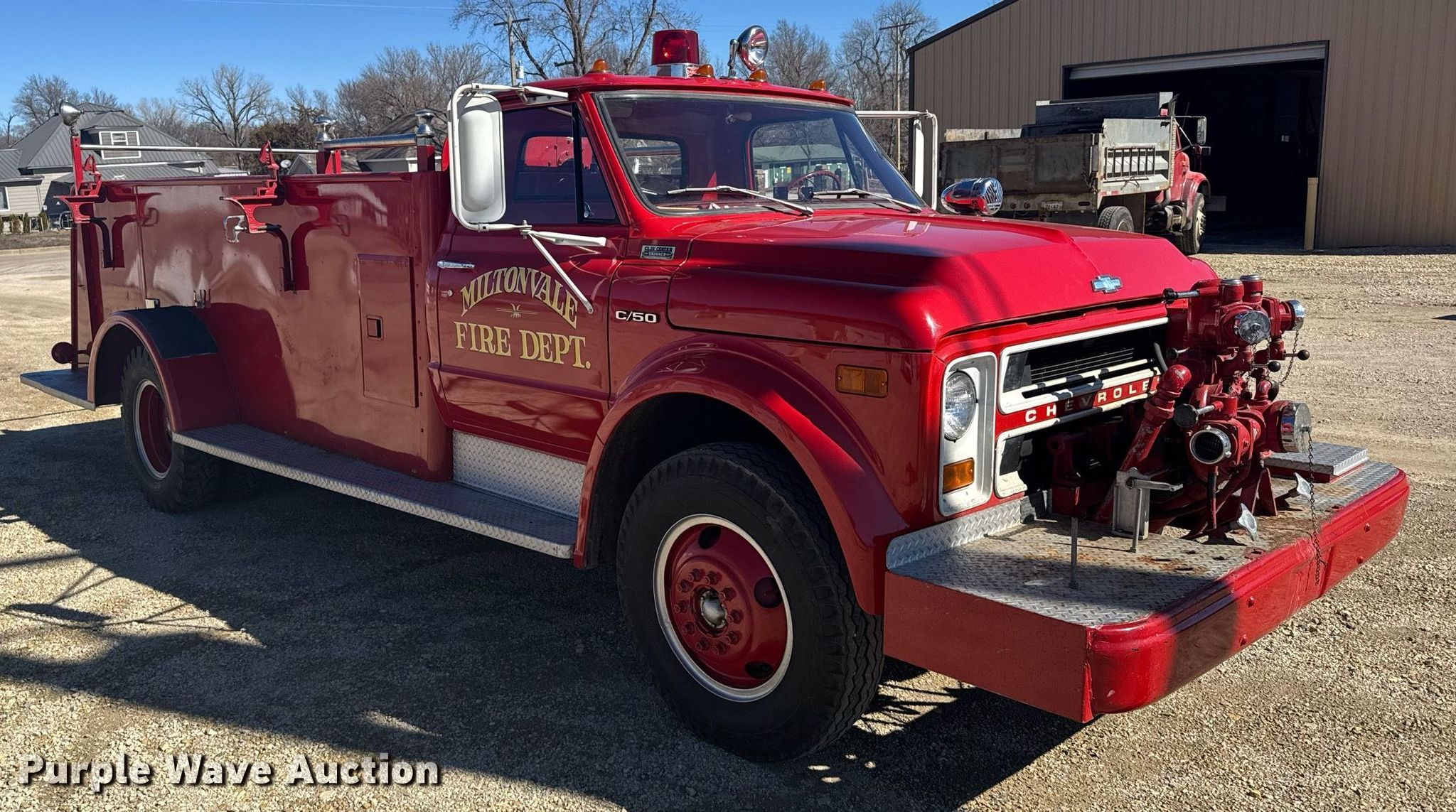 1970 Chevrolet C50 pumper fire truck has sold in Miltonvale, Kansas for $8470. Item NN9635 sold on April 1st, 2025.