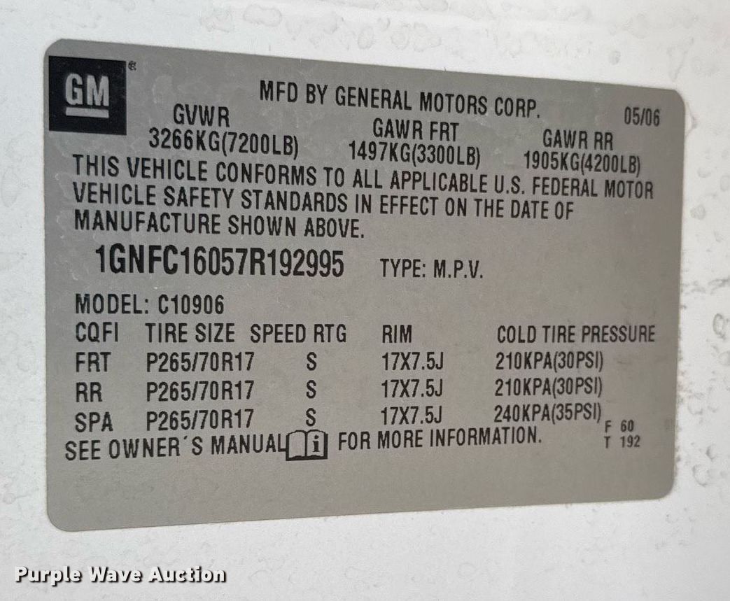 Purple Wave is selling a used Passenger Vehicle in Kansas. This item is a 2007 Chevrolet Suburban 1500 SUV with the following: Miles: 187,691 on odometer, VIN: 1GNFC16057R192995