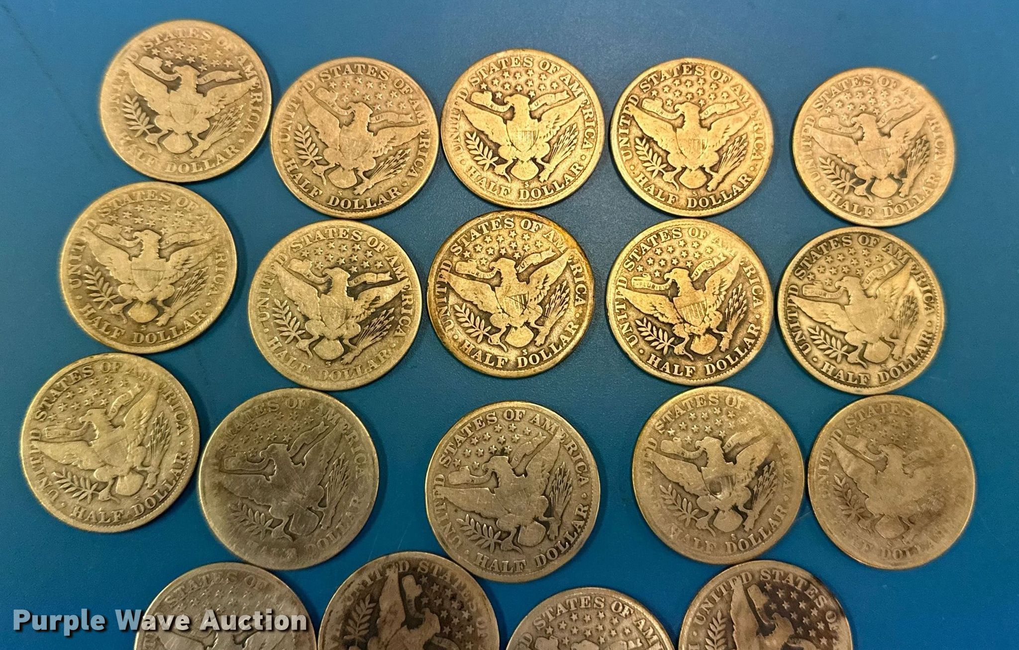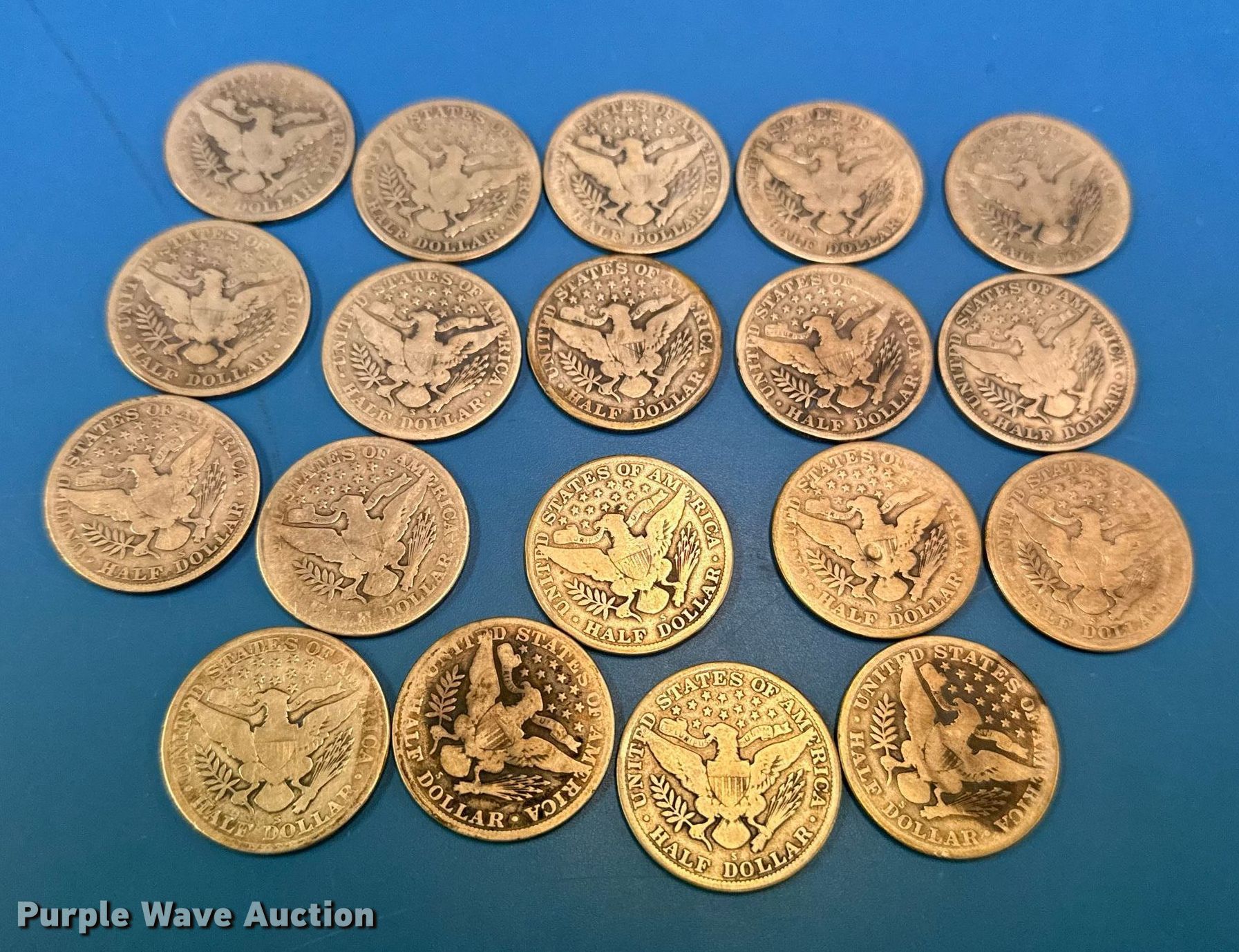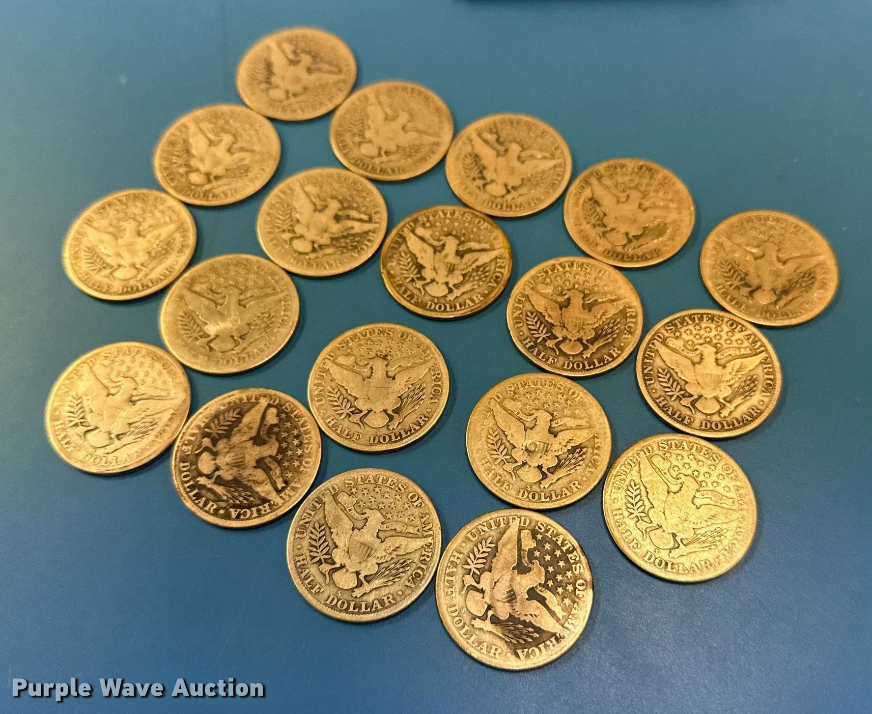 This (19) 1915 Barber half dollar silver coins will sell to the highest bidder regardless of price.