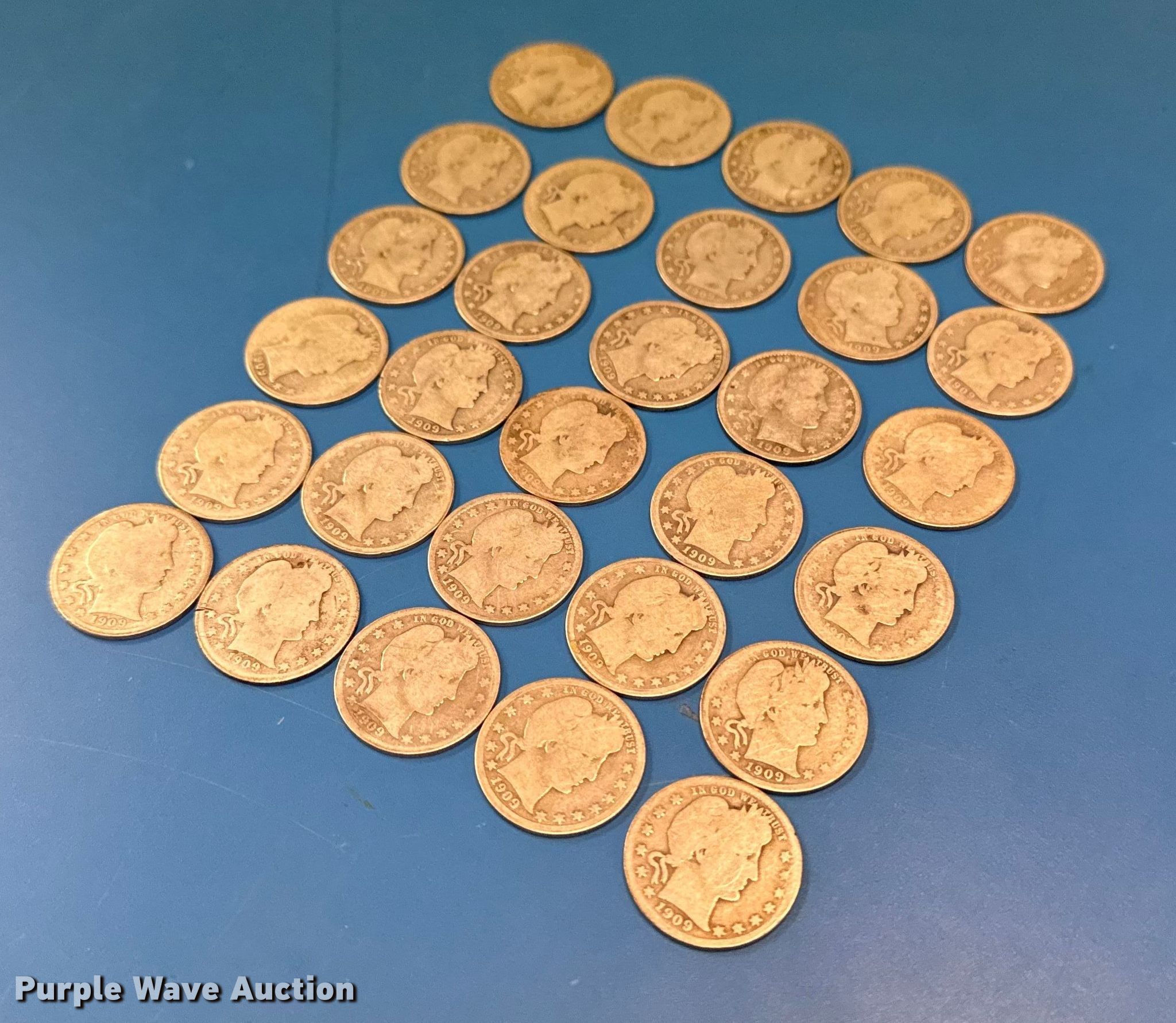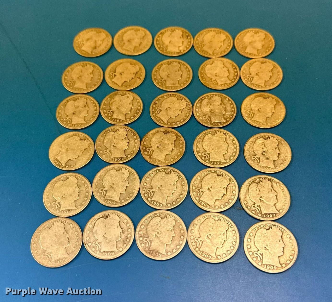 (30) 1909 Barber quarter dollar silver coins | SOLD! April 01 Government Auction