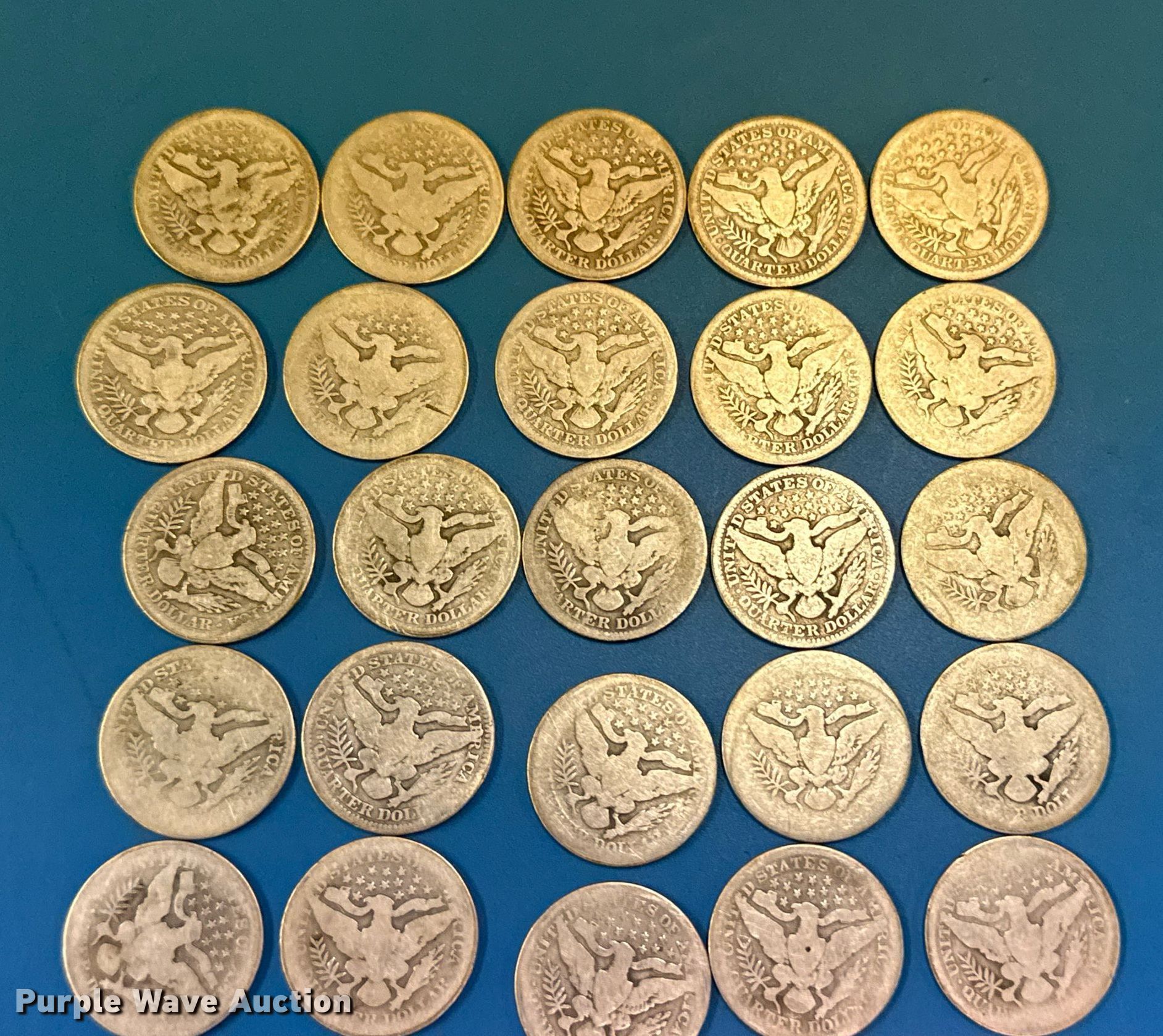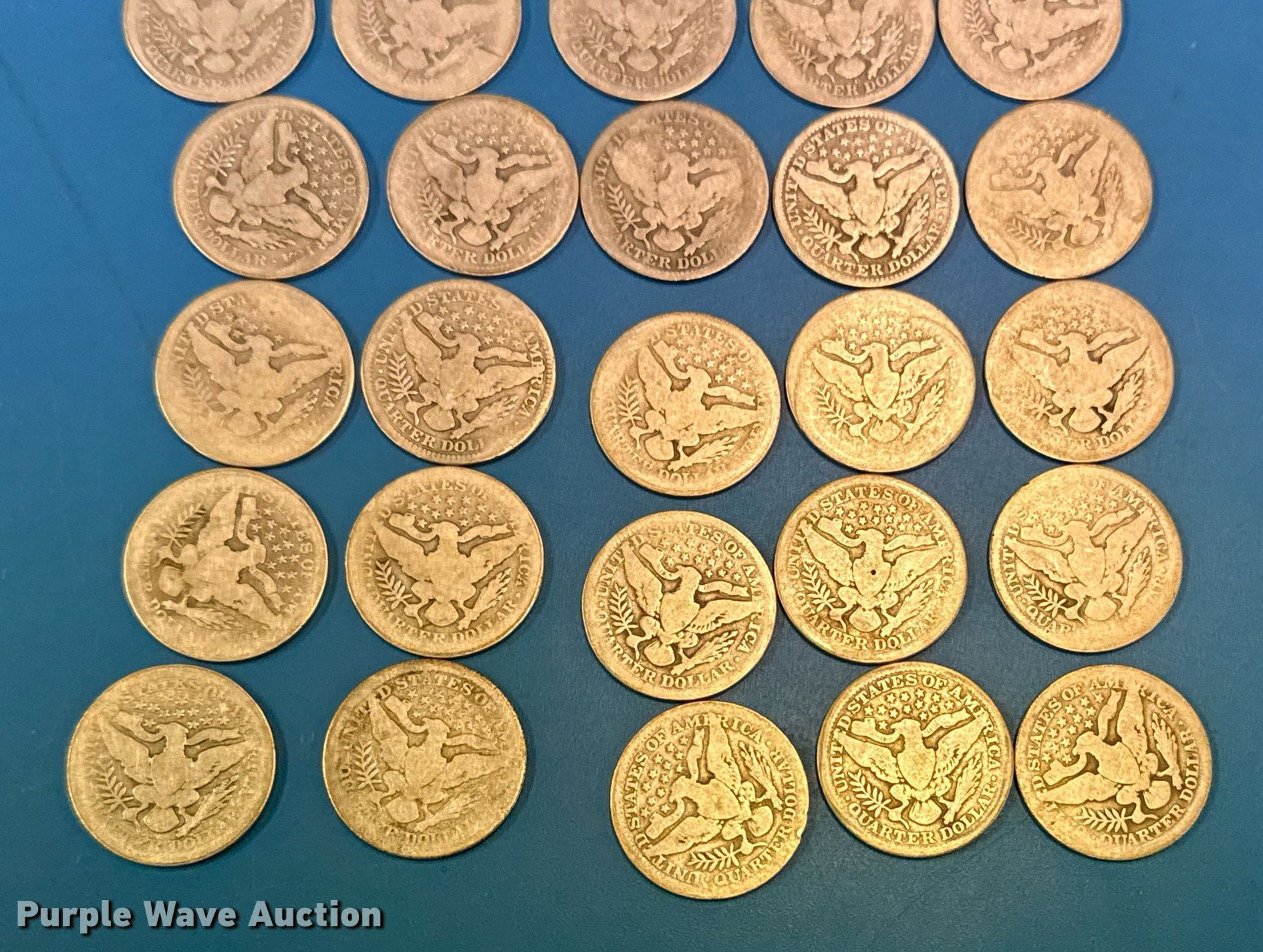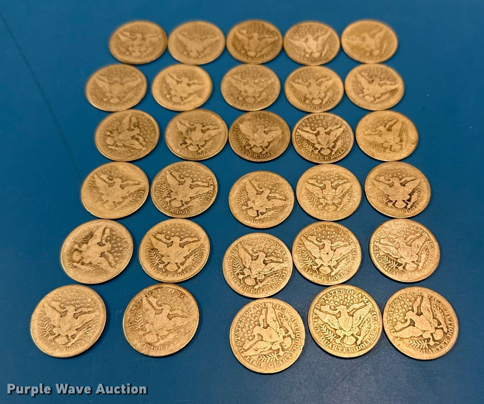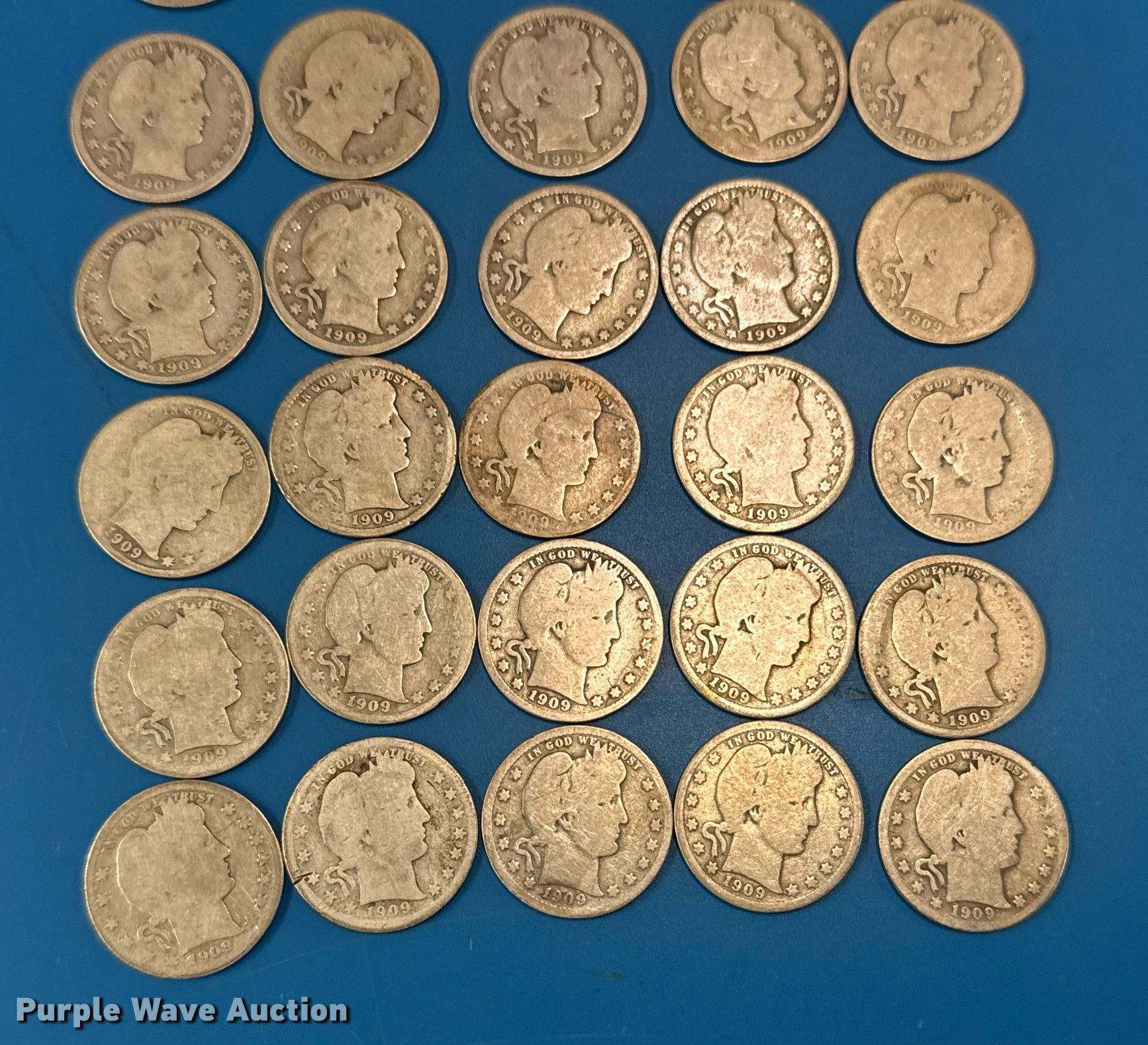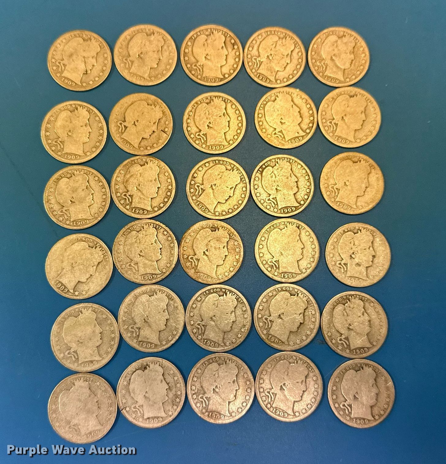 • NO9672 image for item NO9672 (30) 1909 Barber quarter dollar silver coins