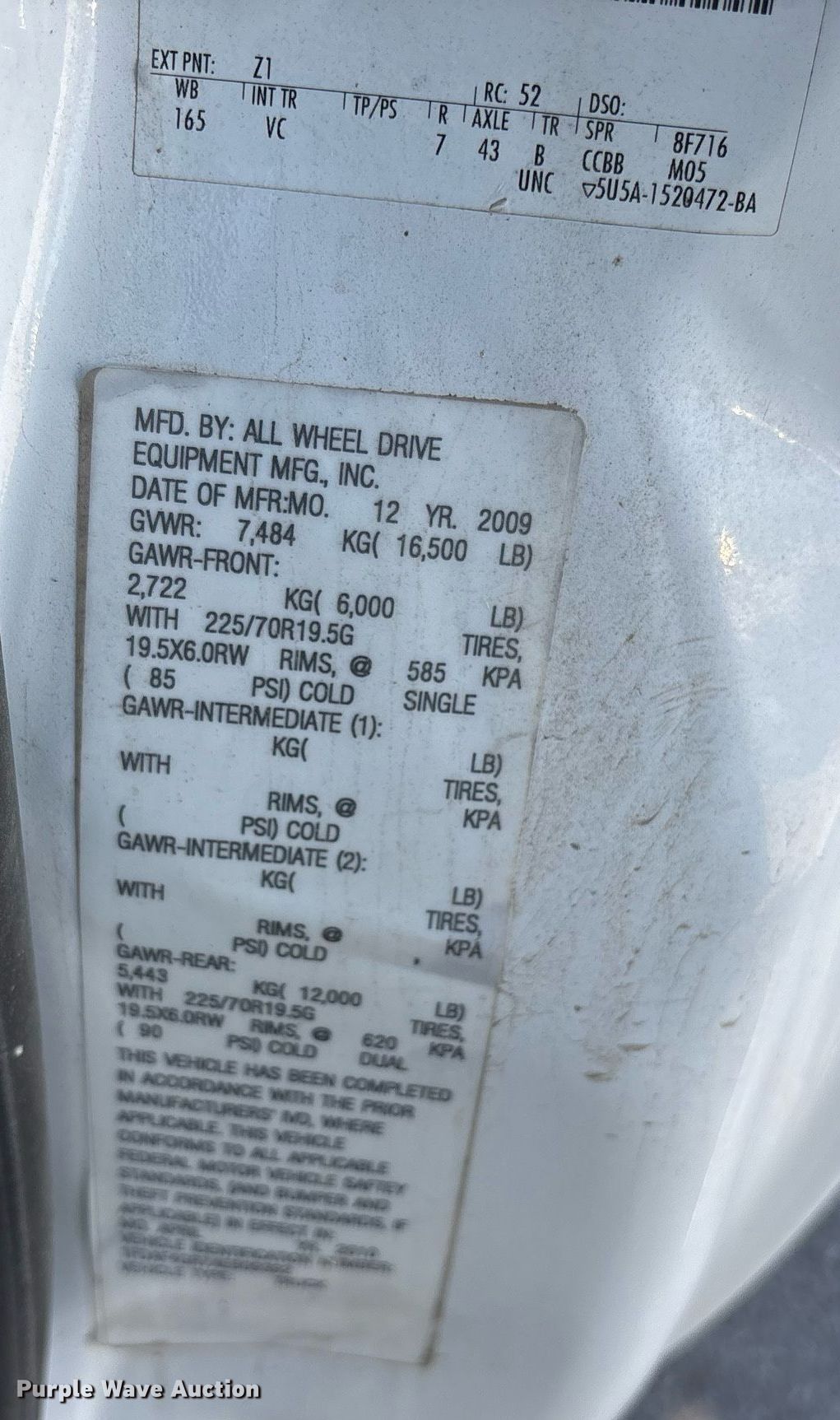 • Wheelbase: 165"