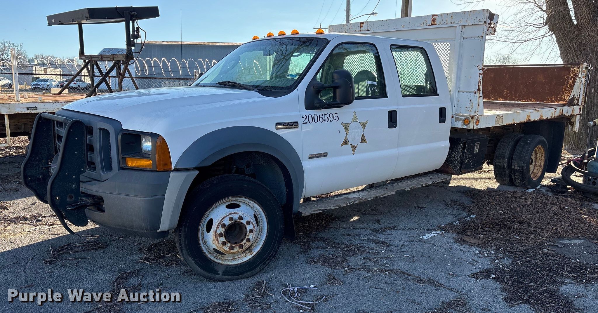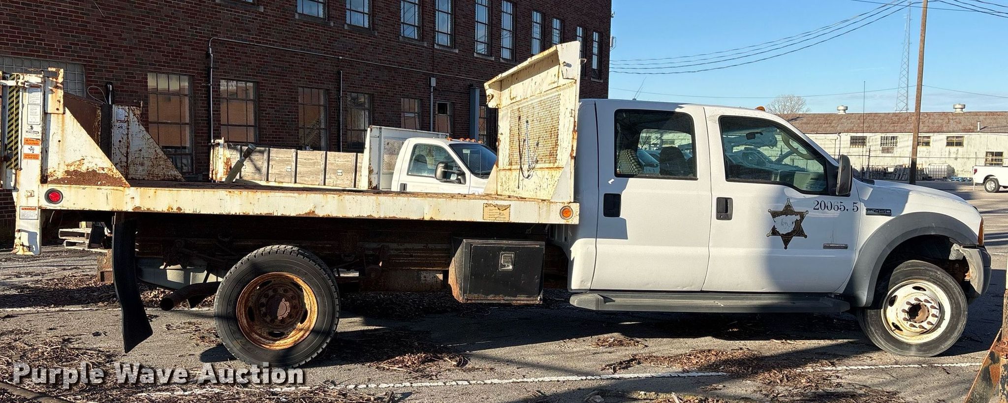 Purple Wave is selling a used Flat Bed Truck in Oklahoma. This item is a 2006 Ford F450 Super Duty Crew Cab dump flatbed truck with the following: Miles: 94,949 on odometer, VIN: 1FDXW46P36ED07257, Unit #: 606