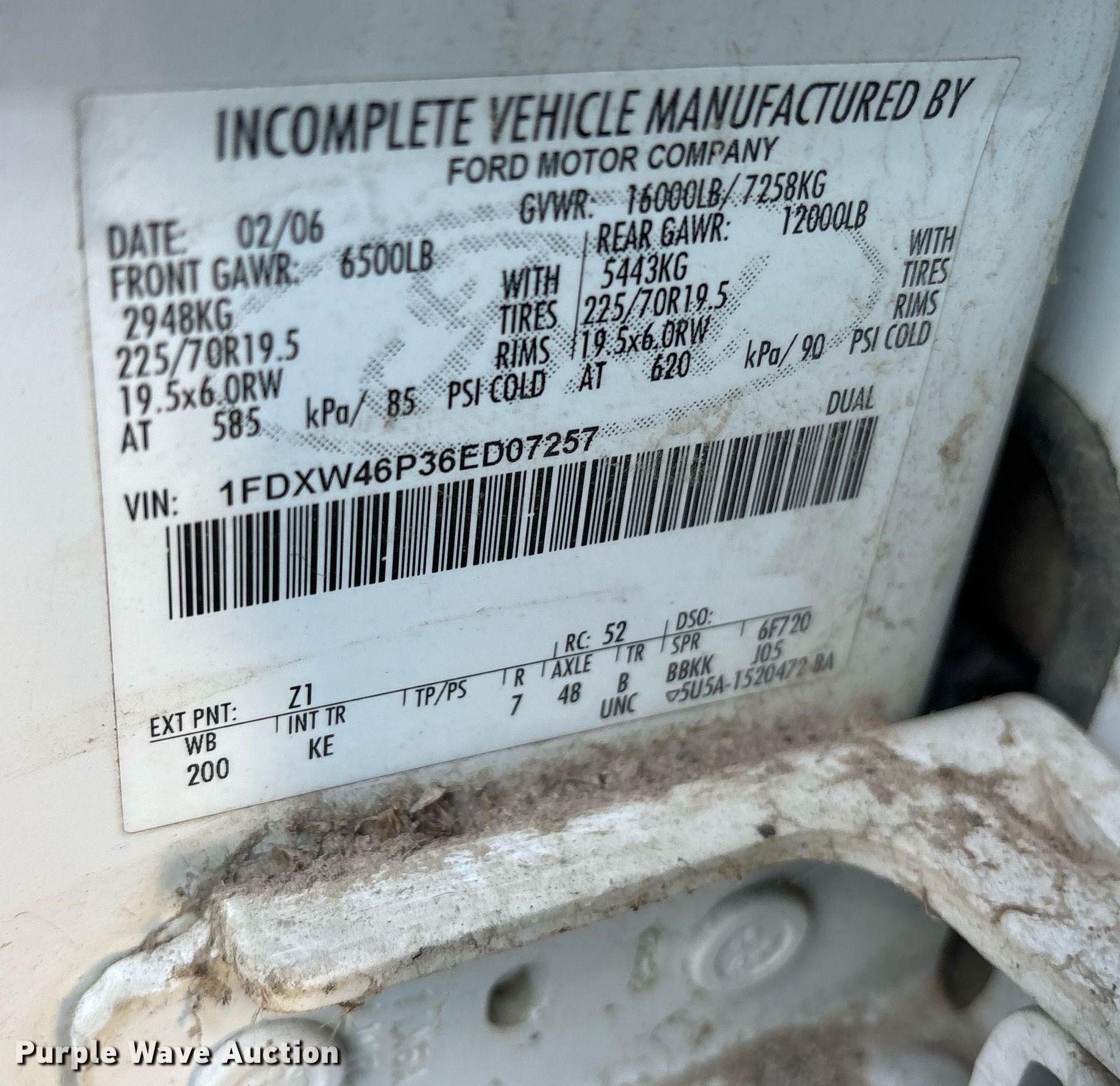 - VIN: 1FDXW46P36ED07257