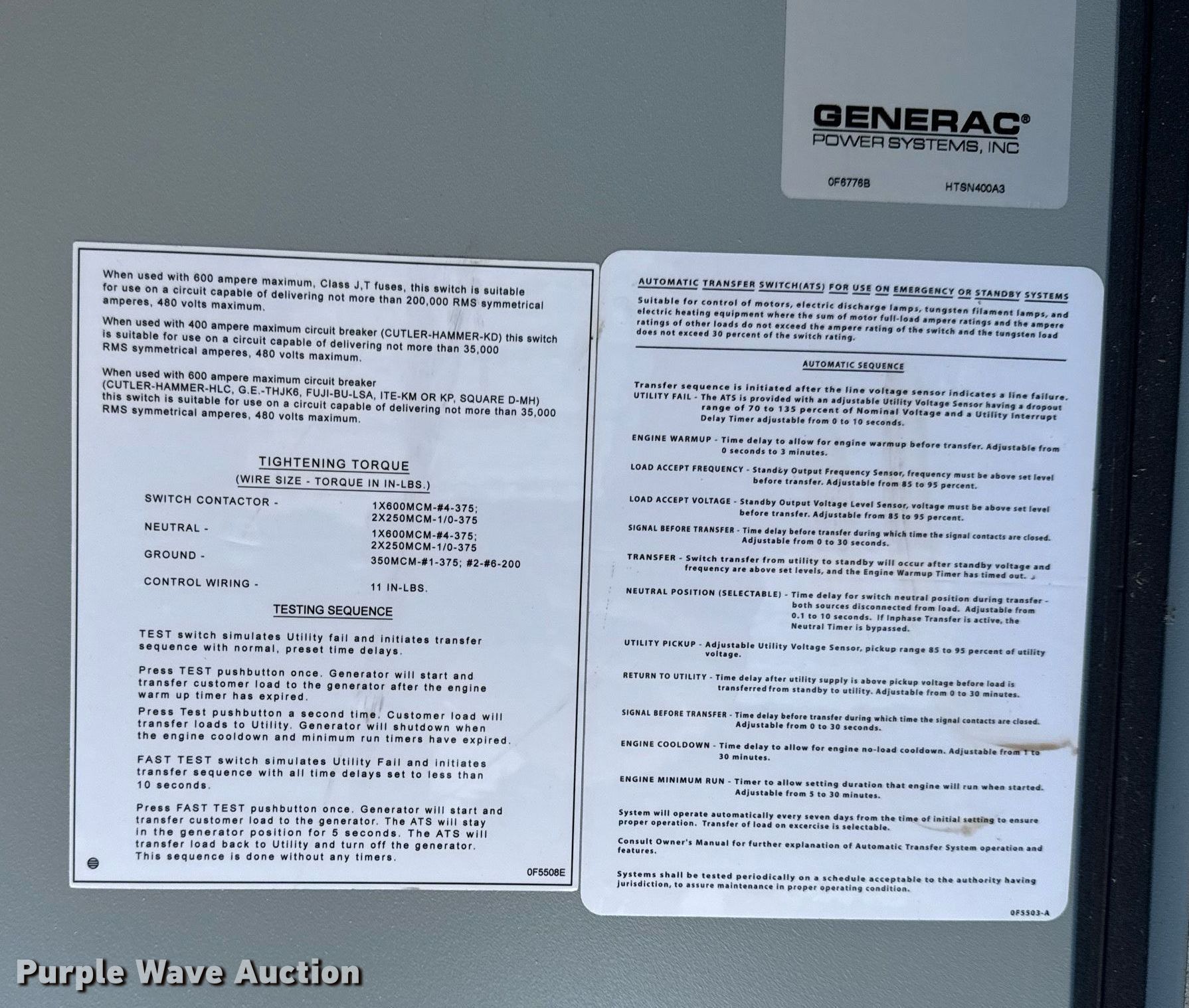 Purple Wave is selling a used Electronics in Oklahoma. This item is a (2) Generac transfer switches with the following: Unit #: 308