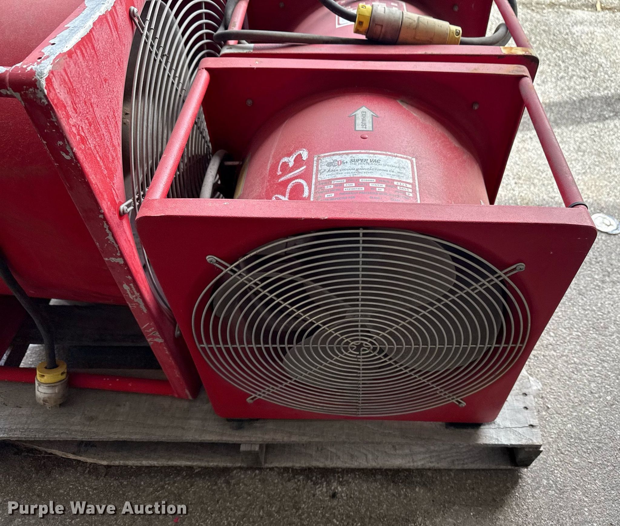 Purple Wave is selling a used Portable Heater or Fan in Oklahoma. This item is a (5) Super Vac fans with the following: (3) Super Vac P164SE fans, Super Vac F164M fan, Super Vac fan, Unit #: 313