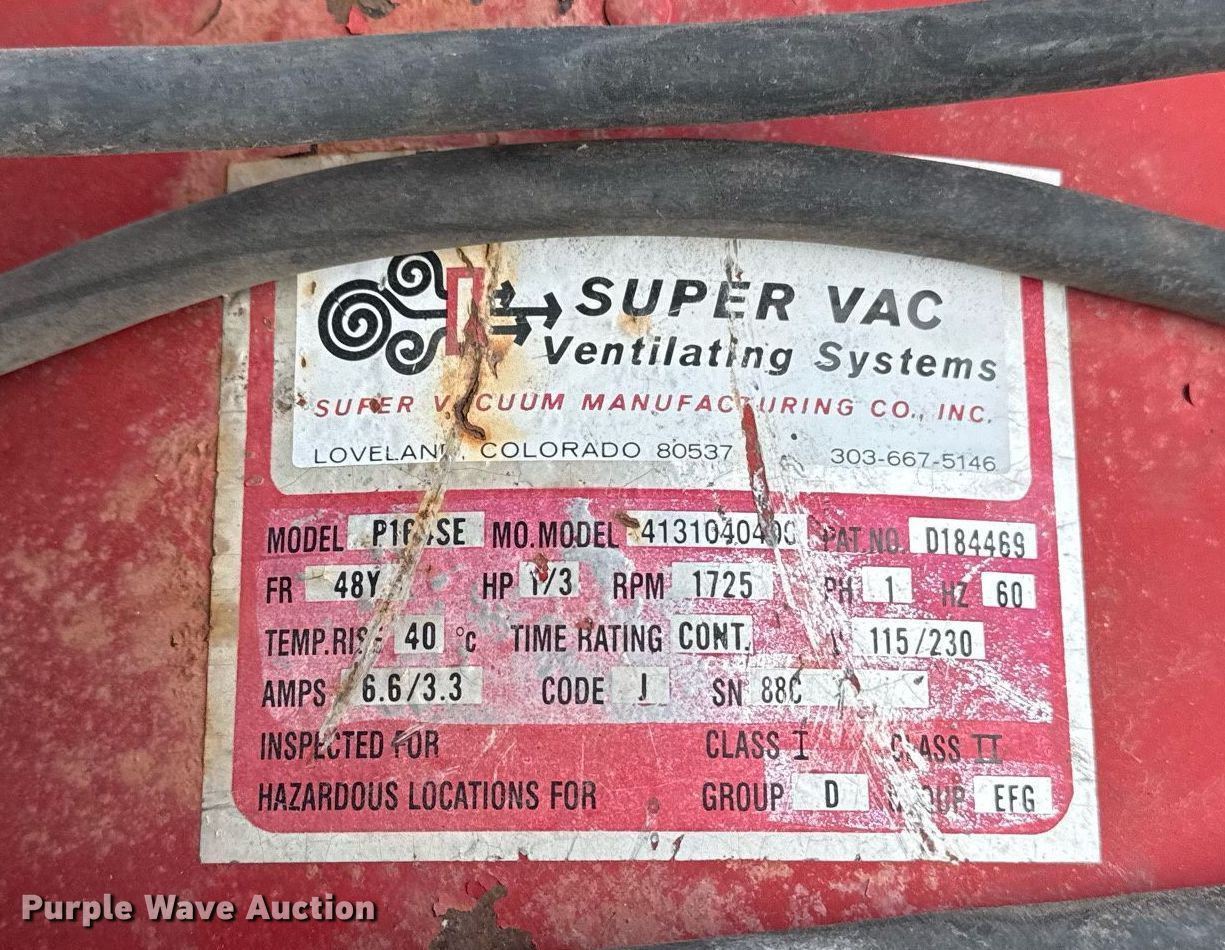 (5) Super Vac fans. (3) Super Vac P164SE fans, Super Vac F164M fan, Super Vac fan, Unit #: 313. City of Tulsa. 108 N Trenton Ave. Tulsa, OK 74120