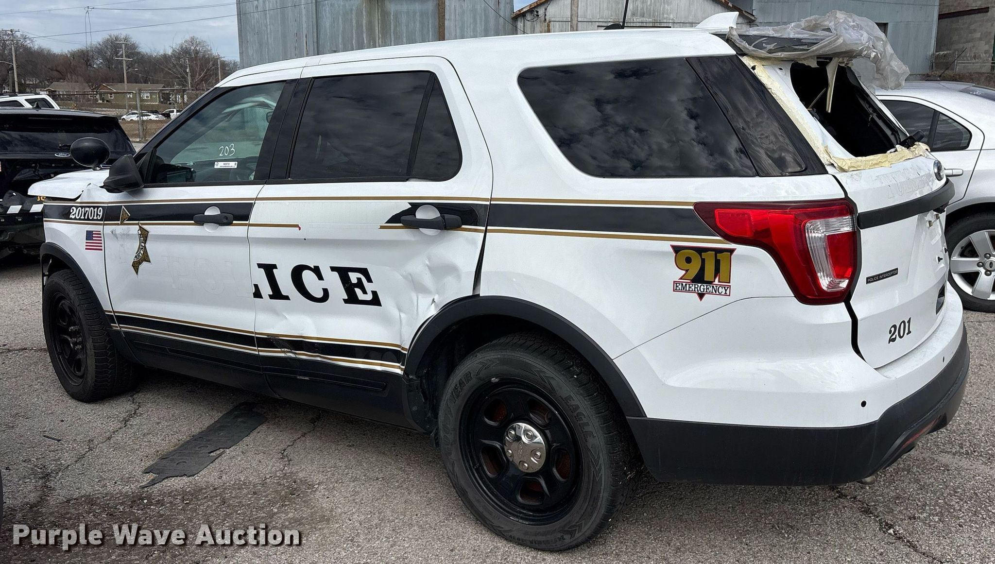 2017 Ford Explorer Police Interceptor SUV. Miles: Unknown, VIN: 1FM5K8AR1HGB71818, Unit #: 203. Engine Displacement: 3.7L V6 DOHC, Cylinders: 6, Fuel type: Gas. Transmission Automatic, All wheel drive. Interior AC, Heat, Seat: Power driver, Power windows, Power locks, Cruise control, Backup camera. Tires Size: 245/55R18. Notes Dead battery, Collision damage, Center console missing, Non-operational unit Unit must be towed or hauled. Law enforcement and emergency equipment will be removed prior to auction. Includes but not limited to decals, two-way radio, spotlight, emergency lights and siren, firearm rack, and camera.. Oklahoma title. Mileage has not been verified. Odometer discrepancy will be marked on the title. Seller is a government entity who will be assigning and distributing the title. Please contact the seller for distribution questions. Title distribution may be delayed up to 30 days from verification of funds. City of Tulsa. 108 N Trenton Ave. Tulsa, OK 74120