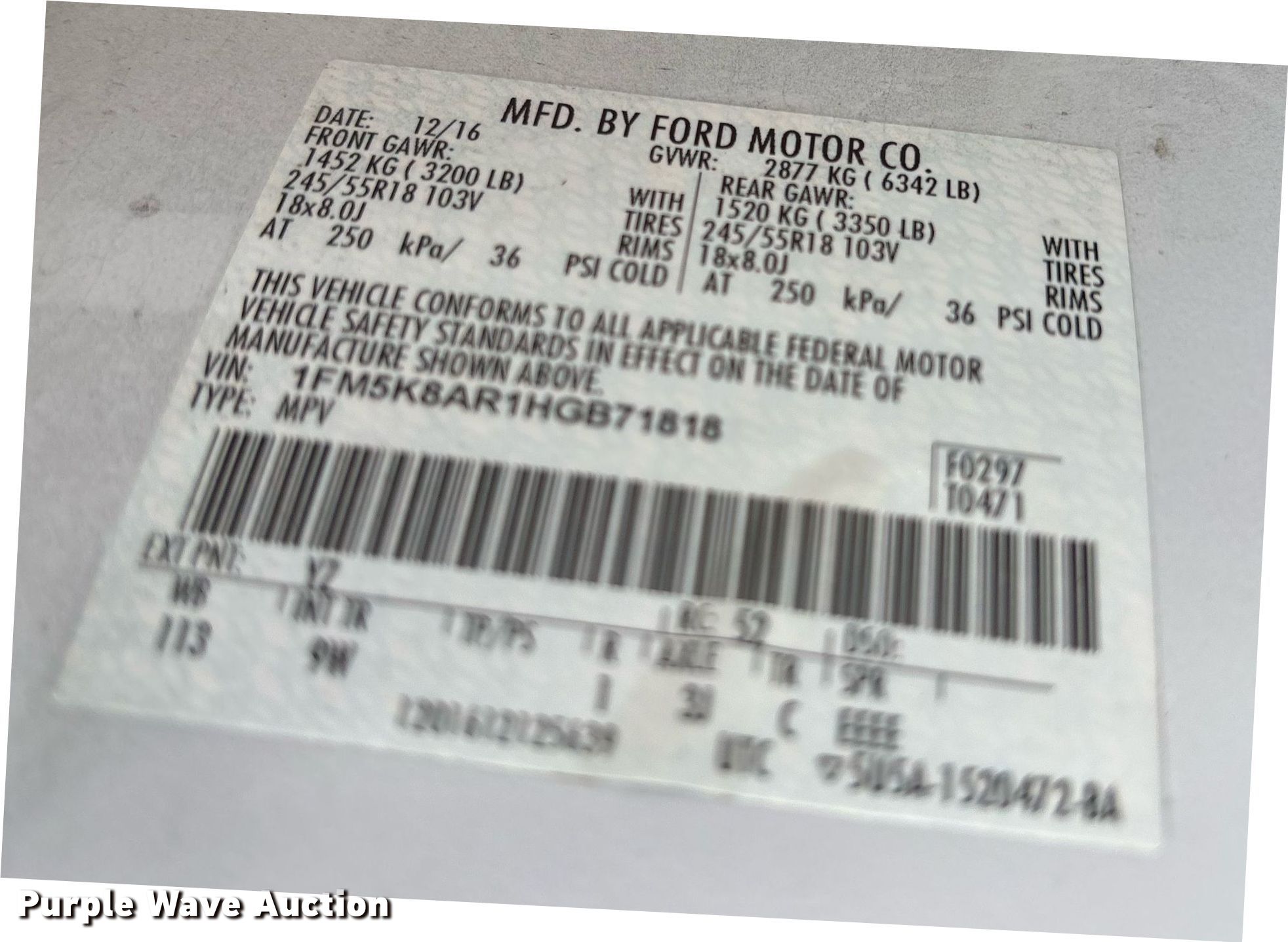• VIN: 1FM5K8AR1HGB71818