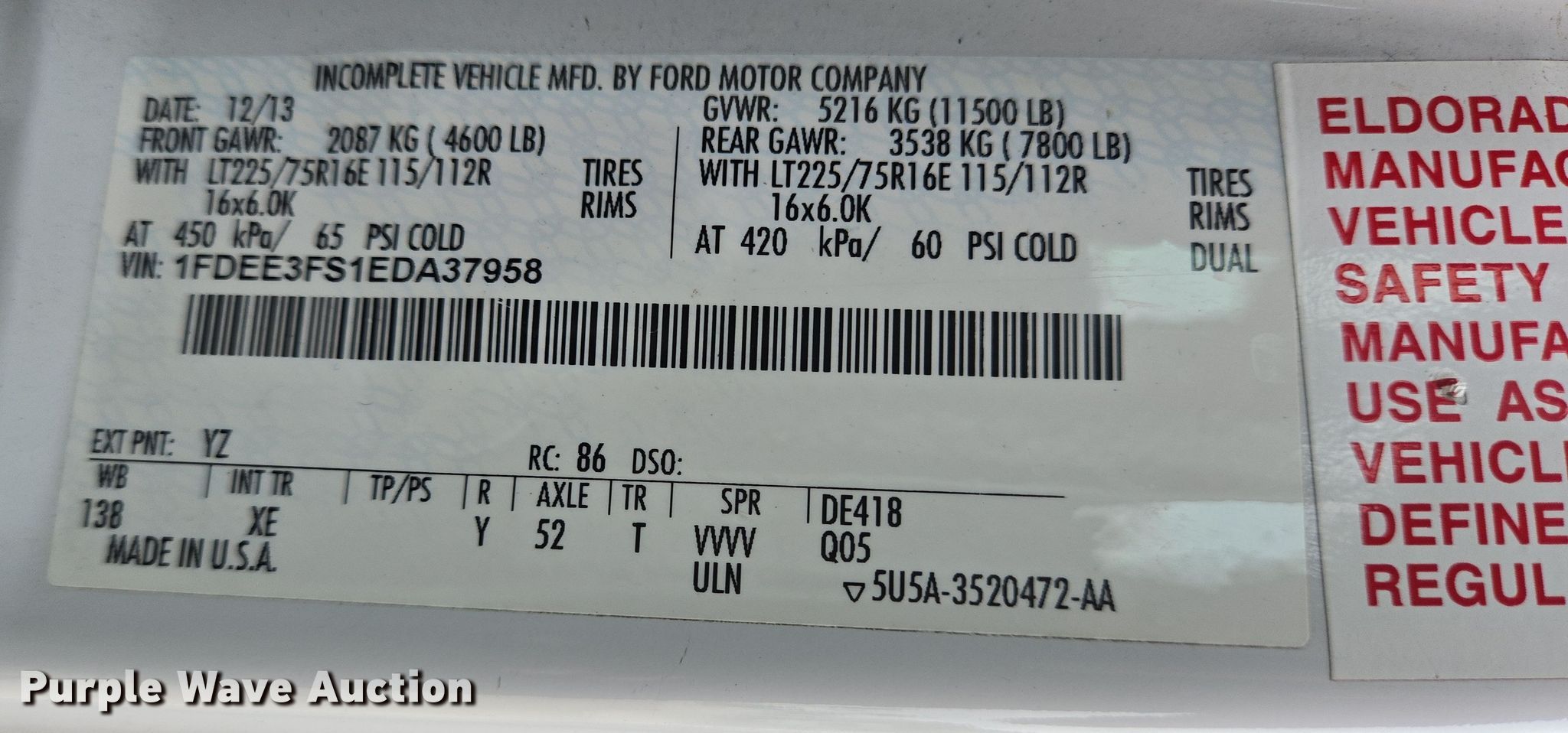 • VIN: 1FDEE3FS1EDA37958