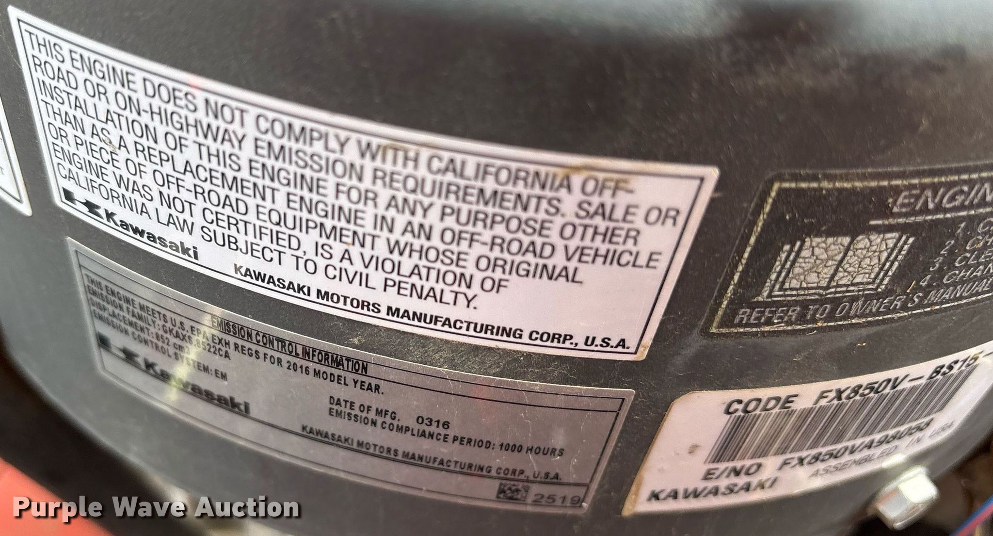 2008 Bad Boy Z 26HP Pro Series ZTR lawn mower. Hours: 334 on meter, Cutting width: 60", Serial: BBL6026KA02082085. Engine Kawasaki FX850V, Displacement: 850 cc, Cylinders: 2, Fuel type: Gas, HP: 26. Transmission Hydrostatic. Tires Front: 13x6.50-6NHS, Rear: 24x12.00-12NHS. Notes Dead battery, Non-operational unit. City of Hugo. Hugo, OK 74743