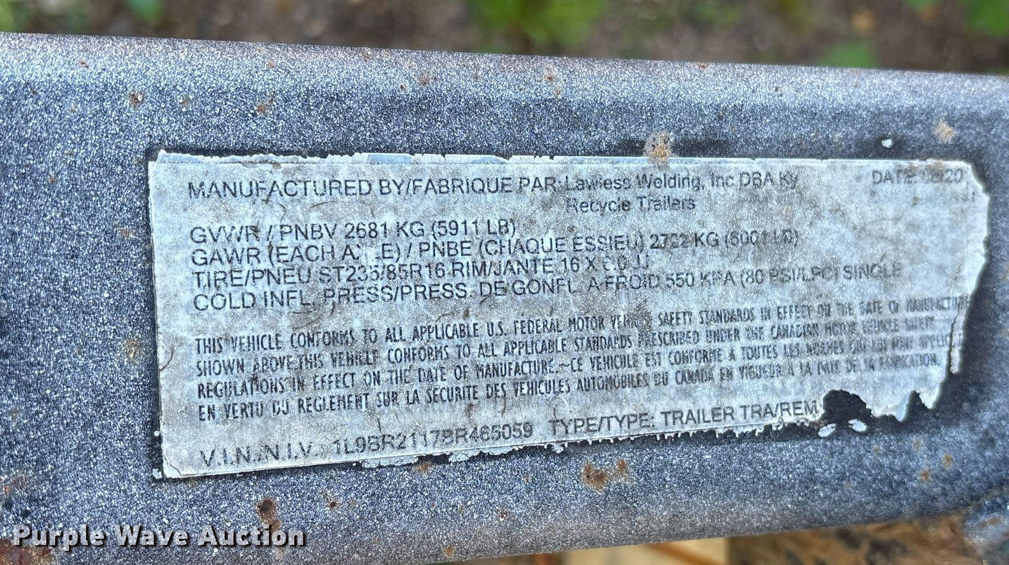 Purple Wave is selling a used Trailer Other in Texas. This item is a 2011 Ky Recycle Trailers recycle trailer with the following: VIN: 1L9BR2117BR465059, Unit #: 59