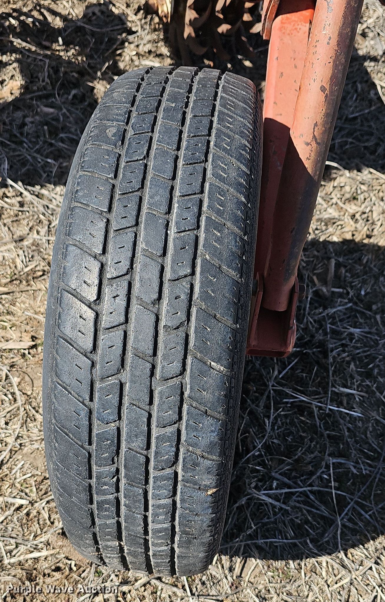 Lilliston Lehman row crop cultivator. Overall width: 21'. Features Number of rows: 9, Row spacing: 30", Shanks, Rolling baskets, Hitch: Three point. Tires Tire size: 205/70R15. Notes (3) rolling baskets missing. L K M FARMS. Scandia, KS 66966