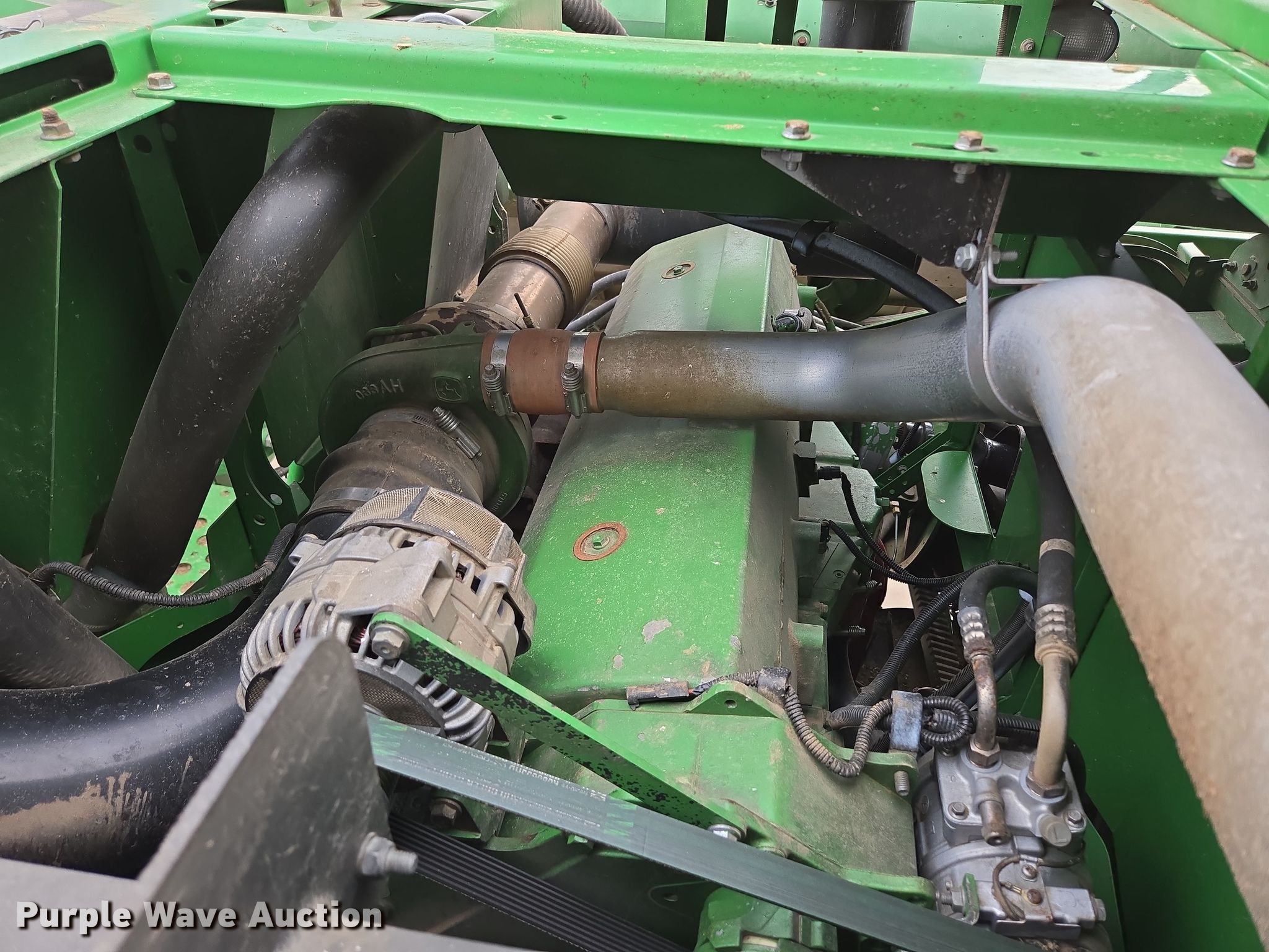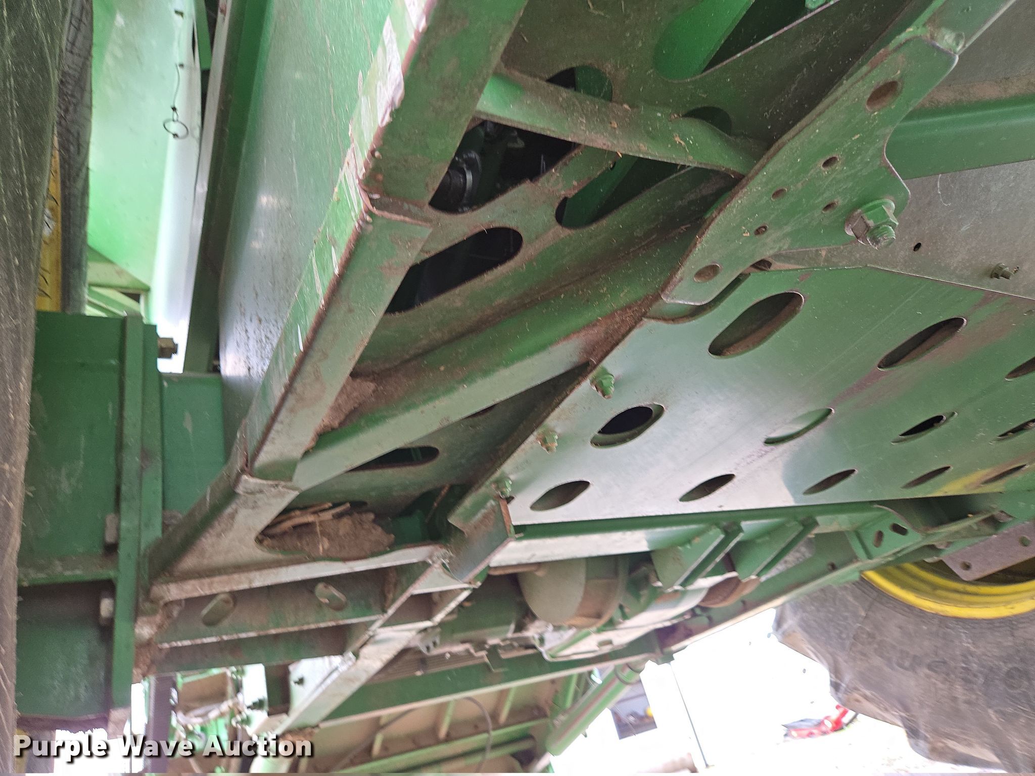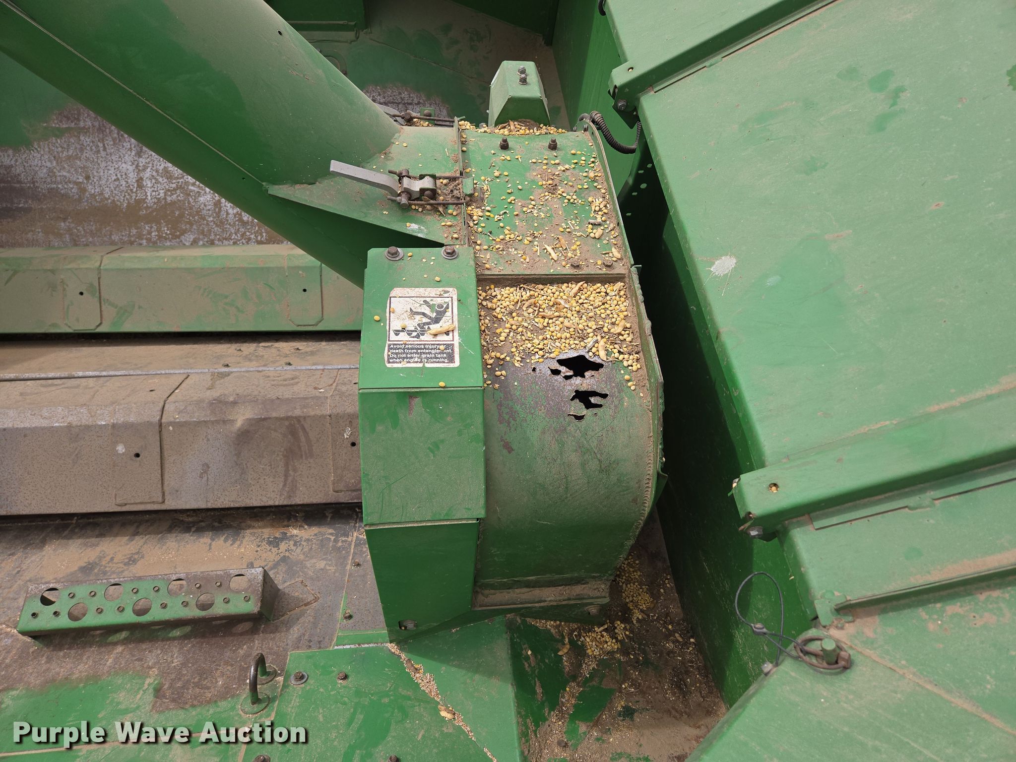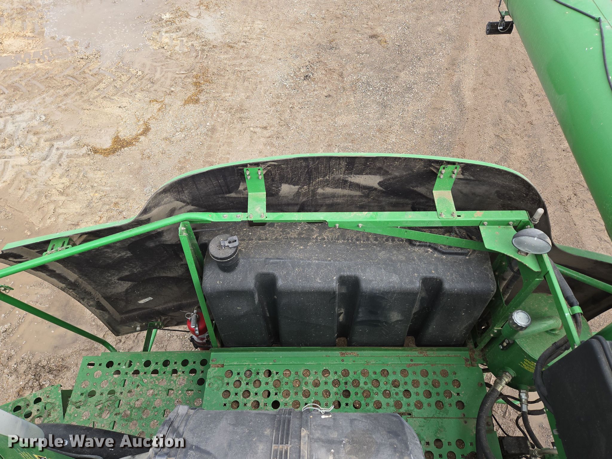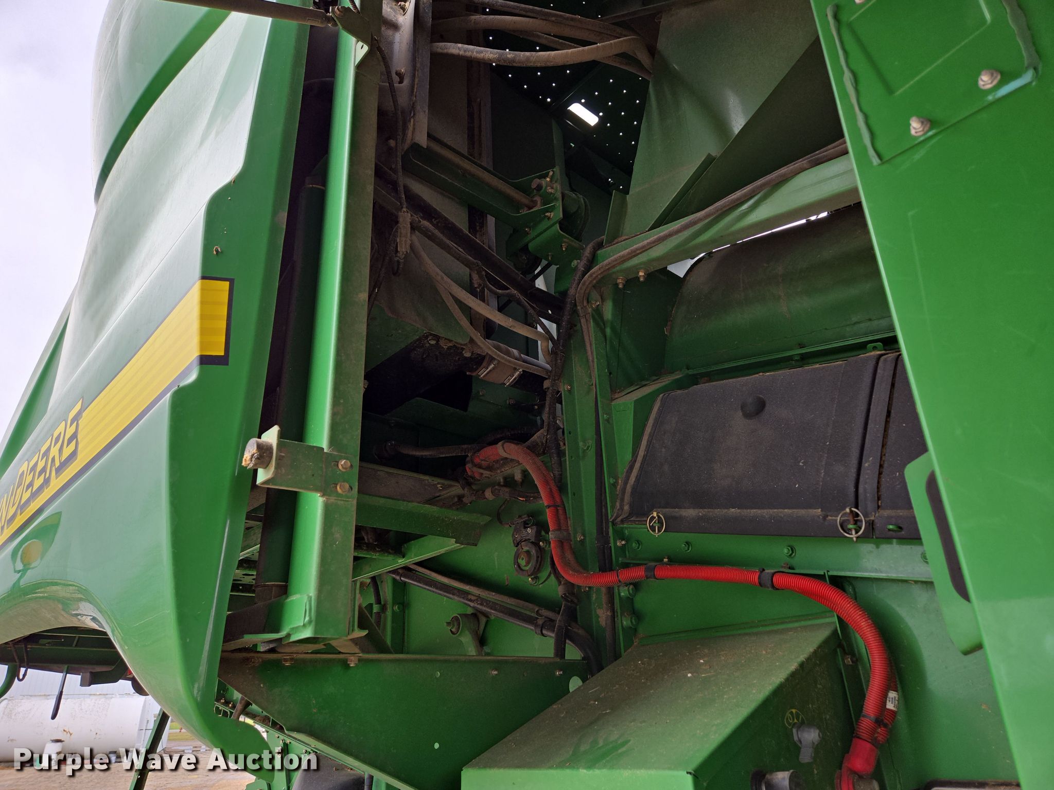 2007 John Deere 9860 STS RWA combine. Engine hours: 4,147 on meter, Separator hours: 2,783 on meter, Serial: H09860S720802. Engine John Deere 6125HH006B C, Serial: R525368, Displacement: 12.5L, Cylinders: 6, Fuel type: Diesel, HP: 375. Transmission Hydrostatic. Operators station AC, Heat, Auto steer John Deere AutoTrac Universal Steering Kit 200. Features Single point header coupler, Feederhouse: Lateral tilt, Variable speed, Reverser, Concaves: Round, Chaff spreader, Straw chopper, Power tailboard, Bin: Extensions, Unloading auger length: 24'. Tires Front: 650/85R38, Rear: 620/75R26, Duals. Notes GPS receiver missing, Grain elevator housing damaged. Jennings Farms. Quapaw, OK 74363