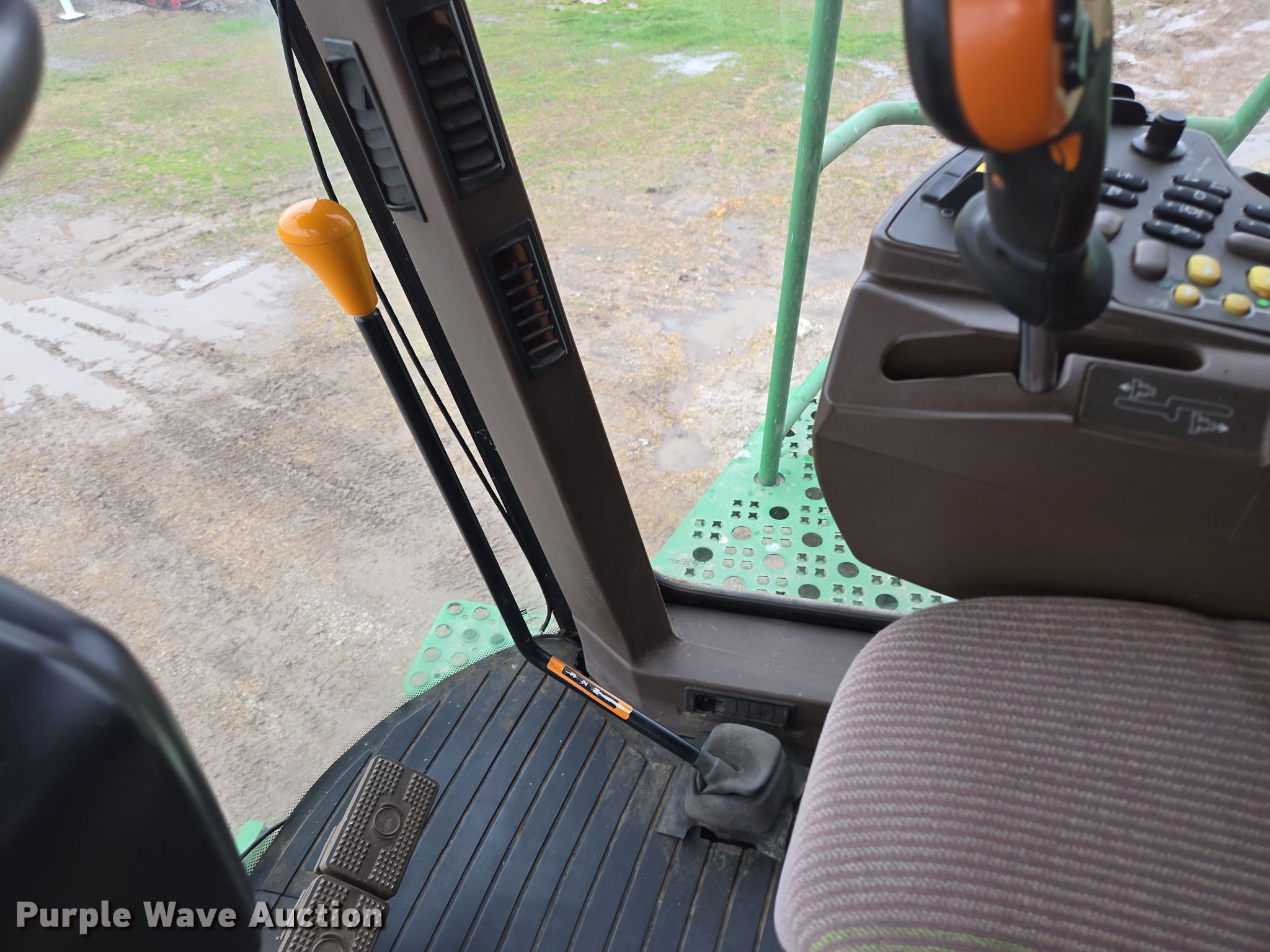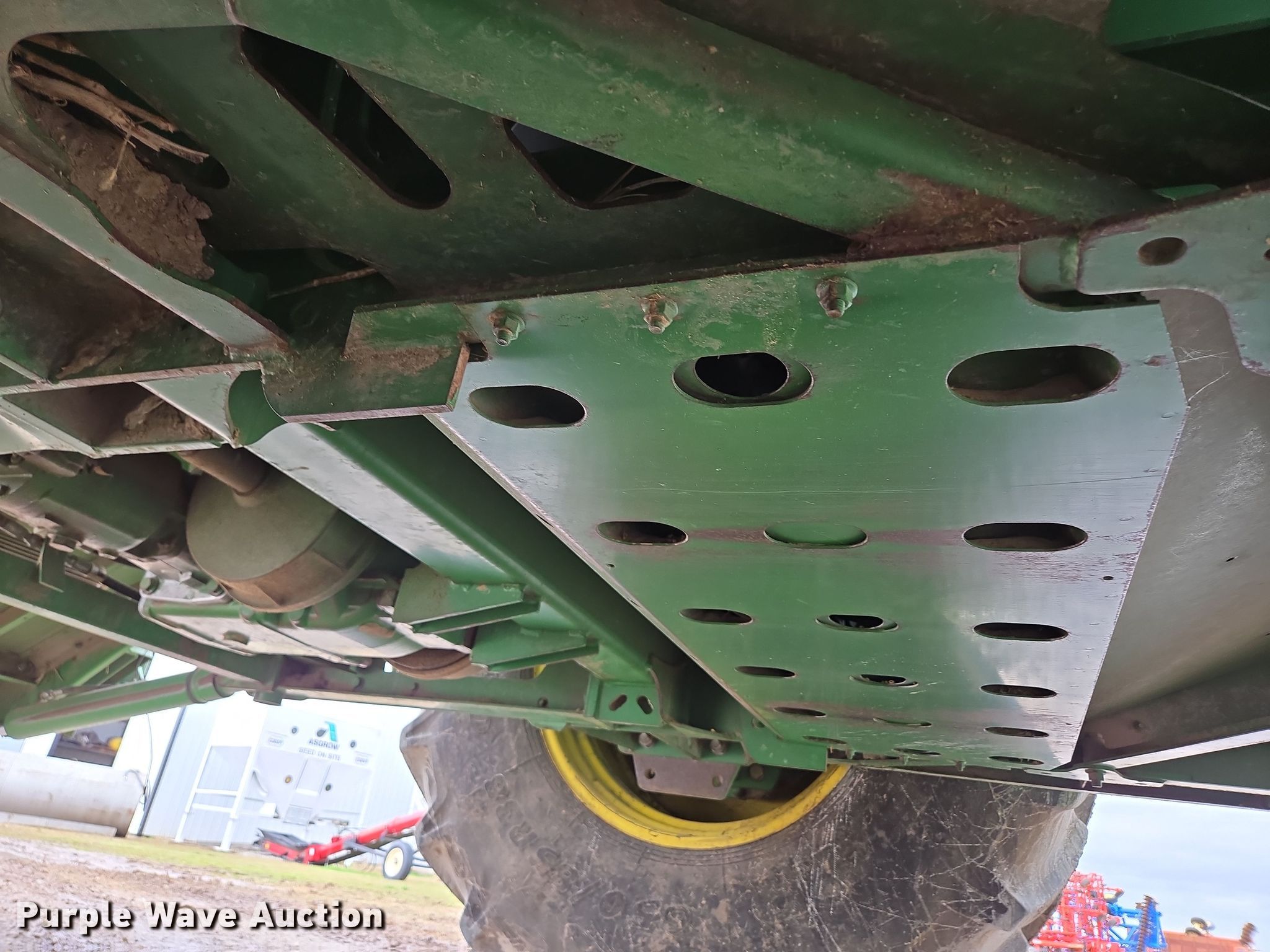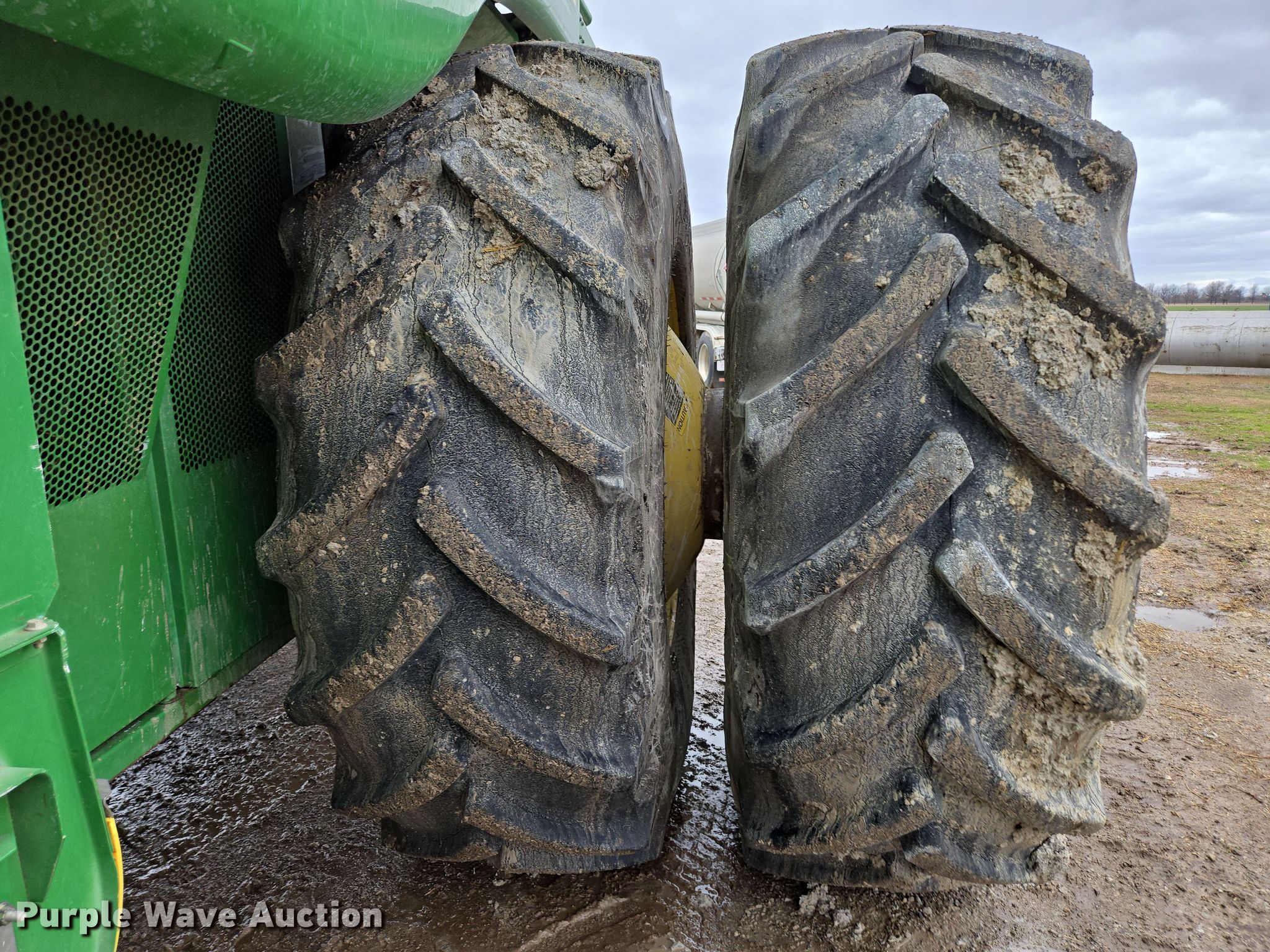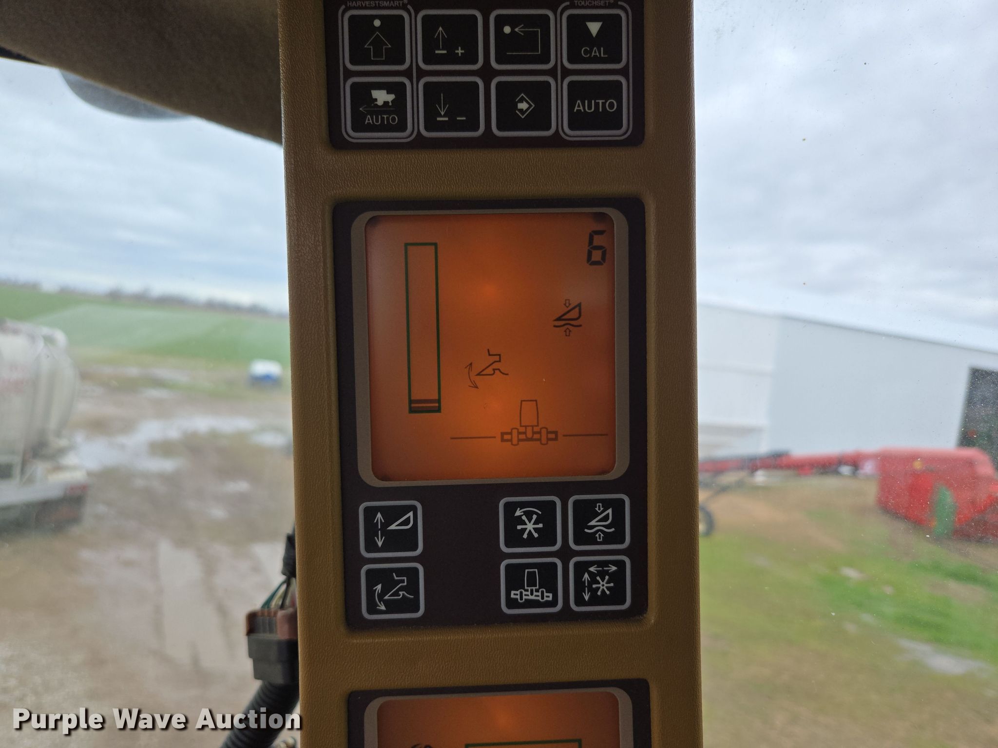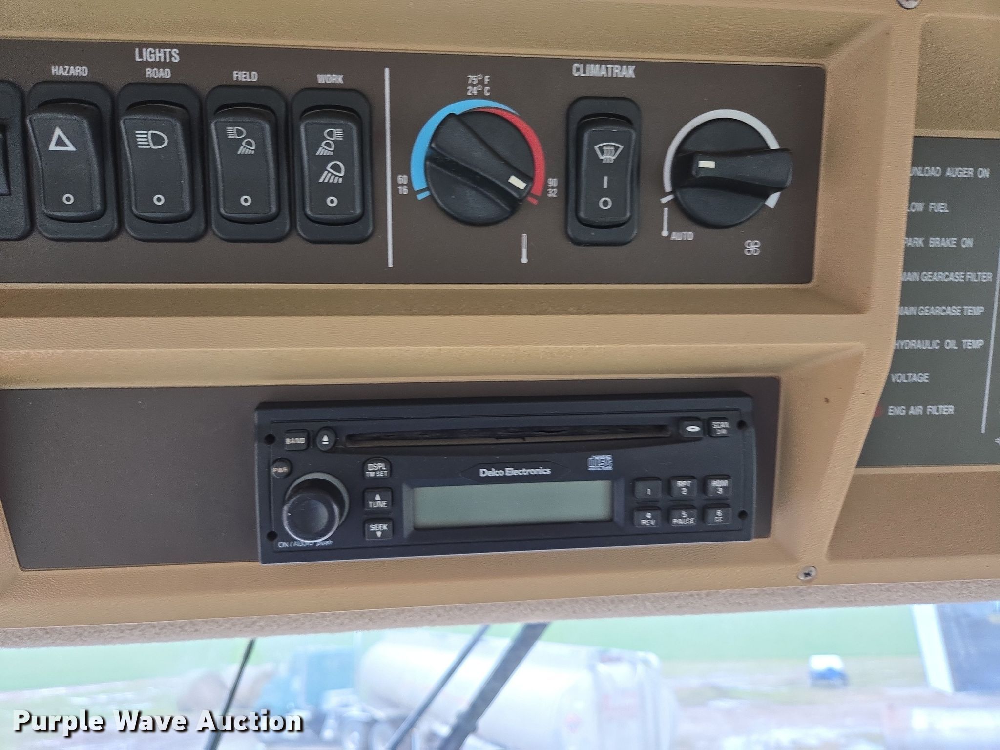 2007 John Deere 9860 STS RWA combine. Engine hours: 4,147 on meter, Separator hours: 2,783 on meter, Serial: H09860S720802. Engine John Deere 6125HH006B C, Serial: R525368, Displacement: 12.5L, Cylinders: 6, Fuel type: Diesel, HP: 375. Transmission Hydrostatic. Operators station AC, Heat, Auto steer John Deere AutoTrac Universal Steering Kit 200. Features Single point header coupler, Feederhouse: Lateral tilt, Variable speed, Reverser, Concaves: Round, Chaff spreader, Straw chopper, Power tailboard, Bin: Extensions, Unloading auger length: 24'. Tires Front: 650/85R38, Rear: 620/75R26, Duals. Notes GPS receiver missing, Grain elevator housing damaged. Jennings Farms. Quapaw, OK 74363