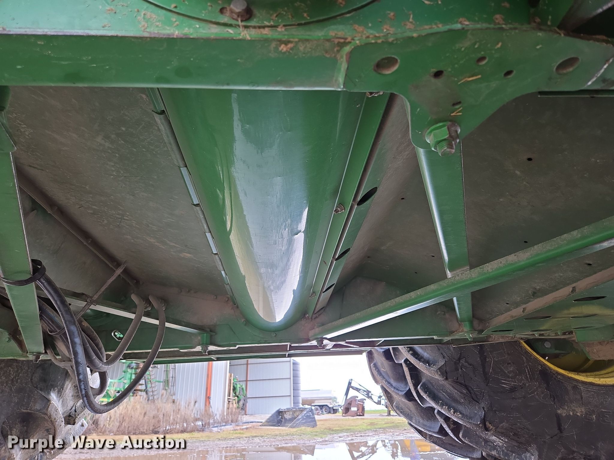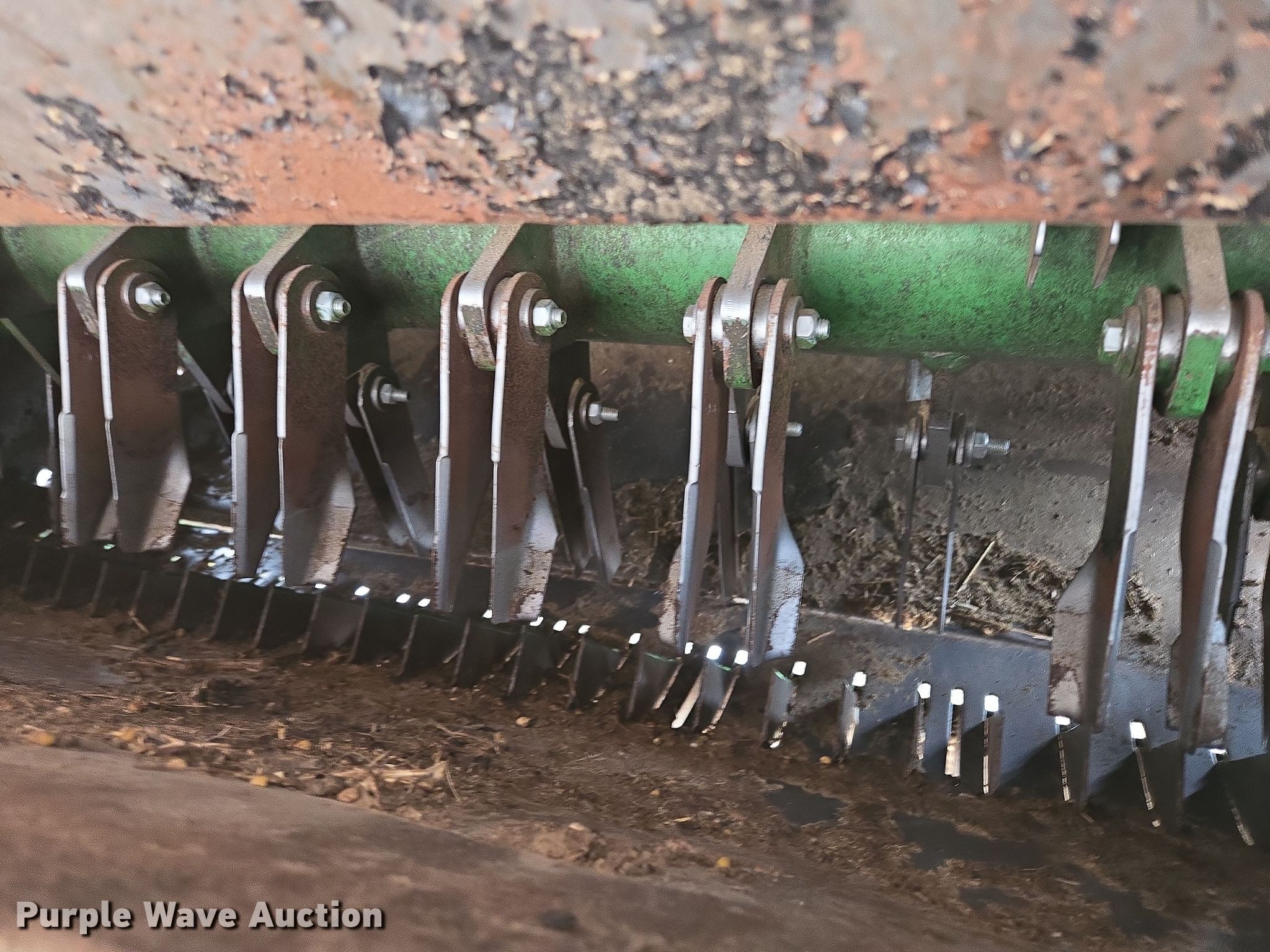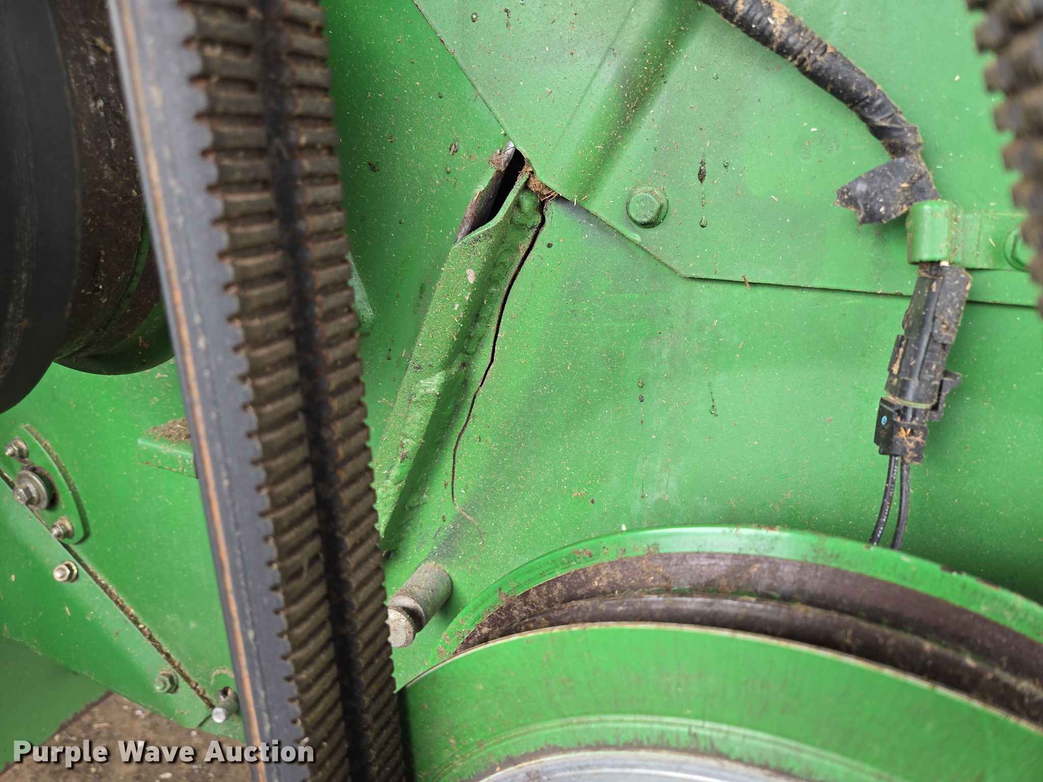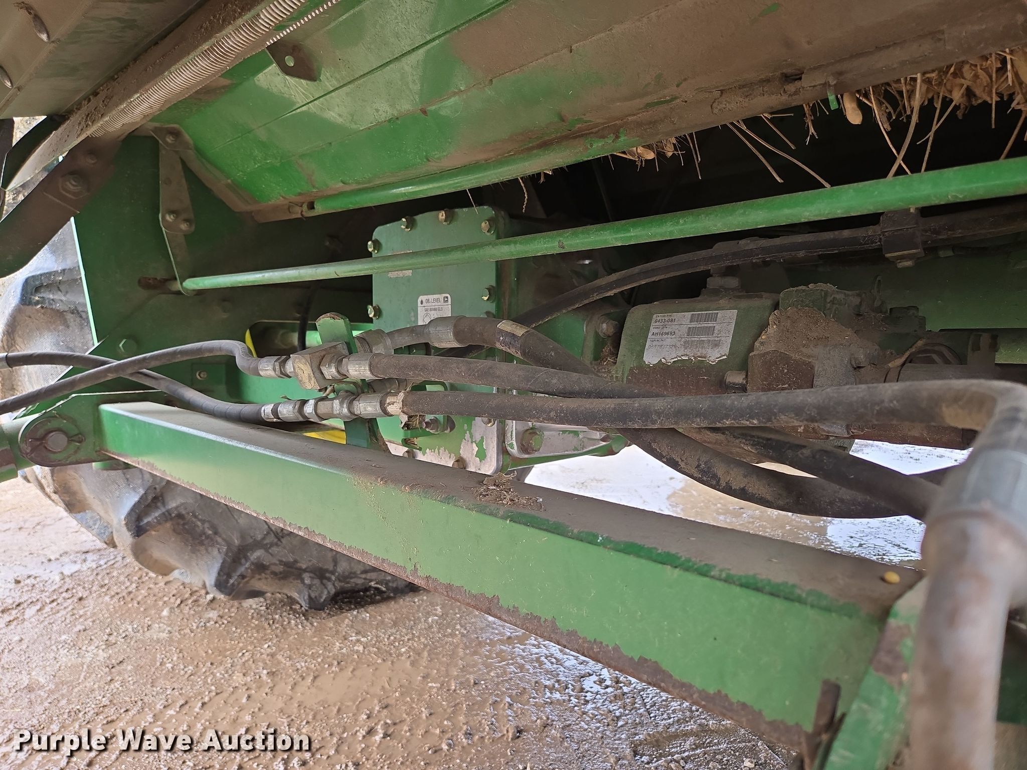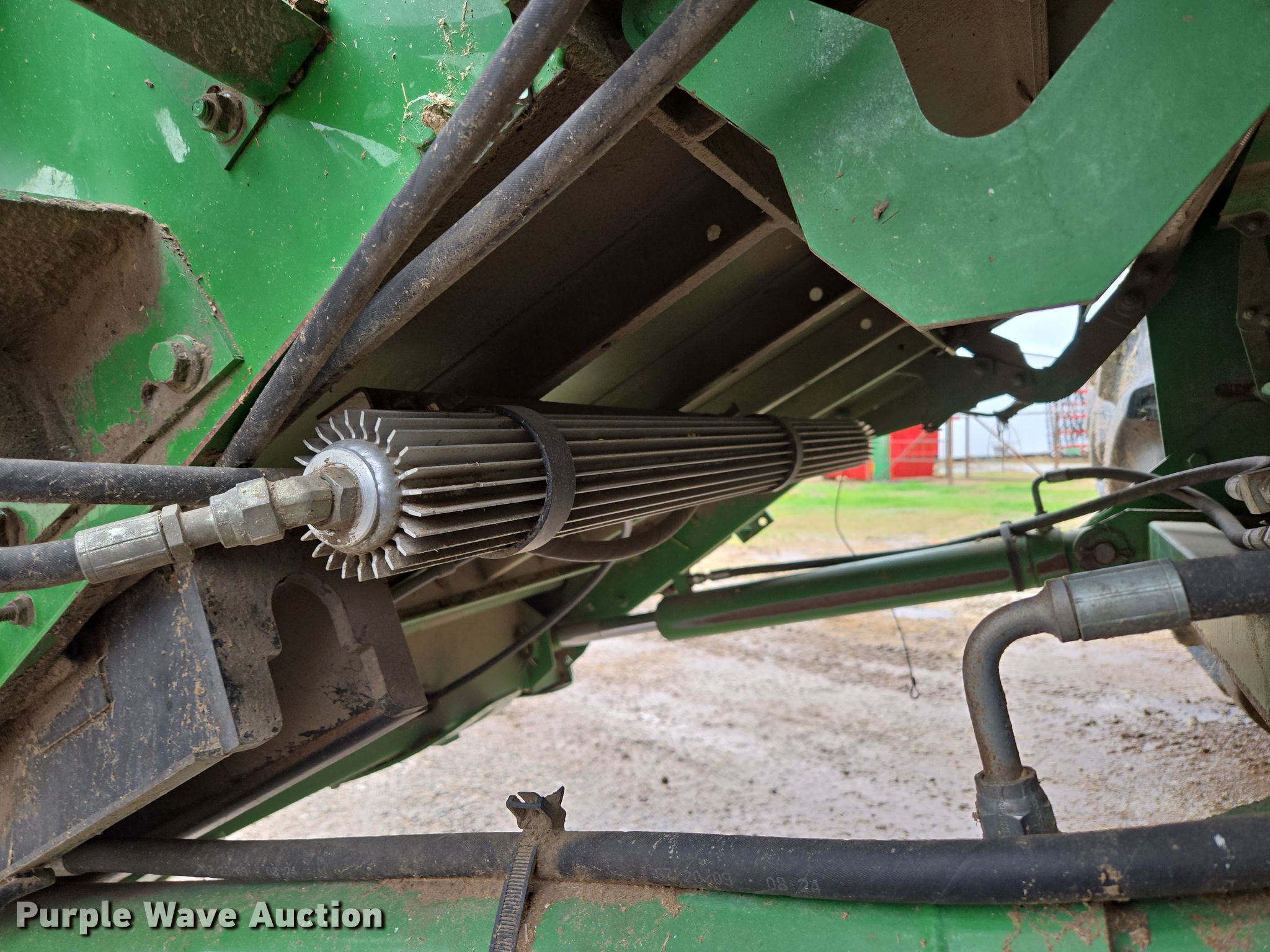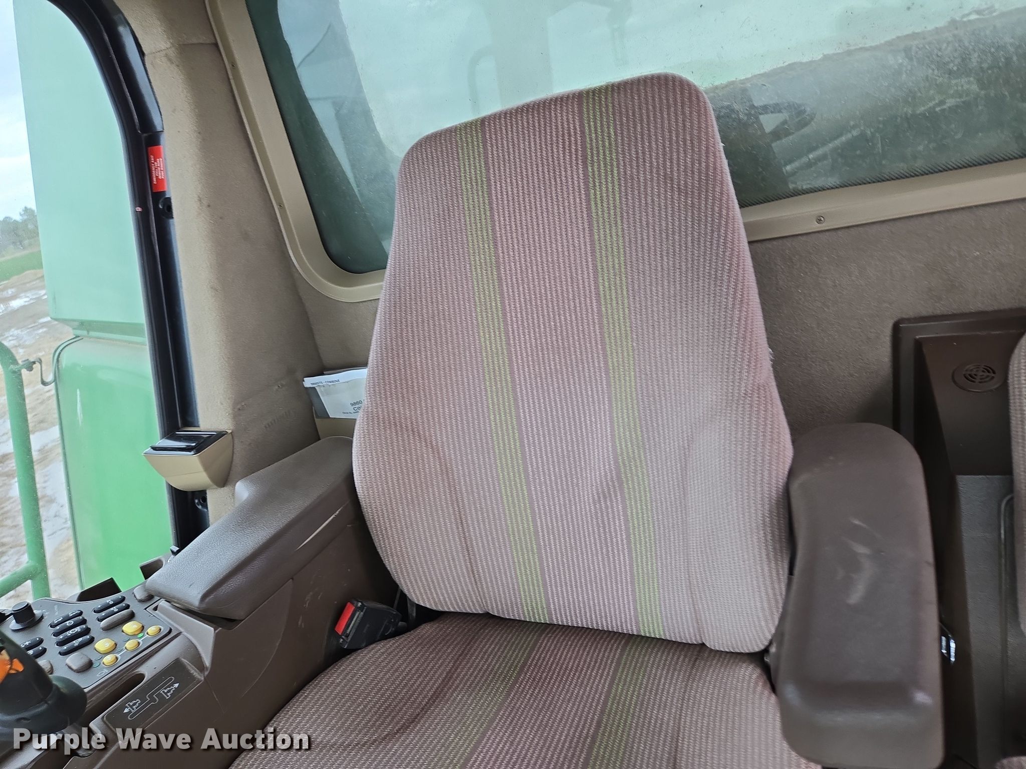 2007 John Deere 9860 STS RWA combine. Engine hours: 4,147 on meter, Separator hours: 2,783 on meter, Serial: H09860S720802. Engine John Deere 6125HH006B C, Serial: R525368, Displacement: 12.5L, Cylinders: 6, Fuel type: Diesel, HP: 375. Transmission Hydrostatic. Operators station AC, Heat, Auto steer John Deere AutoTrac Universal Steering Kit 200. Features Single point header coupler, Feederhouse: Lateral tilt, Variable speed, Reverser, Concaves: Round, Chaff spreader, Straw chopper, Power tailboard, Bin: Extensions, Unloading auger length: 24'. Tires Front: 650/85R38, Rear: 620/75R26, Duals. Notes GPS receiver missing, Grain elevator housing damaged. Jennings Farms. Quapaw, OK 74363